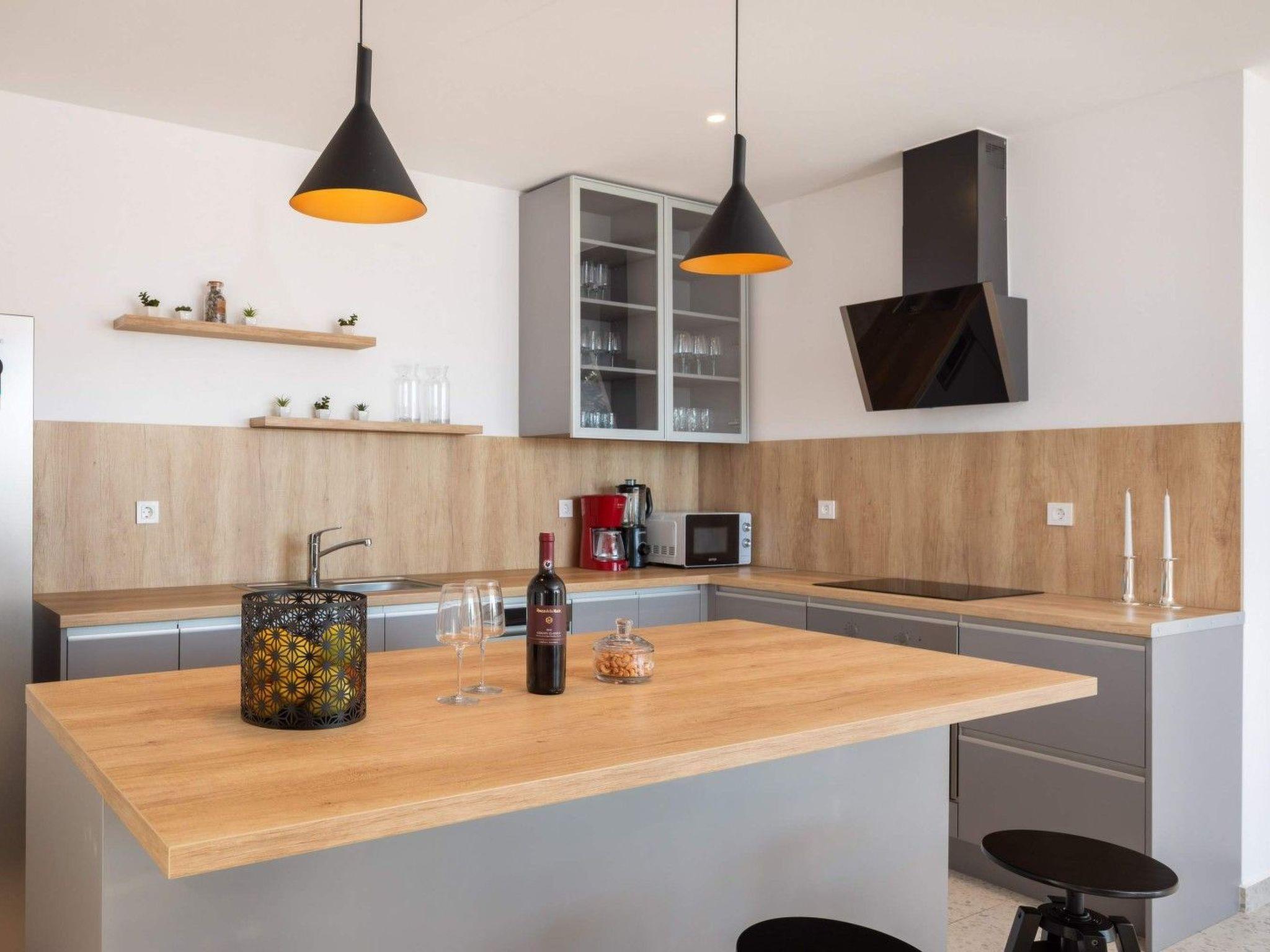 All bedrooms have an en-suite bathroom, and, if needed, there are sofa beds in 2 bedrooms for 2 additional guests. The interior of the villa is done in light colours, mostly white with touches of neutral tones. The spacious kitchen is fully equipped with everything you will require, and in the indoor dining area is the welcome package waiting for you. The cosy living room is ready for all the games and film nights. If you are in a mood, you can also play a game of table soccer or billiards. This holiday will be like some kind of spa holiday.