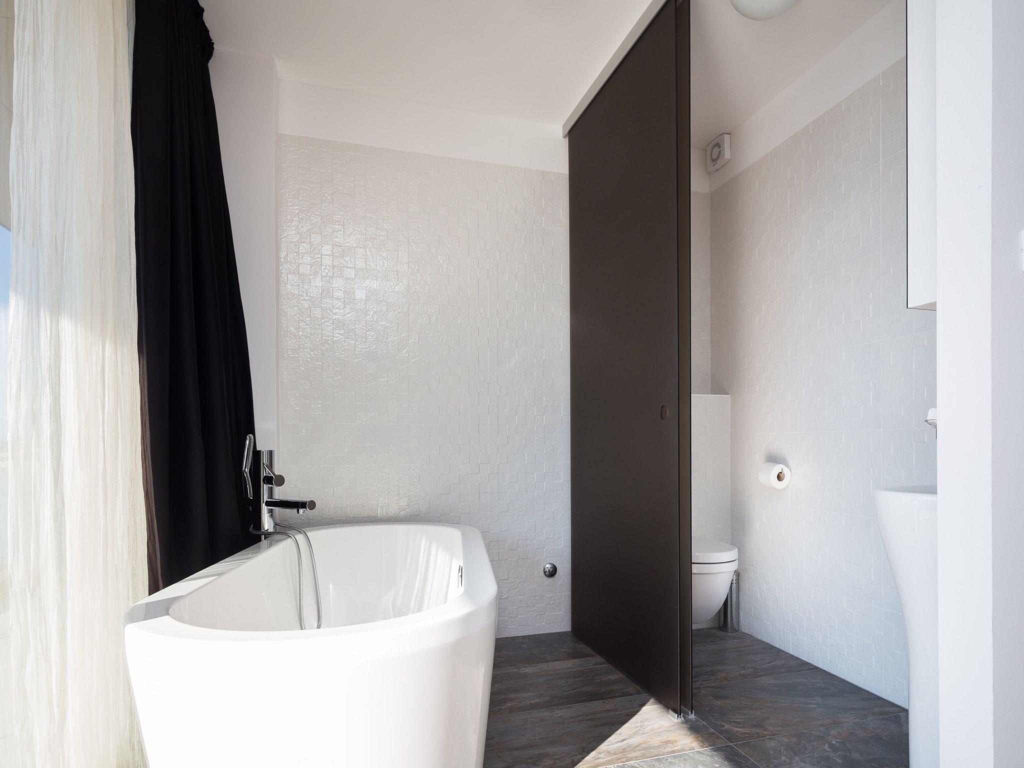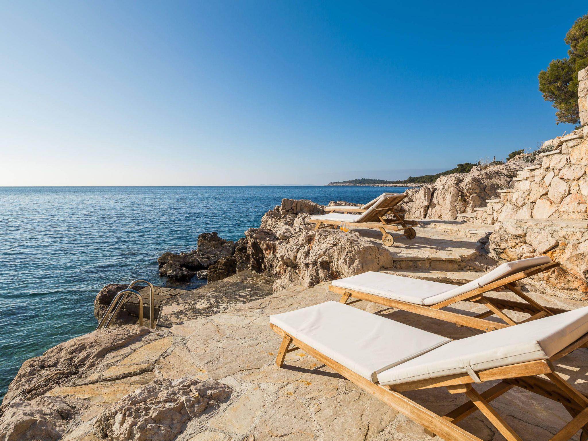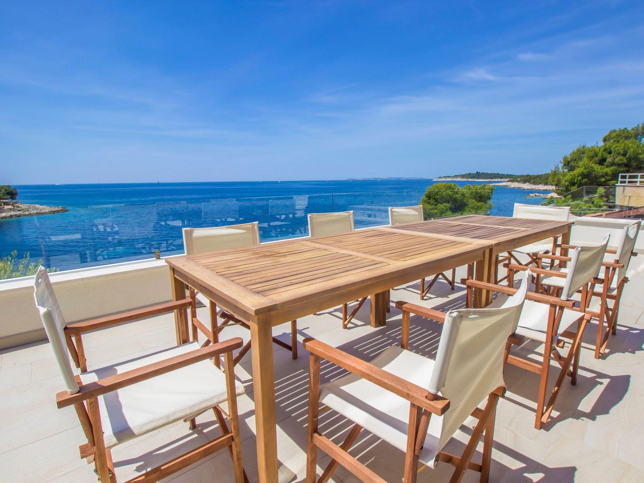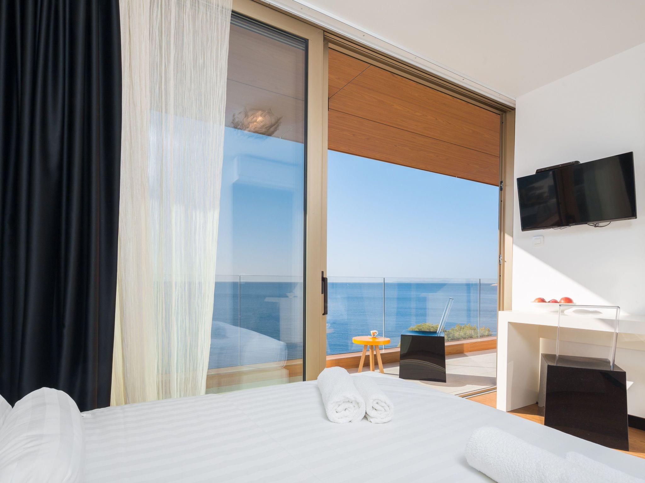 The exterior of this property is just as impressive as its interior. A private pool invites you to dive in and cool off on warm days, while the terrace provides the ideal spot for sunbathing or enjoying meals al fresco with the backdrop of the sea. The dedicated garden area further enhances the serene atmosphere, allowing guests to unwind in complete privacy.