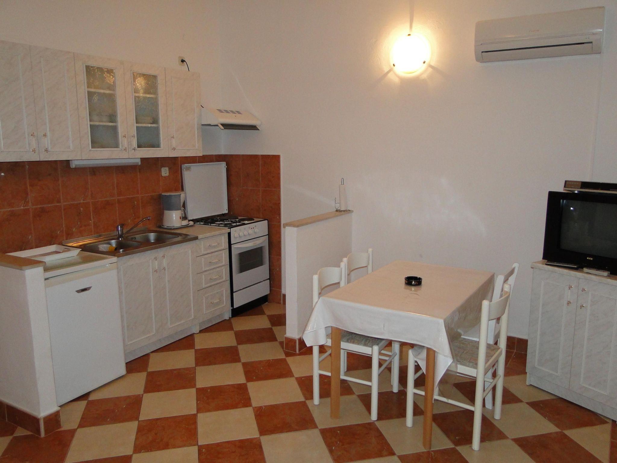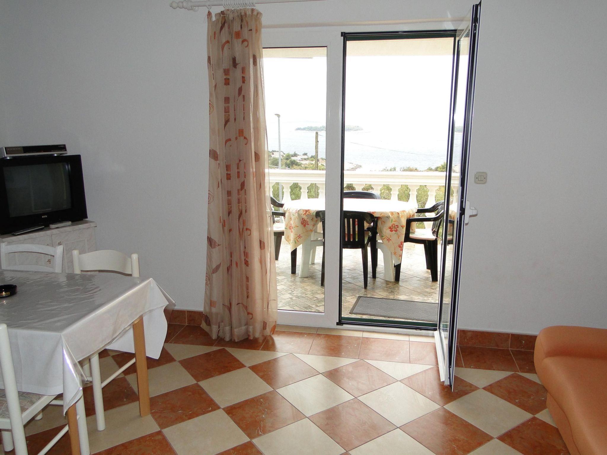House is placed in peaceful location, near the camp ADRIATIC and surrounded with vineyard . Apartment approx. 50 sqm has 1 bedroom, kitchen with living room with sofa for 2 persons and balcony with a magnificent sea view . Apartment is air-conditioned and with gratis wi fi internet access.It is situated on the first floor . Parking place is next to the house . Guests can use grill in the garden .