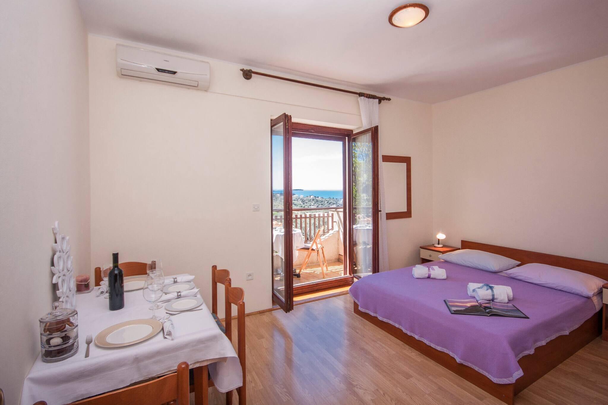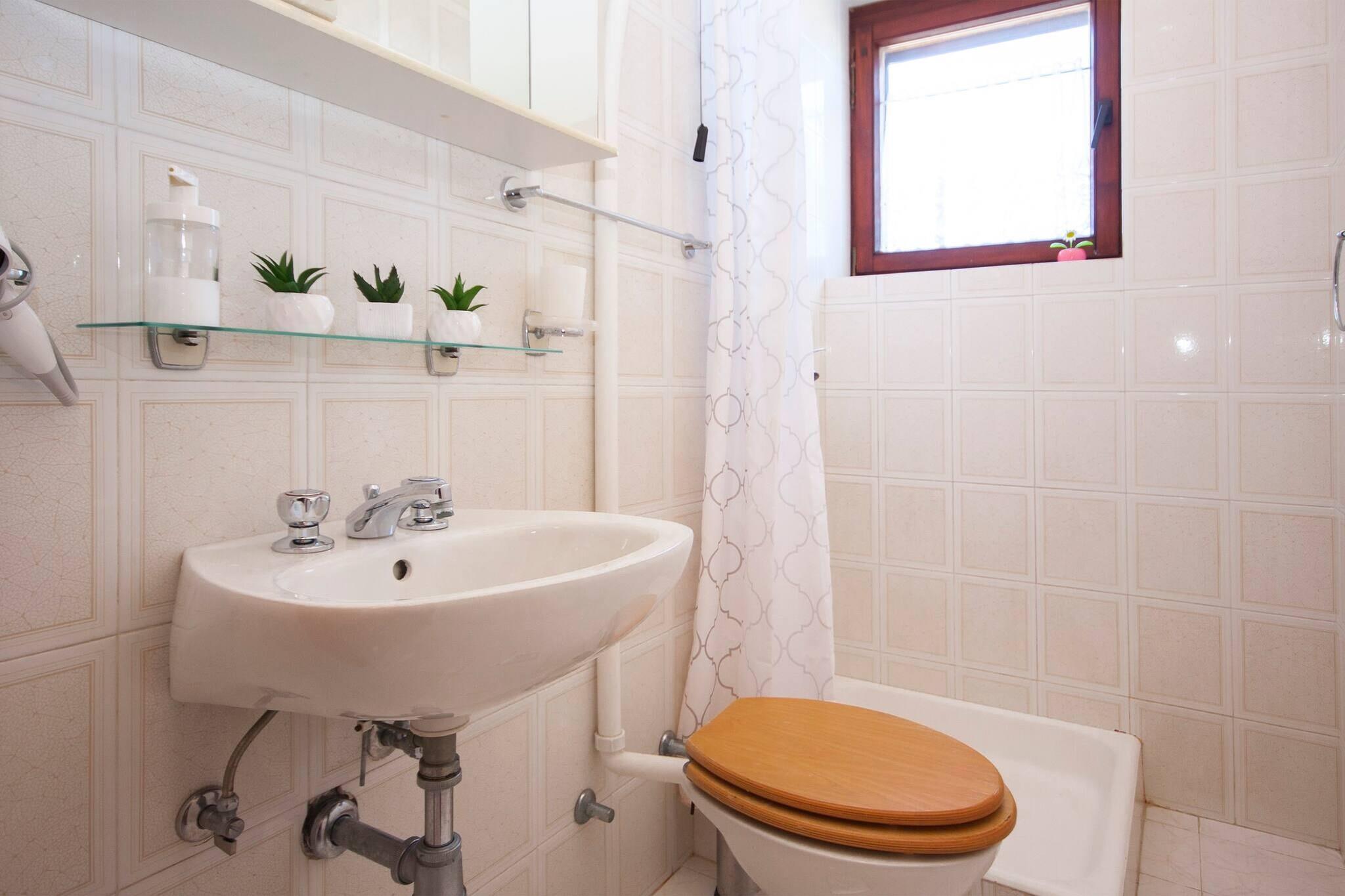 Denne luftige ferielejlighed med to soveværelser rummer komfortabelt op til fire gæster med to kingsize-senge på tværs af dens velindrettede soveområder. Ideel til familier eller små grupper, det tilbyder en privat balkon med havudsigt til afslappende stunder med udsigt over Adriaterhavet. Der er gratis WiFi og aircondition for at sikre et behageligt og forbundet ophold. Rygning er tilladt i enheden, og lejligheden balancerer både komfort og funktionalitet til længere ophold eller weekendture. Lejligheden ligger kun 650 meter fra den smukke Rtic-strand og har en misundelsesværdig beliggenhed i Primošten. Byens centrum, med sin blanding af historisk charme og moderne bekvemmelighed, ligger en kort køretur derfra og byder på lokale spisesteder, caféer og butikker. Et nærliggende supermarked og kaffebar sikrer, at alle væsentlige ting er inden for rækkevidde. Den spektakulære Krka Nationalpark er et praktisk udflugtsmål for natur- og eventyrentusiaster. Indvendigt har lejligheden et fuldt udstyret moderne køkken komplet med komfur, køleskab, fryser og kaffemaskine, hvilket gør tilberedningen af måltider enkel og effektiv. En lys opholdsstue med masser af siddepladser og et fladskærms-tv skaber behagelige rammer for indendørs afslapning. Det private badeværelse har bruser, friske håndklæder og gratis sengetøj, med rengøring inkluderet i opholdet. Opbevaringsmuligheder såsom garderobeskabe og bøjler giver ekstra bekvemmelighed, mens gennemtænkte detaljer sikrer en glat og behagelig oplevelse for hver gæst.