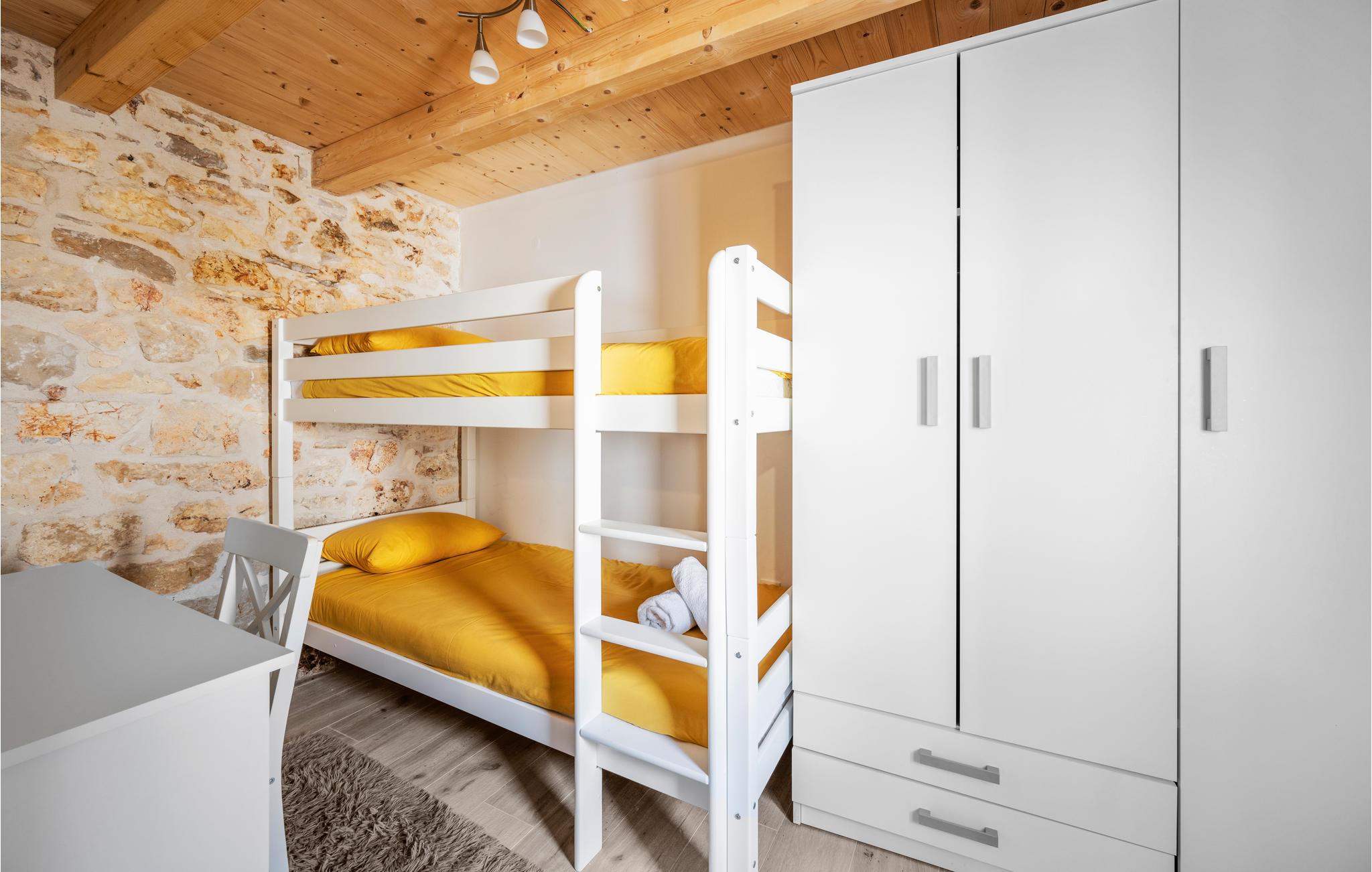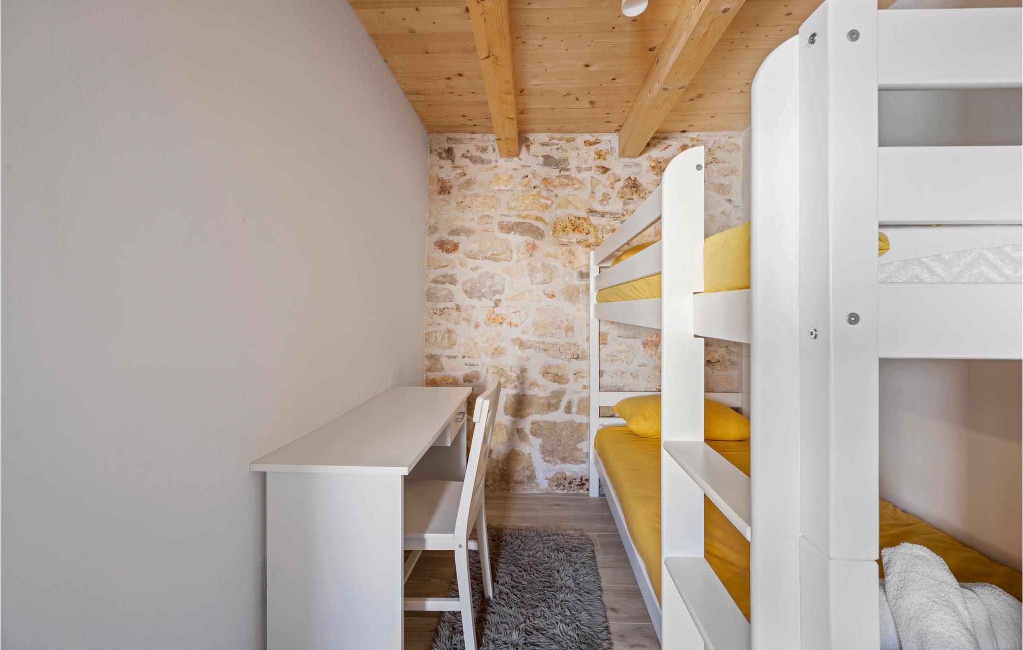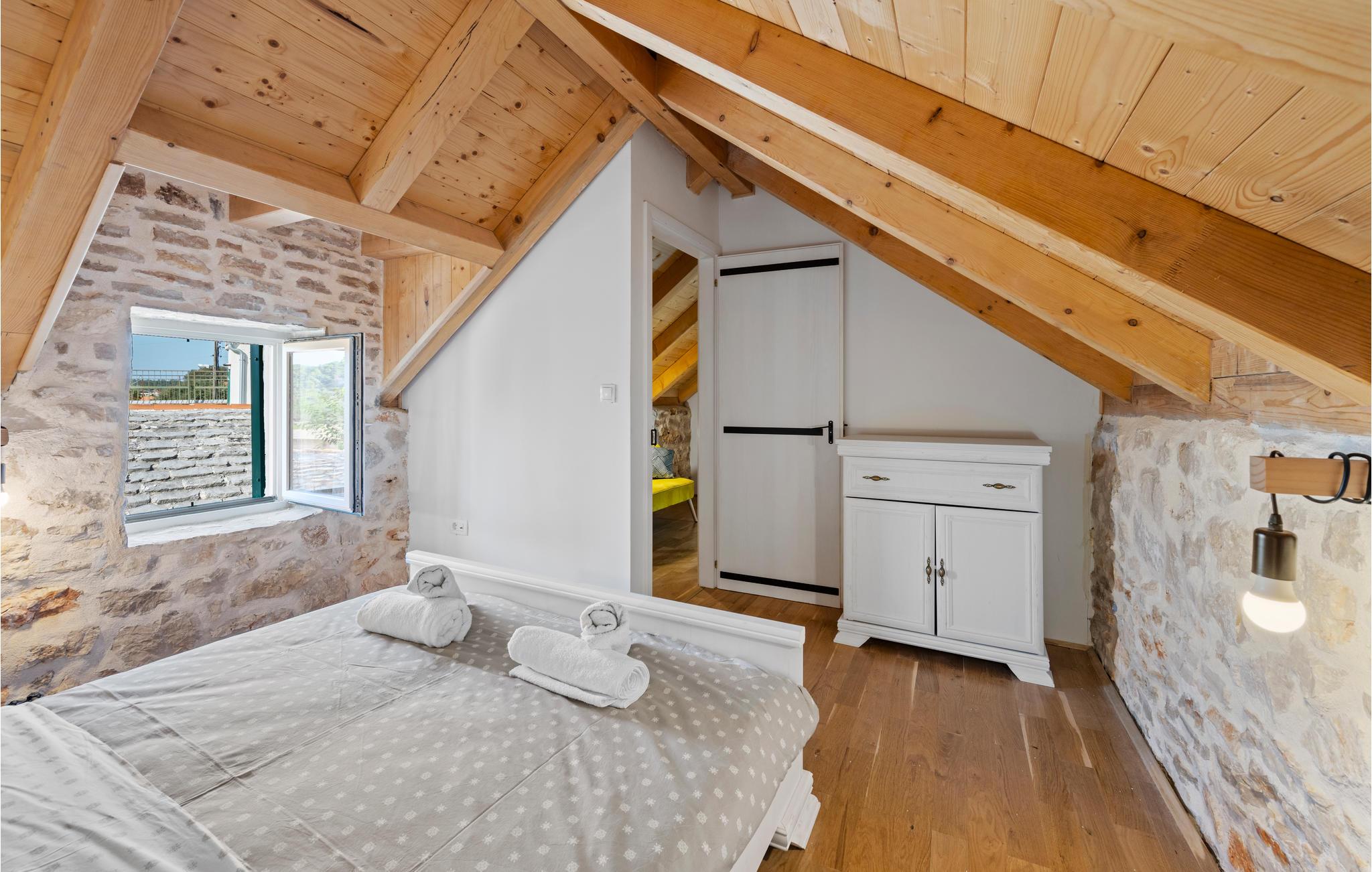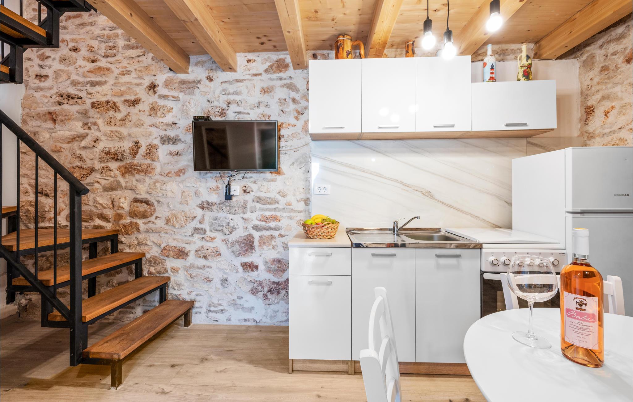 I bor på et roligt, lille sted nær Rusevo, ikke langt fra Primosten. Primosten er en attraktiv badeby, der har talrige tilbud til både børn og voksne. Brug timer på at bade på de smukke strande, nyd bølgerne i det lyseblå hav og gå og feste gennem gyderne. I kan også planlægge udflugter og opleve den historiske by Trogir eller den populære og imponerende by Split.