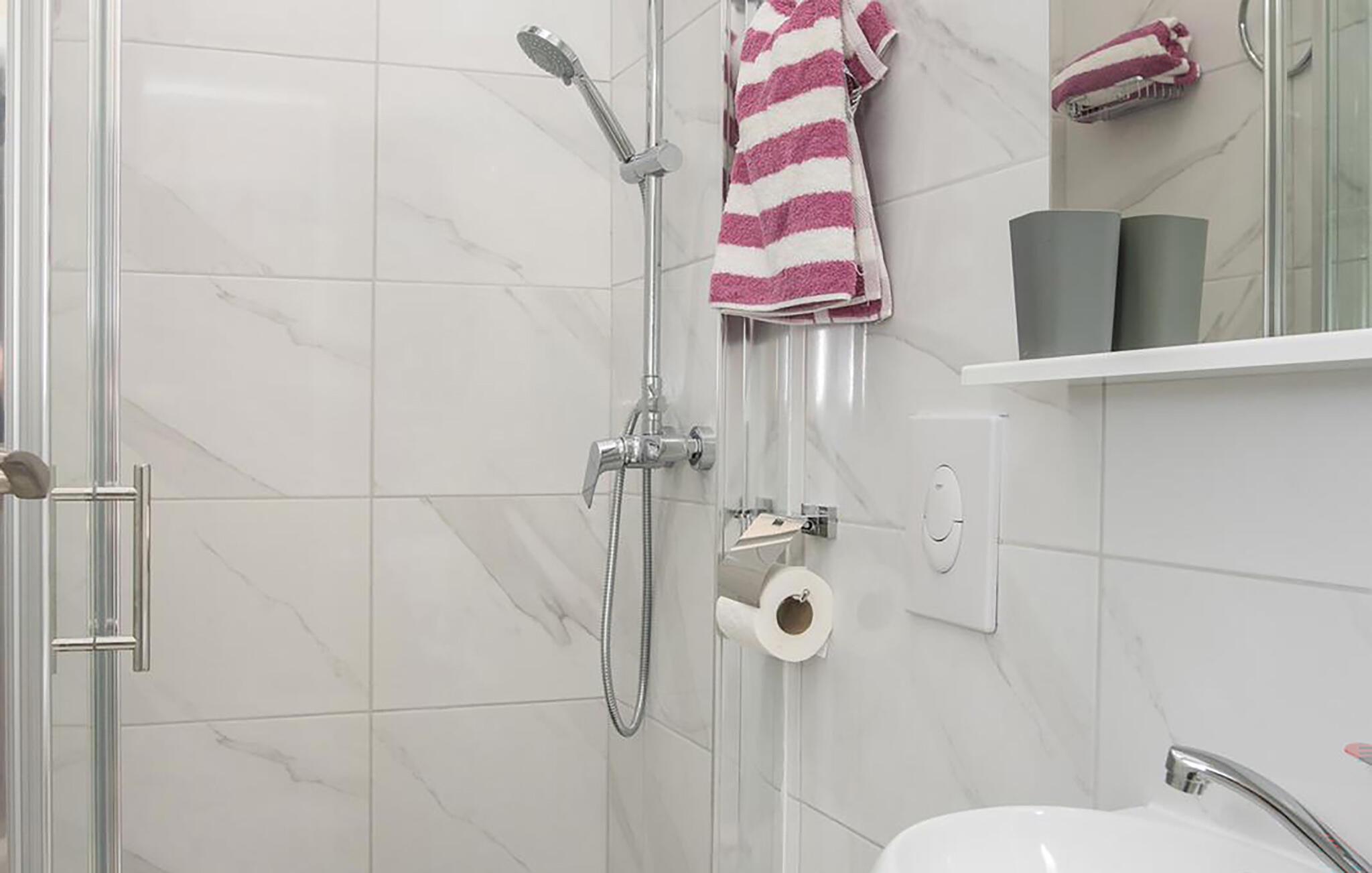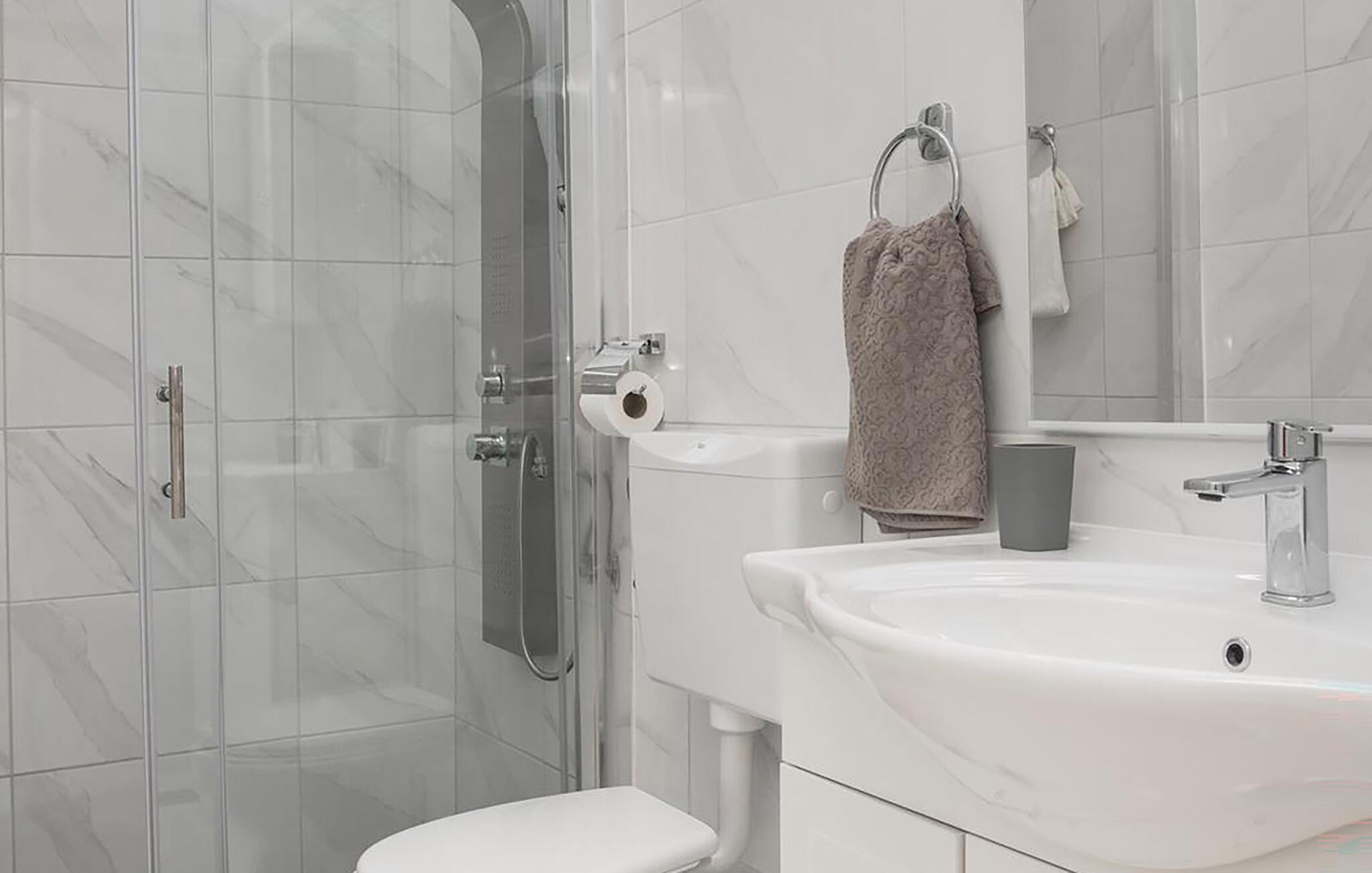 Badeværelse (nr. 1) - WC. Varmt og koldt vand. Bruser