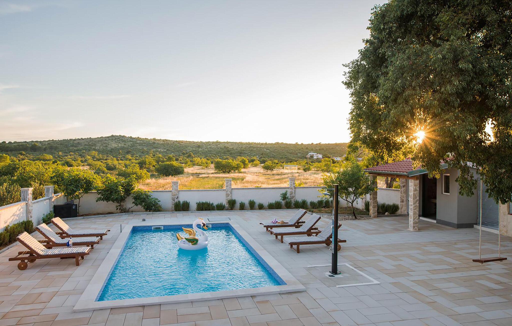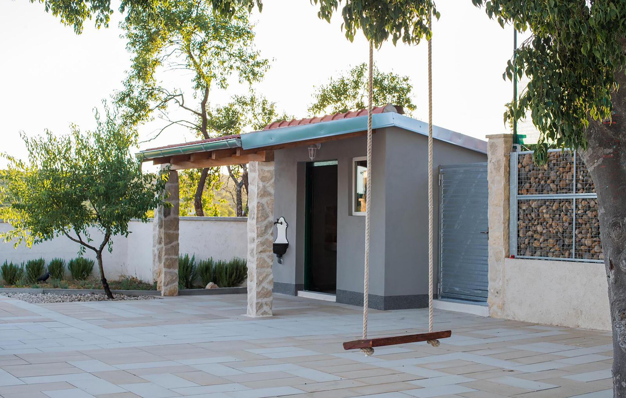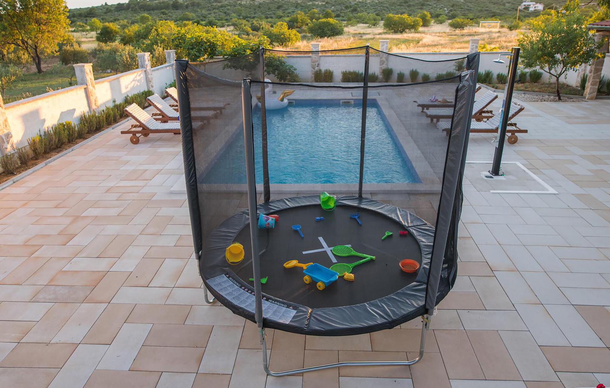 Udeområdet lokker med en dejlig pool, hvor hele familien kan snuppe en frisk dukkert, så tit de har lyst. Genoplad batterierne i en liggestol, mens børnene nyder det attraktive legeområde og nyd den fredelige atmosfære om aftenen med et glas vin under åben himmel.
