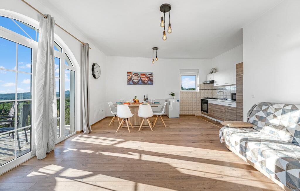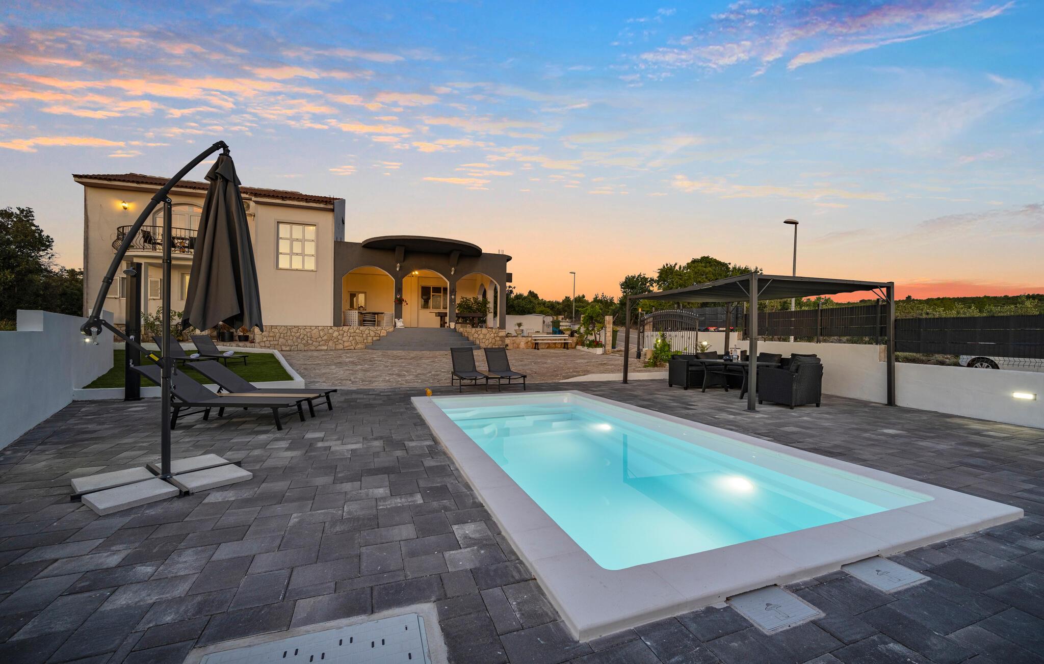 Slap af i dette attraktive feriehus med pool. I dette indbydende feriehus nær Primosten kan I nyde en harmonisk kombination af fred og komfort. Omgivet af frodige grønne områder og med en vidunderlig havudsigt byder huset på en afslappende atmosfære. Sammen med jeres udvidede familie eller venner kan I flytte ind i boligen med to boligenheder og føle jer helt tilpas. Den vellykkede blanding af klassisk og moderne indretning skaber en hyggelig atmosfære, hvor I straks vil føle jer hjemme. Uanset om I slapper af ved poolen eller spiller ved poolbordet i det overdækkede udendørsområde, vil I finde talrige muligheder for underholdning her. På balkonen kan I læse en bog i fred og ro og nyde den betagende udsigt og solnedgange. Husets beliggenhed er ideel: stille og grønt, men alligevel tæt på Primostens charmerende strande og faciliteter. Gå en tur gennem de maleriske gader i den gamle bykerne og oplev indbydende caféer og restauranter, der serverer lokale delikatesser. For de eventyrlystne er der masser af muligheder for vandsport, fra kajaksejlads til snorkling. Udforsk de omkringliggende vinmarker på en cykeltur eller besøg de historiske byer Sibenik og Trogir i nærheden. Her vil I opleve en perfekt blanding af afslapning og aktivitet i betagende omgivelser.