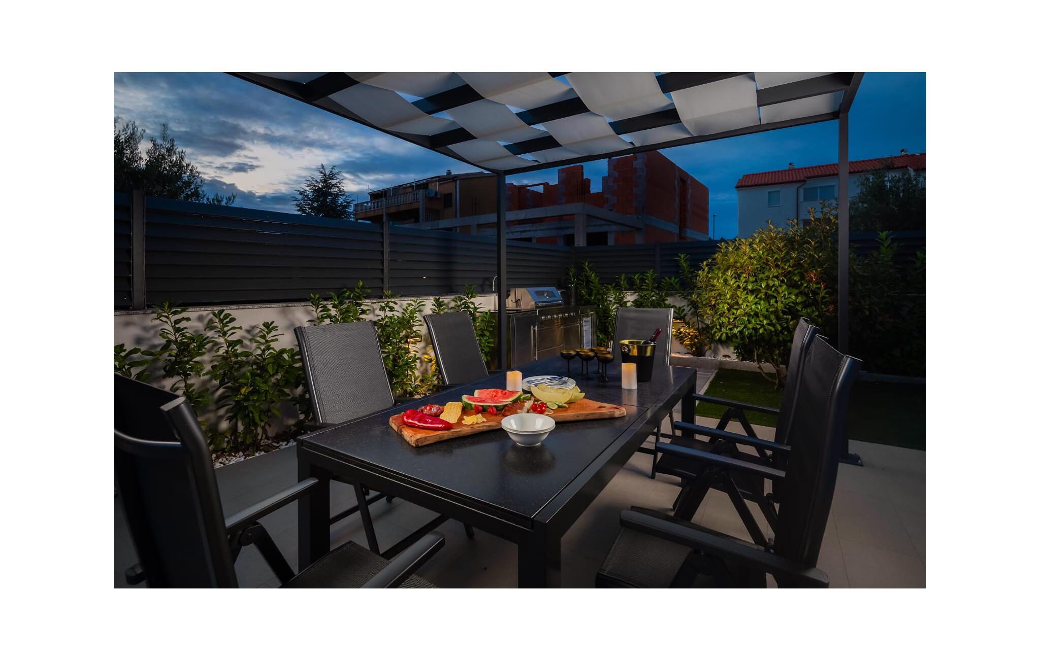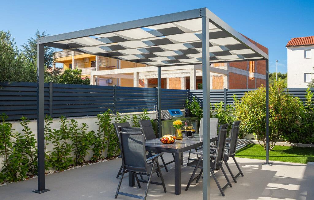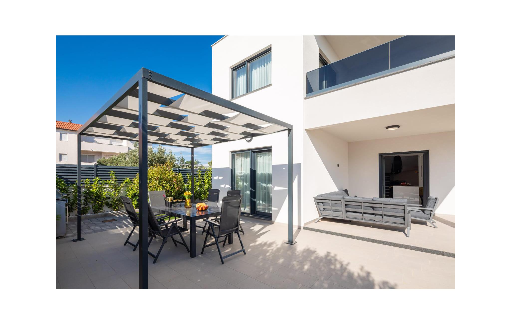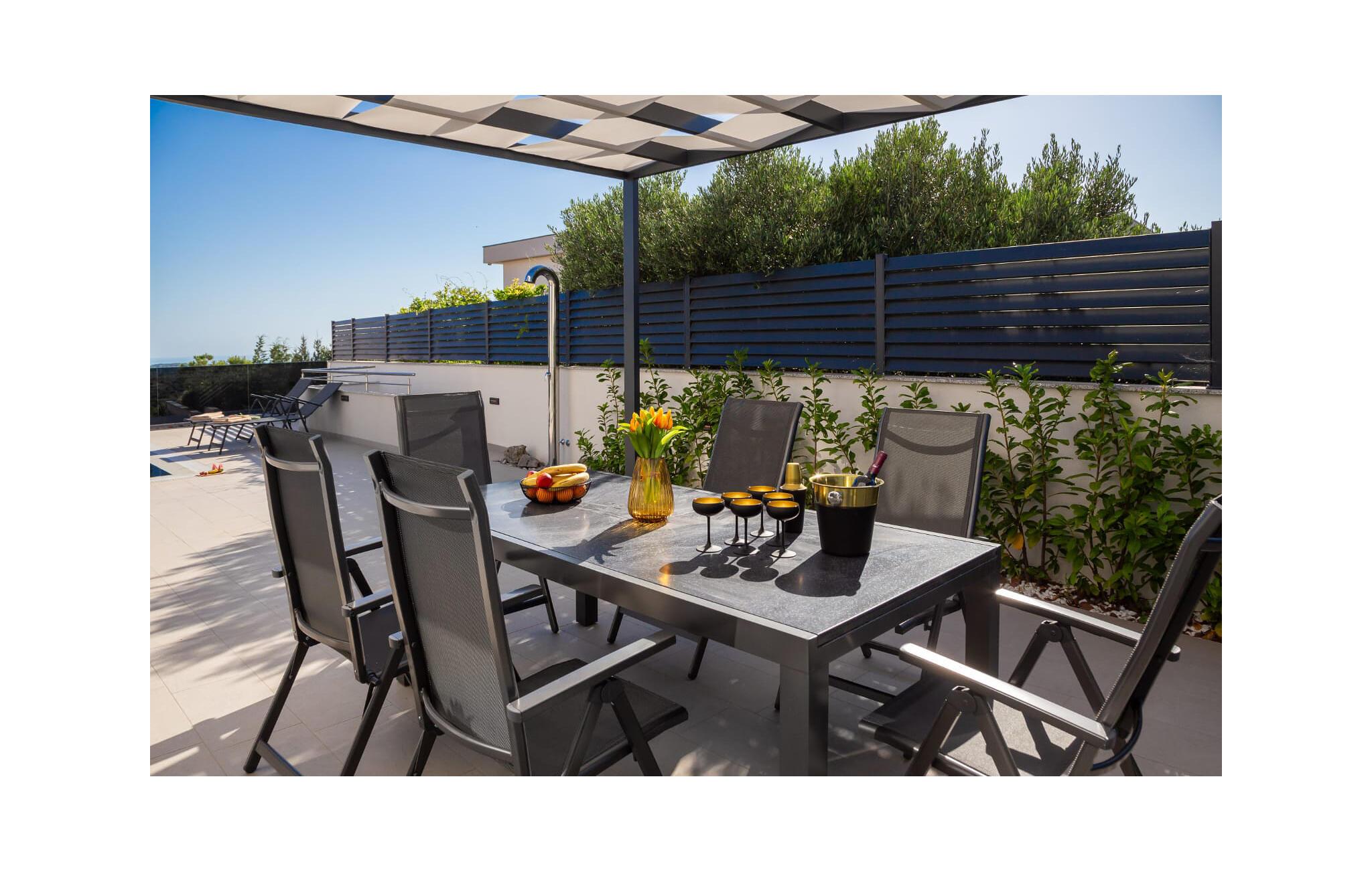 Udenfor venter der en rummelig terrasse med komfortable siddepladser og en pool, der giver en forfriskende afkøling på varme dage. Start morgenen med en dukkert i poolen, eller nyd solnedgangen om aftenen med et lækkert barbecue-måltid i grillhjørnet.