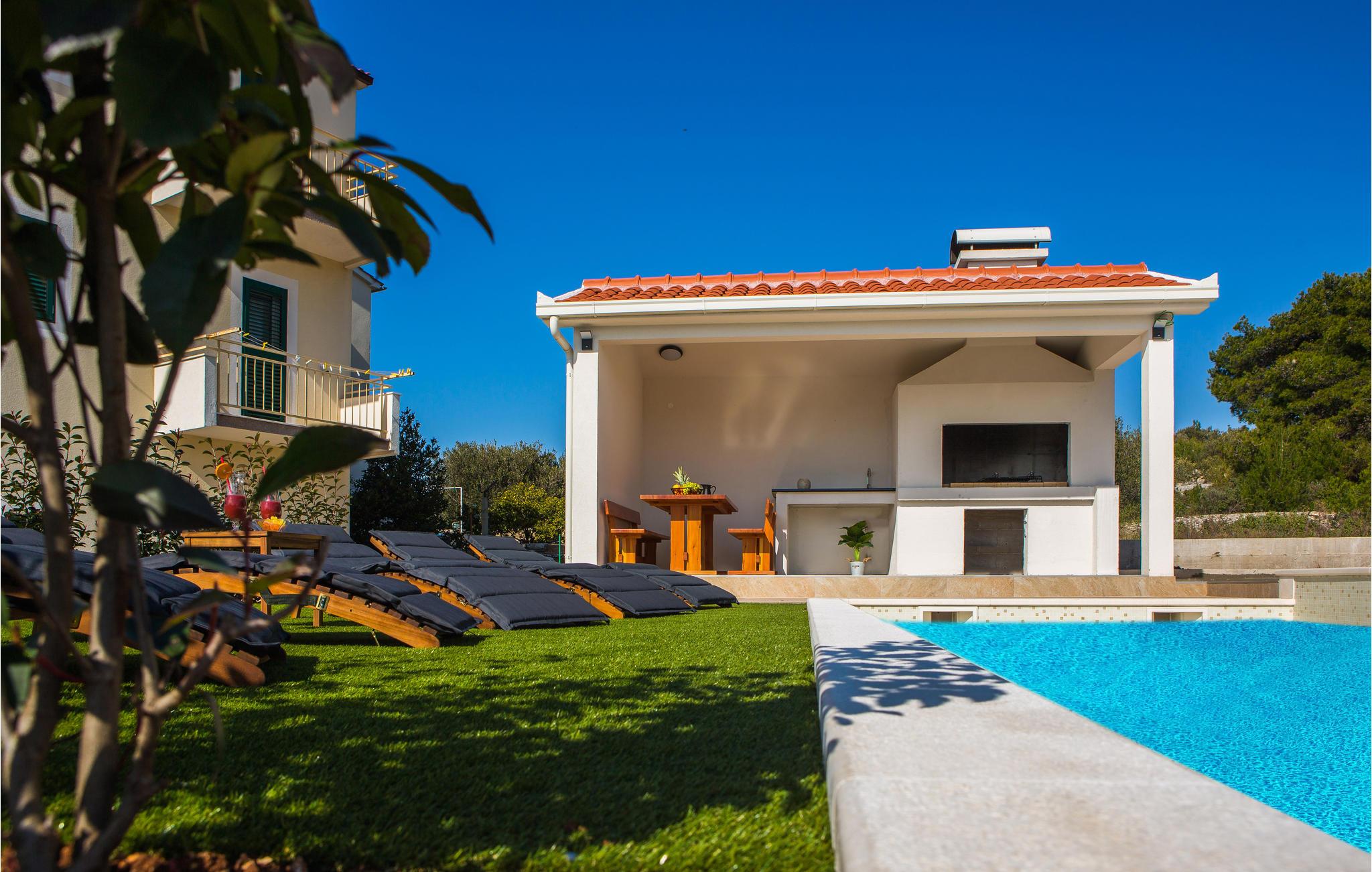 Dette dejlige og moderne indrettede feriehus med egen swimmingpool ligger i byen Primošten, ikke langt fra Šibenik, og er en perfekt oase med ro. Huset er bygget i 2 etager, der er forbundet via indvendige trapper. Fra terrassen på 1. sal har I en herlig udsigt over havet. Ved siden af huset ligger swimmingpoolen med solterrasse og sommerkøkken.
