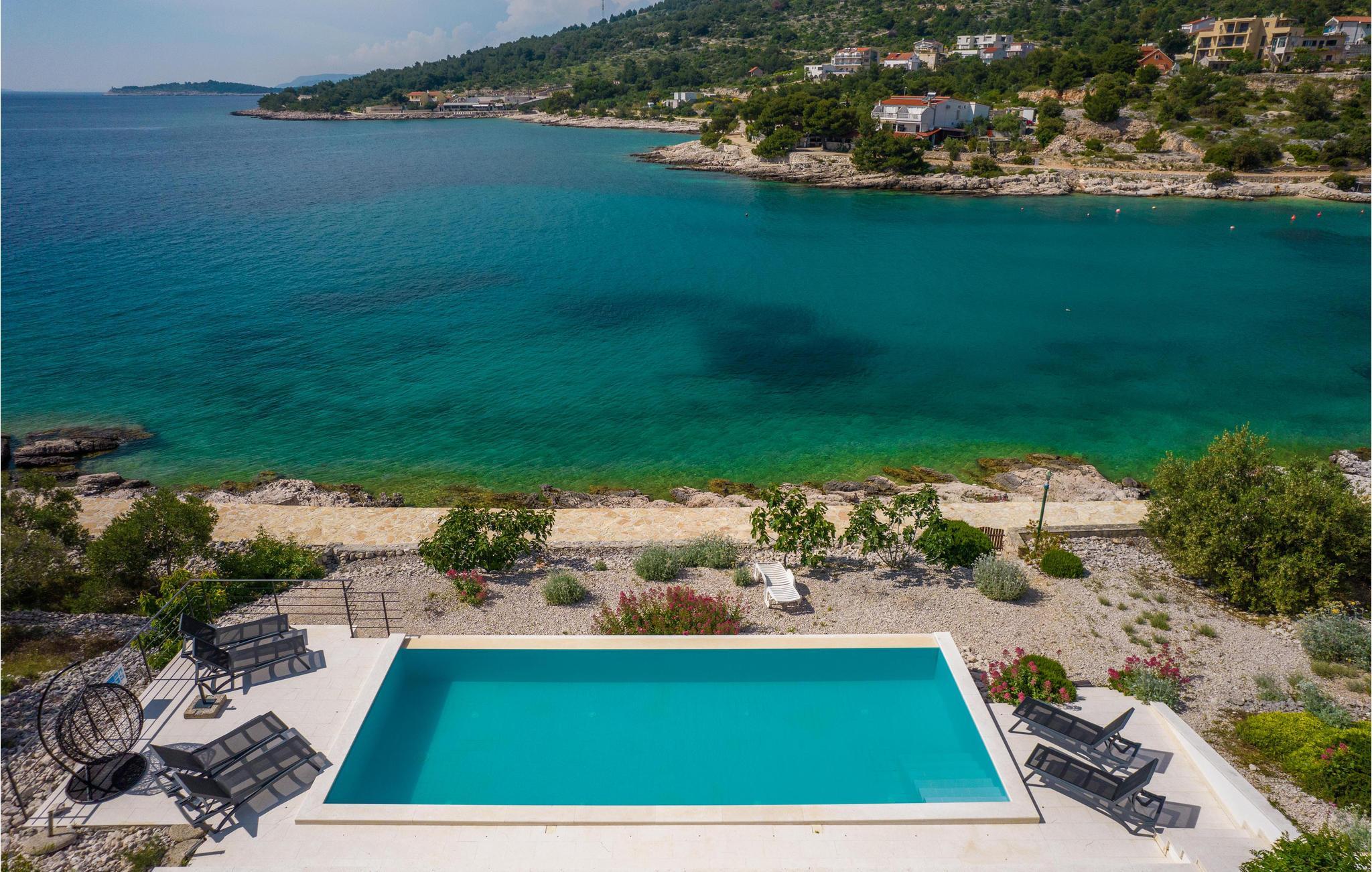 Yderst komfortablt og skønt feriehus med pool og alt, I behøver på ferien. Huset ligger i Primosten på Adriaterkysten. Huset ligger på en ca. 1.500 m² stor grund og har tre etager. Underetagen og stueetagen er forbundet med udendørs trappe, mens stueetagen og første etage er forbundet med indendørs trapper. I kan nyde jeres morgenkaffe eller et glas vin på en af husets terrasser med en betagende havudsigt. Når I bliver sultne, kan I tilberede jeres egen mad på grillen. Hvis den skal stå på afslapning og selvforkælelse, kan I hoppe en tur i Infinity-poolen. Området er perfekt til udflugter. Primosten er en kendt turistby med gode restauranter, vingårde og vidunderlige strande.