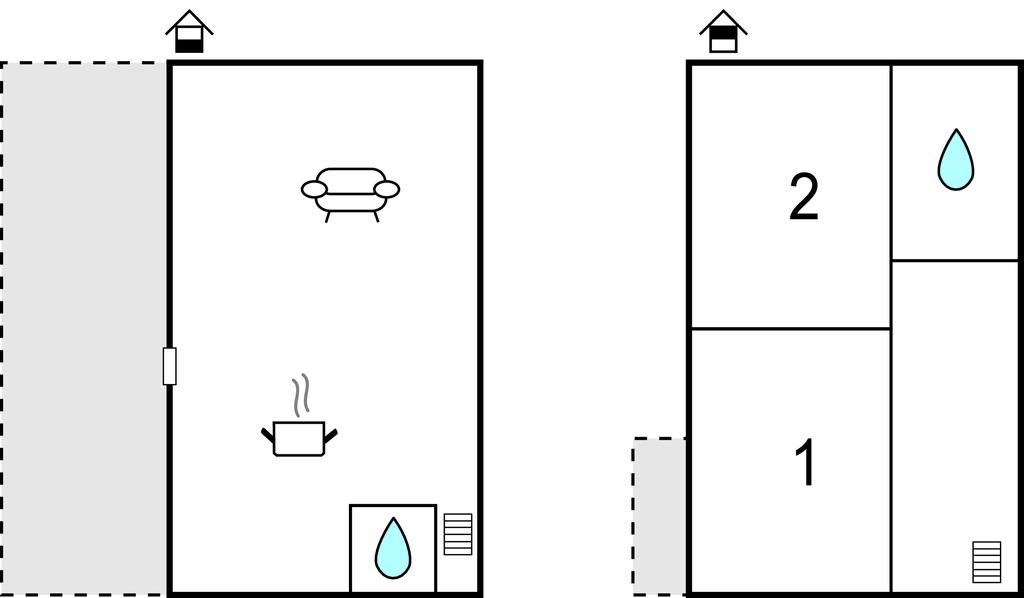 Opholdsstue/køkken 32m2 - 1 Soveplads. (Sofa, madras eller lignende).