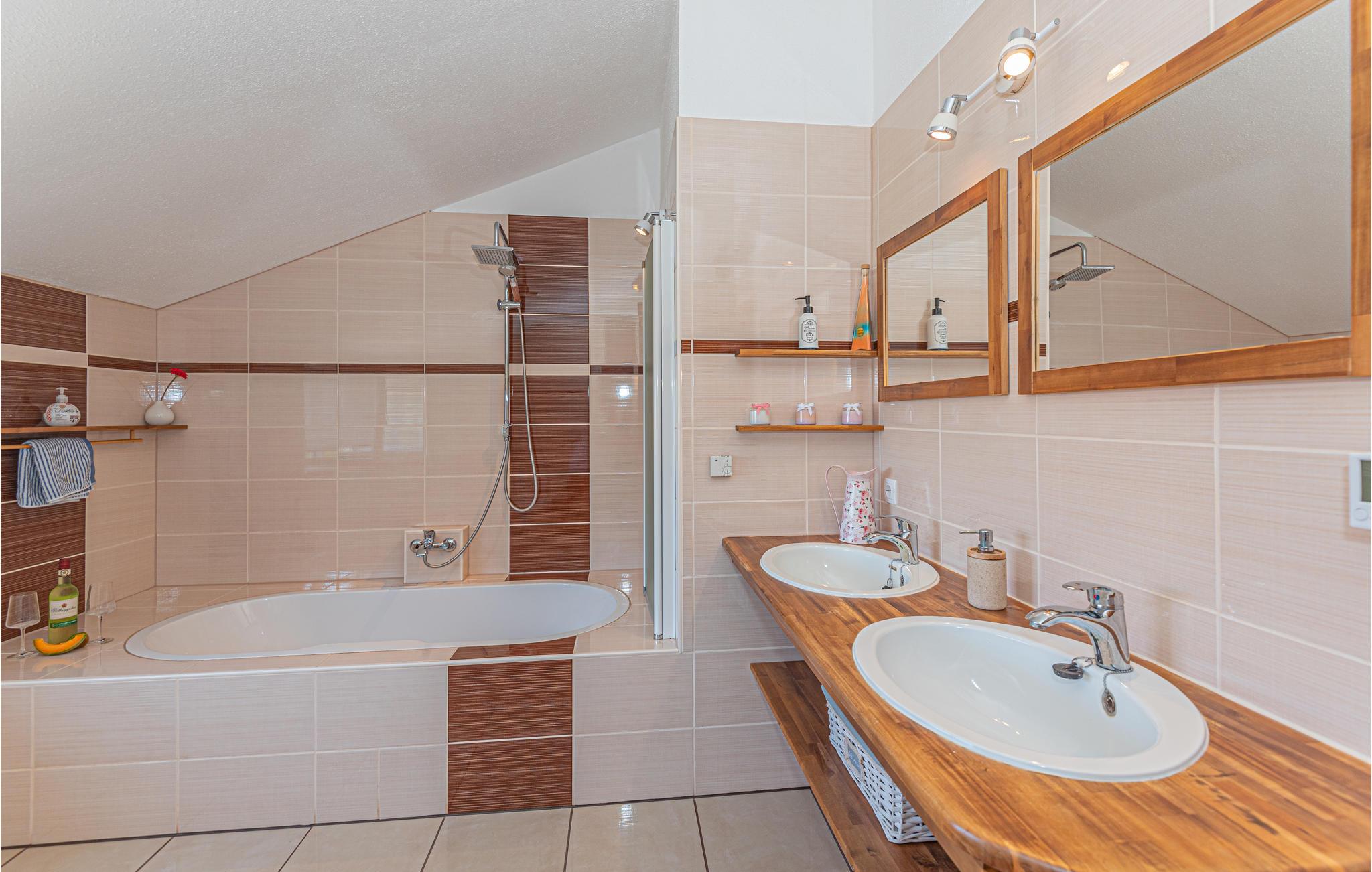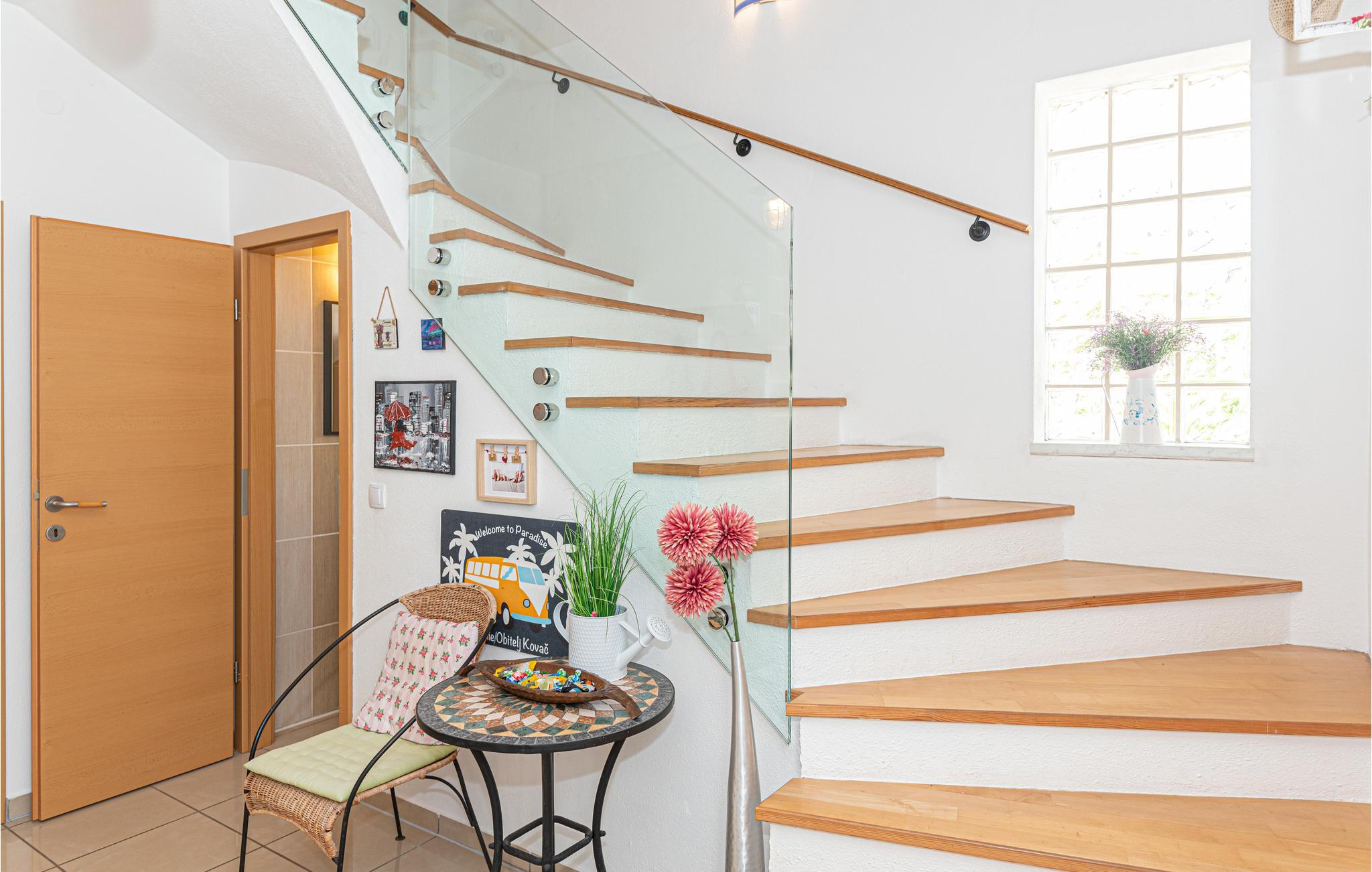 Velkommen til dette lyse feriehus, der tilbyder jer og familien en smuk kombination af murstenssandvægge og moderne bygningselementer. På to etager kan I opleve de rummelige værelser og slappe af. Nyd pejsen, det smukke køkken i moderne landstil eller den store altan på øverste etage. Alle husets bekvemmeligheder lover jer komfort og afslapning fra en hektisk hverdag. I stueetagen er der også en stor, delvist overdækket terrasse, hvor I kan hygge jer sammen og spise jeres grillede, lokale delikatesser om aftenen og så bruge aftentimerne på at lege og hygge med en fantastisk udsigt.