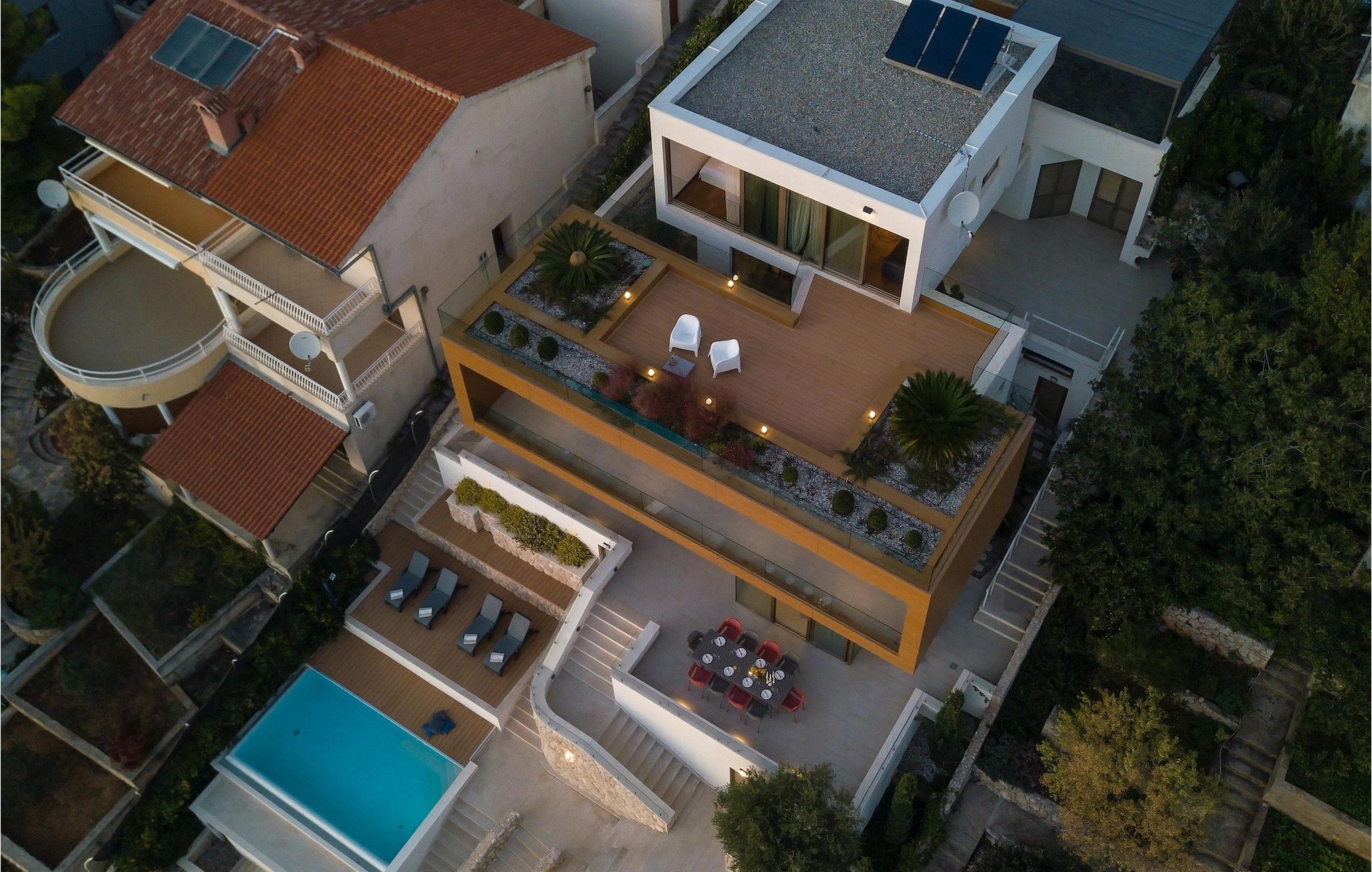 Villa Gloss ligger på den dalmatiske kyst i den rolige landsby Bilo, nær den populære by Primosten. Primosten er et berømt turistmål i Dalmatien og betragtes som en af de smukkeste byer ved Adriaterhavskysten. Hvis du drømmer om en ferie med en spektakulær udsigt over middelhavslandskabet og det krystalklare hav, så er placeringen af Villa Gloss ideel for dig. I Primosten kan du finde alt hvad du behøver til en hyggelig ferie såsom butikker, restauranter, forskellige aktiviteter, populære klubber, events i byen og uberørt natur med smukke strande og et klart hav. Planlægger du ture med din familie? Besøg den nærliggende Krka Nationalpark. Kun 30 minutters kørsel med båd adskiller dig fra Kornati National Park med omkring 60 øer. Vi er sikre på, at du vil blive begejstret for dette storslåede område, så tag vandre- og cykelstier ikke langt fra villaen og udforsk denne uberørte natur.