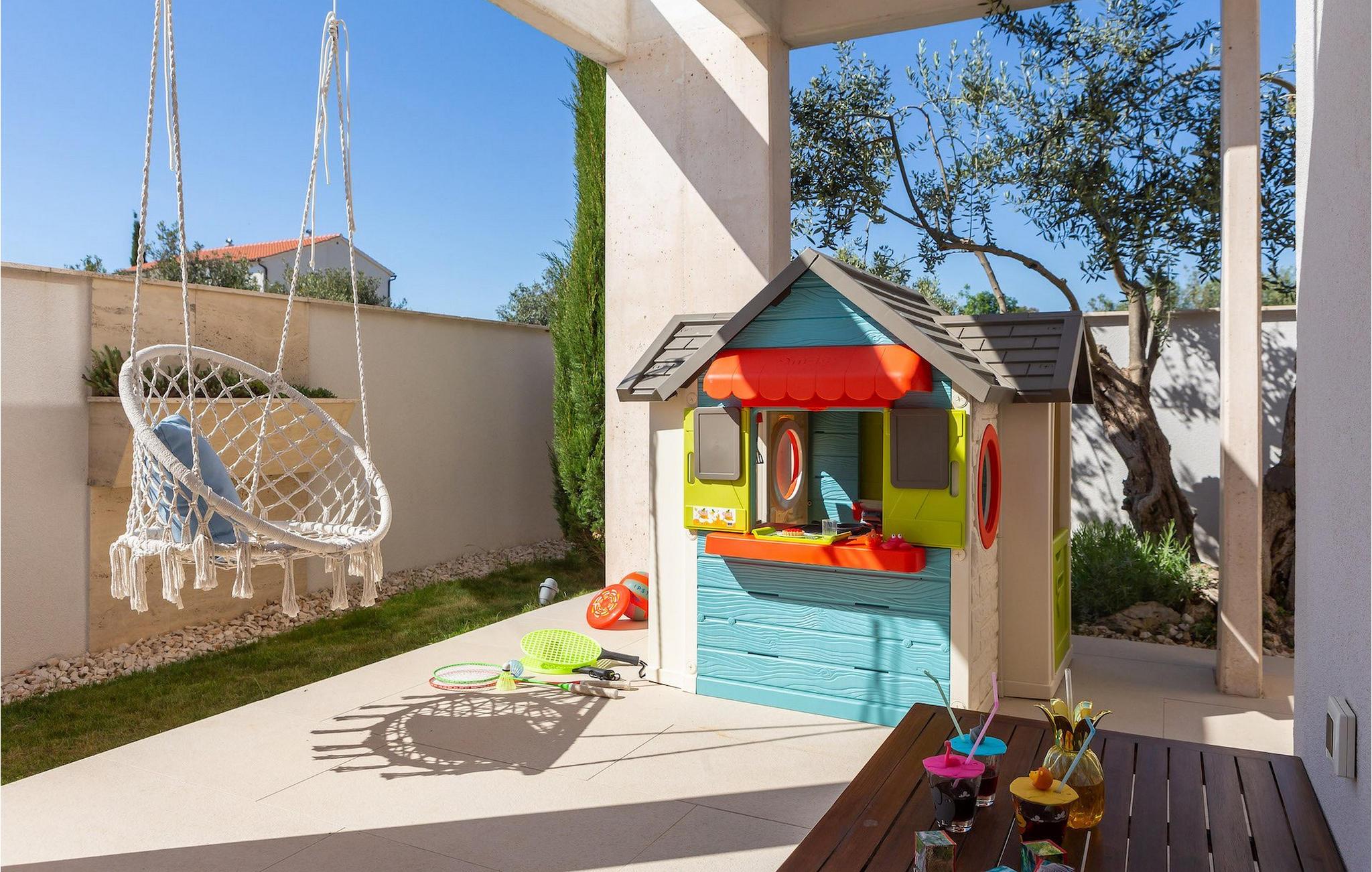 Uderummet er endnu mere spændende, hvis vi må sige det. Du kan slappe af og nyde sommeren, hvor livet er let i skyggen af terrassen. Dine børn kan lege på deres egen legeplads.