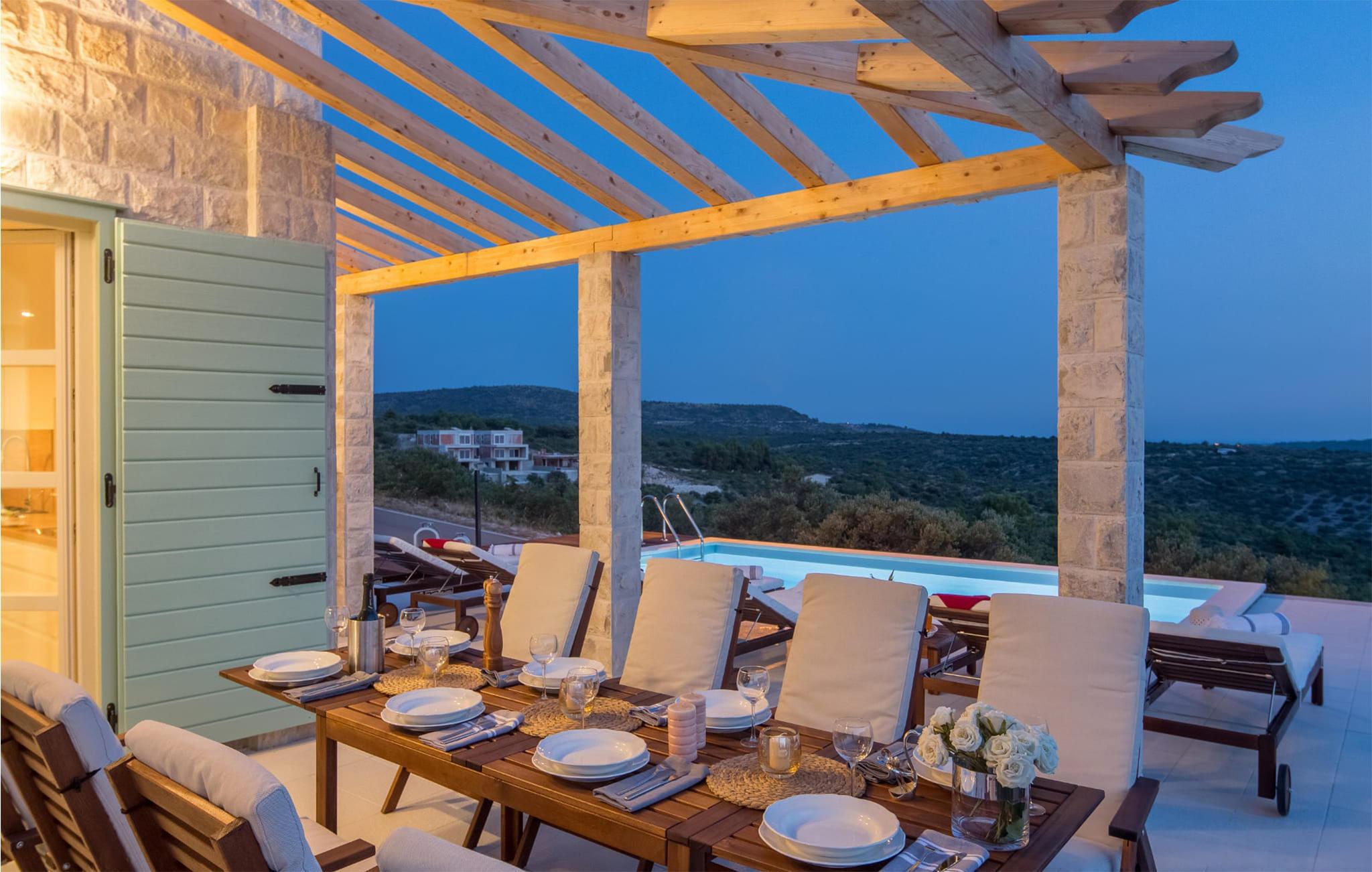 Dette moderne hus ligger i en traditionel dalmatisk feriedestination, og her er I garanteret en fremragende ferie. Der er lagt op til selvforkælelse og en pause fra hverdagen med et vennepar eller jeres udvidede familie i dette smagfuldt og kærligt indrettede hus, hvor I kan glæde jer til både hygge og komfort. Med bløde farver og møbler af høj kvalitet kan I simpelthen ikke undgå at slappe af her og nyde godt af privatliv såvel som social samvær.