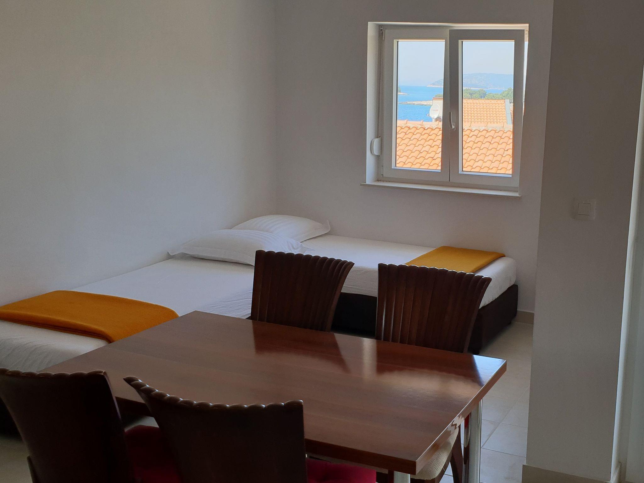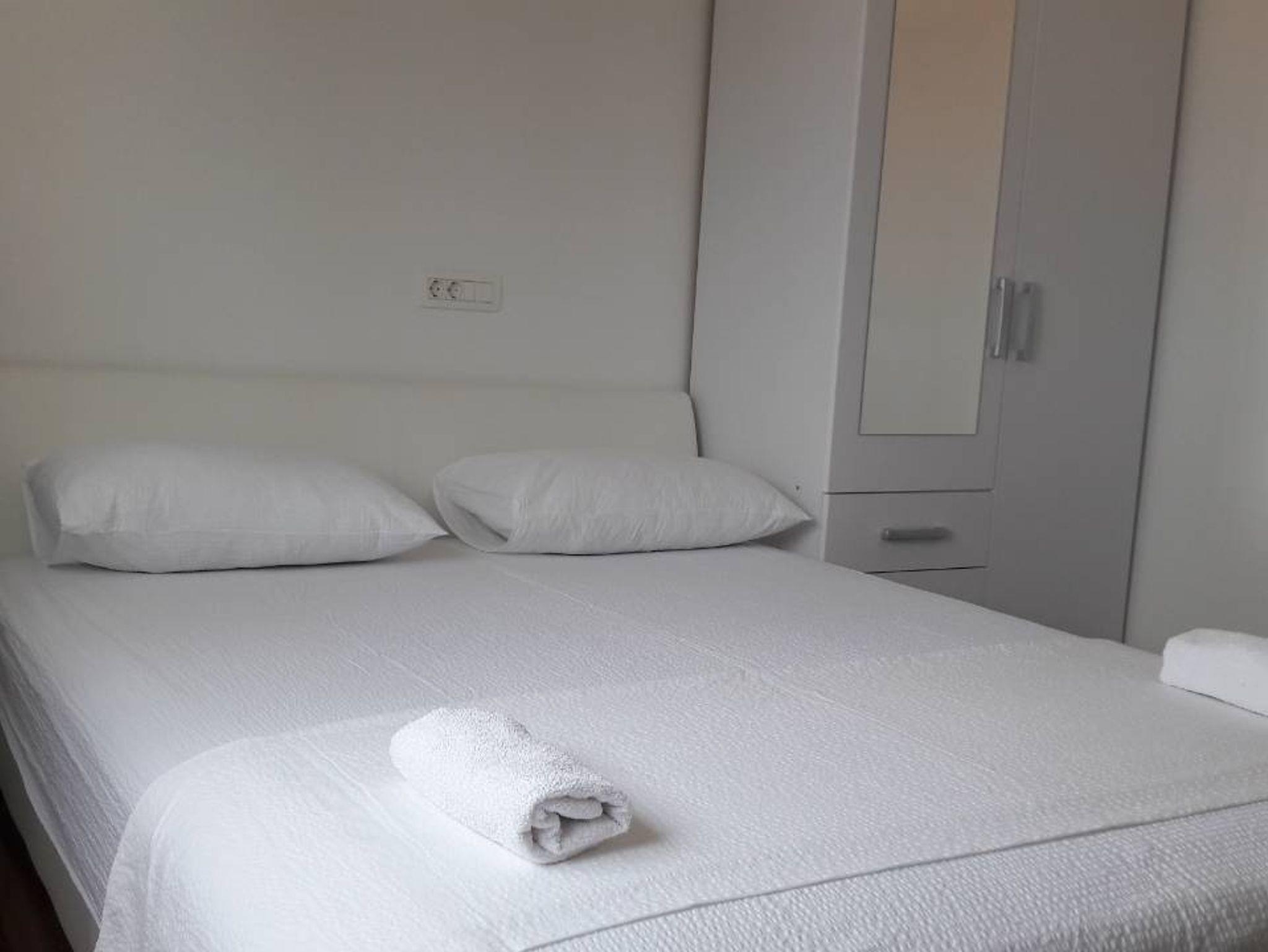 Ferienwohnung bietet Platz für 4 Gäste. Die Betten sind in Schlafzimmern, die es 1 gibt, und in Wohnzimmer, innerhalb einer Gesamtfläche von 33m2, angeordnet. Die Gäste haben eine eigene Terrasse zur Verfügung, auf der sie in warmen Sommernächten genießen können. Das Apartment bietet Meerblick. Es ist erlaubt, Speisen auf dem Gemeinschafts-Grill vorzubereiten. In der Unterkunftseinheit besteht die Möglichkeit des Mitbringens von Haustieren gegen Aufpreis. IM PREIS INBEGRIFFEN: Kurtaxe, Endreinigung, Parkplatz, Internet, Bootsanlegeplatz, Fahrrad, Bügeleisen, Bügelbrett, Föhn. VERBINDLICHE ZUSÄTZLICHE KOSTEN: Aufzahlung für Kurzaufenthalte (prozentualer Zuschlag pro Nächtigungsanzahl: 30% - 1, 20% - 2, 10% - 3). UNVERBINDLICHE ZUSÄTZLICHE KOSTEN: Klimatisierung (8,00 € pro Nacht), Wäschewaschen (3,00 € Waschen), Haustiere (5,00 € pro Nacht). Die Verfügbarkeit zusätzlicher Dienstleistungen in Ihrem reservierten Termin und die Preise derselben (falls nicht aufgeführt) müssen im Voraus überprüft werden. Zusätzliche Dienstleistungen die in der Zahlungsaufforderung nicht aufgeführt sind werden direkt beim Vermieter bezahlt, angenommen der Gast nutzt auch diese. Ermäßigung auf den Grundpreis: Gratistag 14=13 (bei einem Aufenthalt von 14 Tagen oder mehr erhalten Sie einen Gratistag für den Aufenthalt bis 31.12.26).