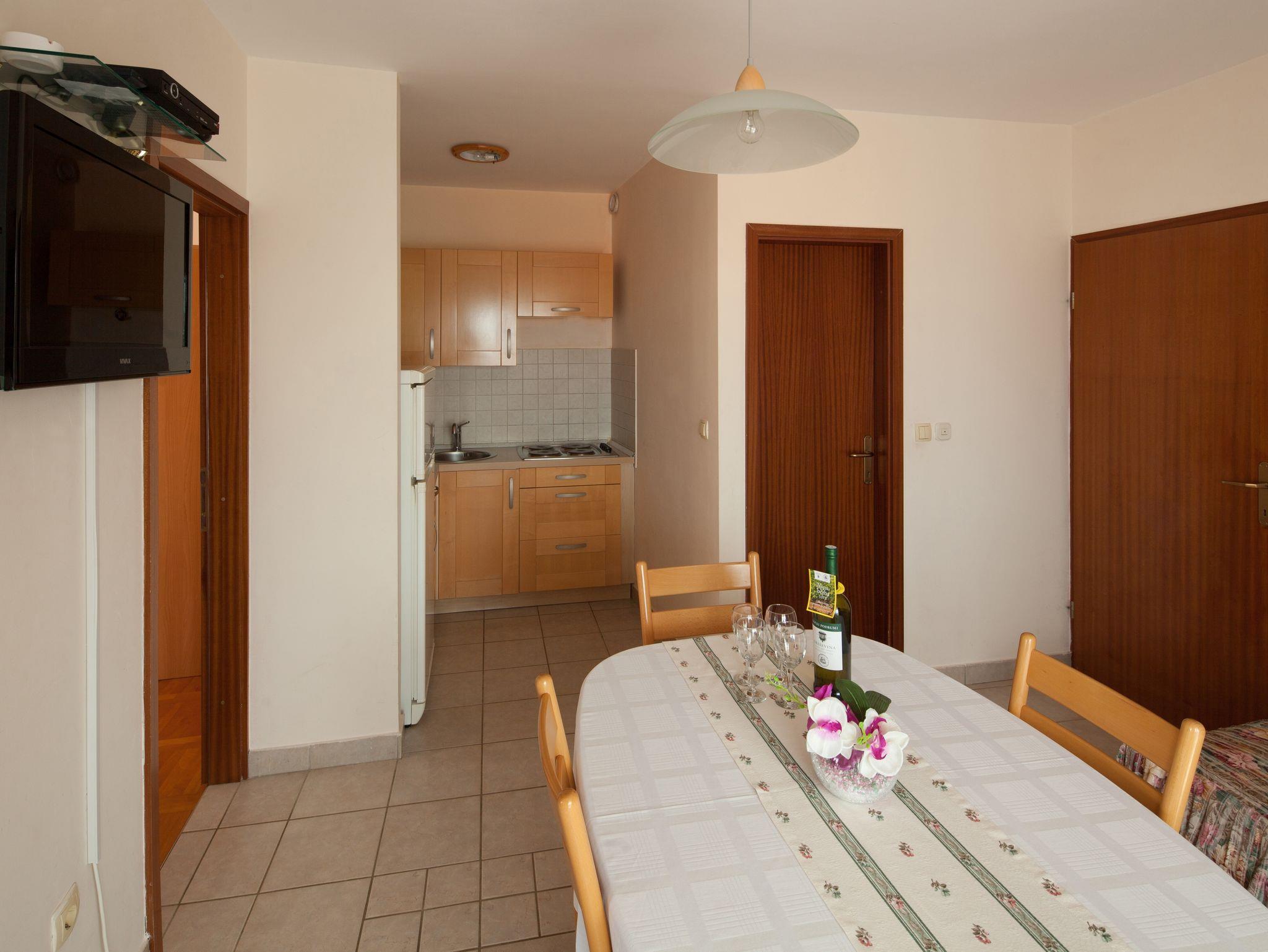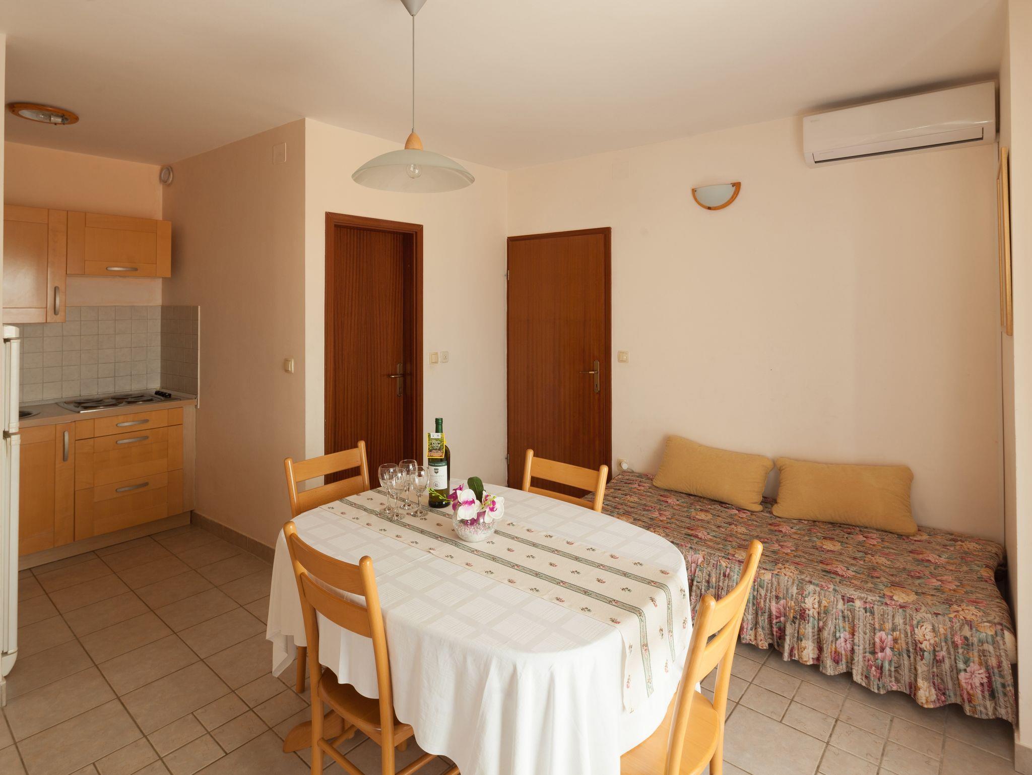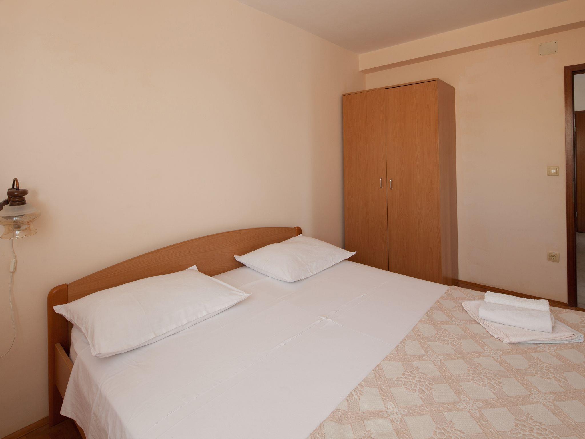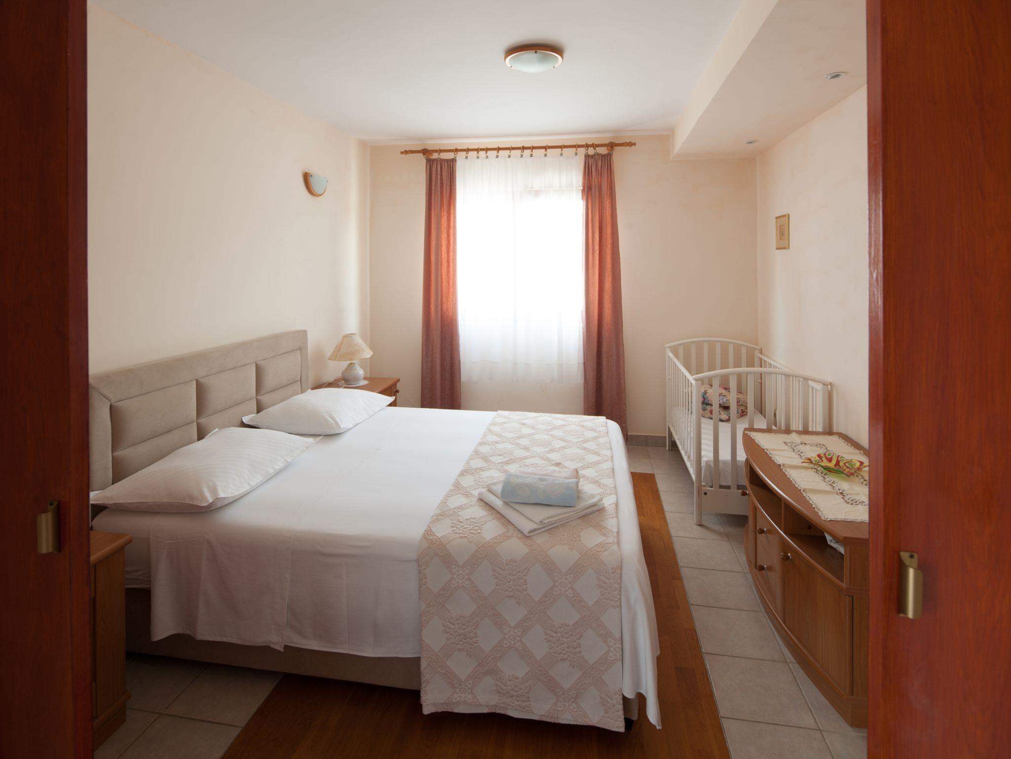 Ferienwohnung bietet Platz für 5 Gäste. Die Betten sind in Schlafzimmern, die es 2 gibt, und in Esszimmer, innerhalb einer Gesamtfläche von 42m2, angeordnet. Die Gäste haben eine eigene Terrasse zur Verfügung, auf der sie in warmen Sommernächten genießen können. Das Apartment bietet Meerblick. Es ist erlaubt, Speisen auf dem Gemeinschafts-Grill vorzubereiten. In der Unterkunftseinheit besteht die Möglichkeit des Mitbringens von Haustieren gegen Aufpreis. IM PREIS INBEGRIFFEN: Kurtaxe, Endreinigung, Parkplatz, Garage, Internet, Kinderbett, Bügeleisen, Bügelbrett, Föhn, Liegestühle. VERBINDLICHE ZUSÄTZLICHE KOSTEN: Aufzahlung für Kurzaufenthalte (prozentualer Zuschlag pro Nächtigungsanzahl: 30% - 1, 20% - 2, 10% - 3). UNVERBINDLICHE ZUSÄTZLICHE KOSTEN: Frühstück (10,00 €, 50% Nachlass für Kinder zwischen 4 und 12 Jahren, Kinder bis 4 Jahre sind frei.), Klimatisierung (7,00 € pro Nacht), Wäschewaschen (5,00 € Waschen), Haustiere (7,00 € pro Nacht). Die Verfügbarkeit zusätzlicher Dienstleistungen in Ihrem reservierten Termin und die Preise derselben (falls nicht aufgeführt) müssen im Voraus überprüft werden. Zusätzliche Dienstleistungen die in der Zahlungsaufforderung nicht aufgeführt sind werden direkt beim Vermieter bezahlt, angenommen der Gast nutzt auch diese.