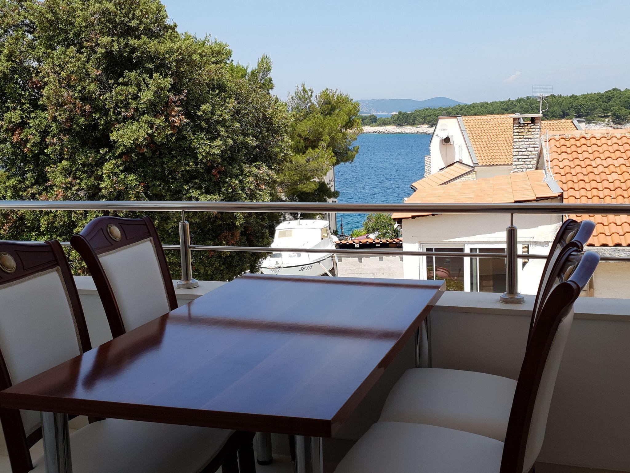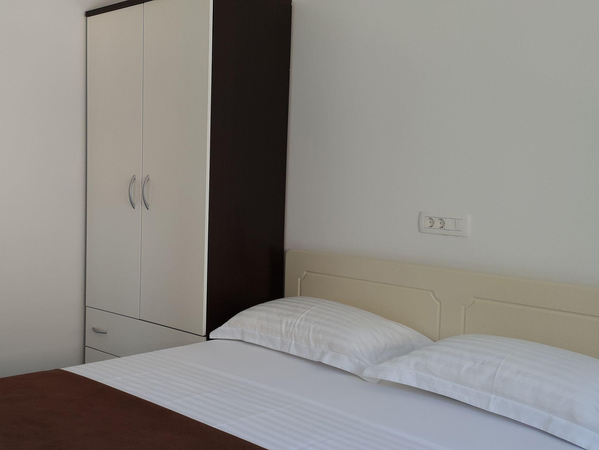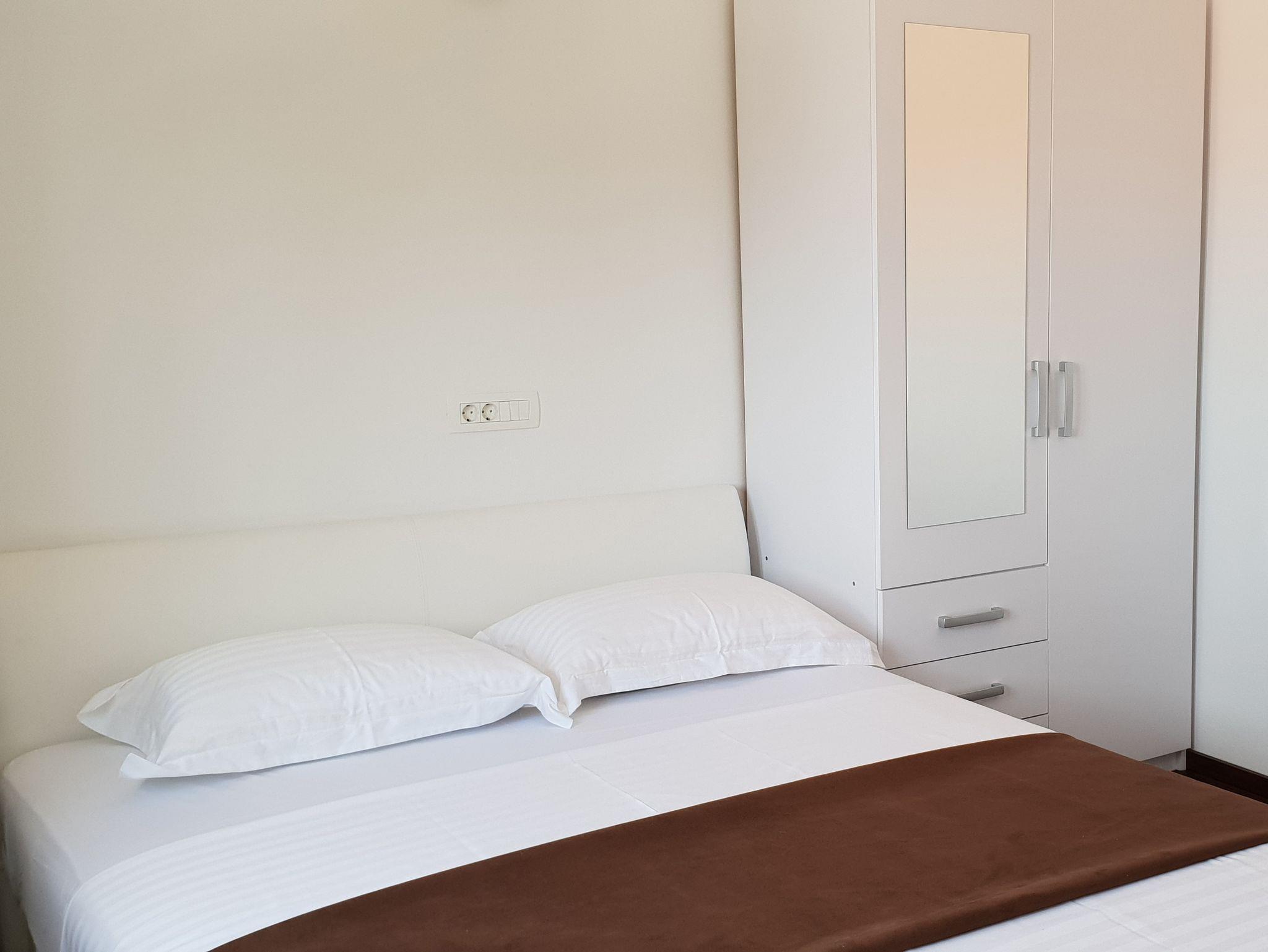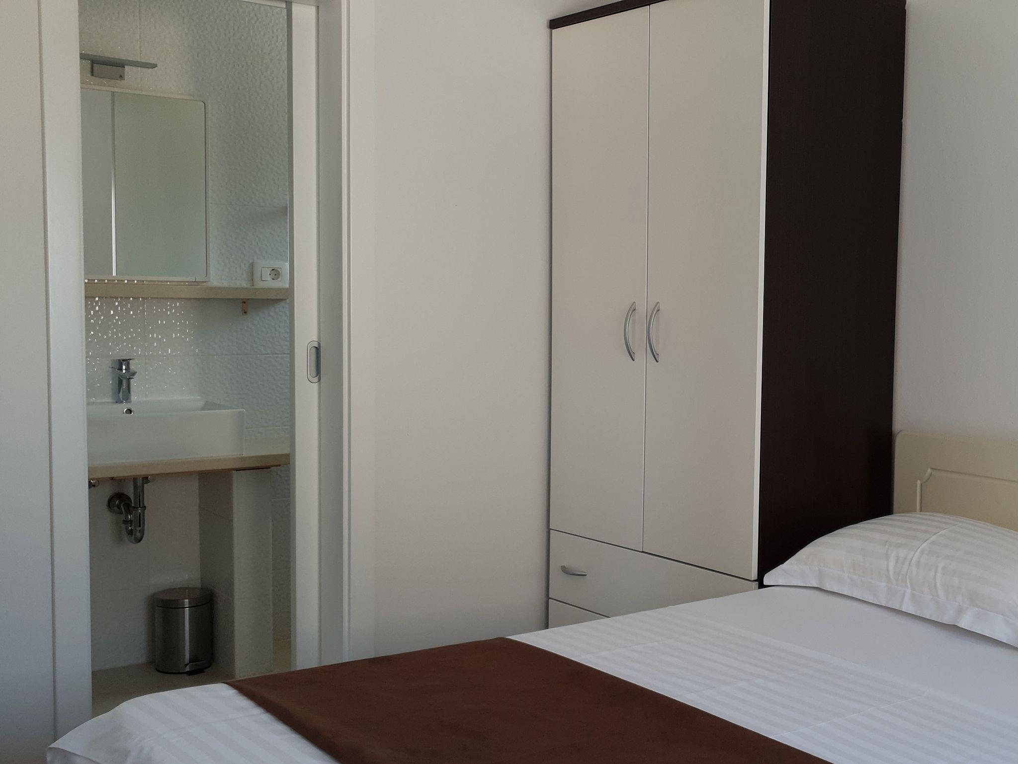 Ferienwohnung bietet Platz für 5 Gäste. Die Betten sind in Schlafzimmern, die es 2 gibt, und in Esszimmer, innerhalb einer Gesamtfläche von 41m2, angeordnet. Die Gäste haben eine eigene Terrasse zur Verfügung, auf der sie in warmen Sommernächten genießen können. Das Apartment bietet Meerblick. Es ist erlaubt, Speisen auf dem Gemeinschafts-Grill vorzubereiten. In der Unterkunftseinheit besteht die Möglichkeit des Mitbringens von Haustieren gegen Aufpreis. IM PREIS INBEGRIFFEN: Kurtaxe, Endreinigung, Parkplatz, Internet, Bootsanlegeplatz, Fahrrad, Bügeleisen, Bügelbrett, Föhn. VERBINDLICHE ZUSÄTZLICHE KOSTEN: Aufzahlung für Kurzaufenthalte (prozentualer Zuschlag pro Nächtigungsanzahl: 30% - 1, 20% - 2, 10% - 3). UNVERBINDLICHE ZUSÄTZLICHE KOSTEN: Klimatisierung (8,00 € pro Nacht), Wäschewaschen (3,00 € Waschen), Haustiere (5,00 € pro Nacht). Die Verfügbarkeit zusätzlicher Dienstleistungen in Ihrem reservierten Termin und die Preise derselben (falls nicht aufgeführt) müssen im Voraus überprüft werden. Zusätzliche Dienstleistungen die in der Zahlungsaufforderung nicht aufgeführt sind werden direkt beim Vermieter bezahlt, angenommen der Gast nutzt auch diese. Ermäßigung auf den Grundpreis: Gratistag 14=13 (bei einem Aufenthalt von 14 Tagen oder mehr erhalten Sie einen Gratistag für den Aufenthalt bis 31.12.26).