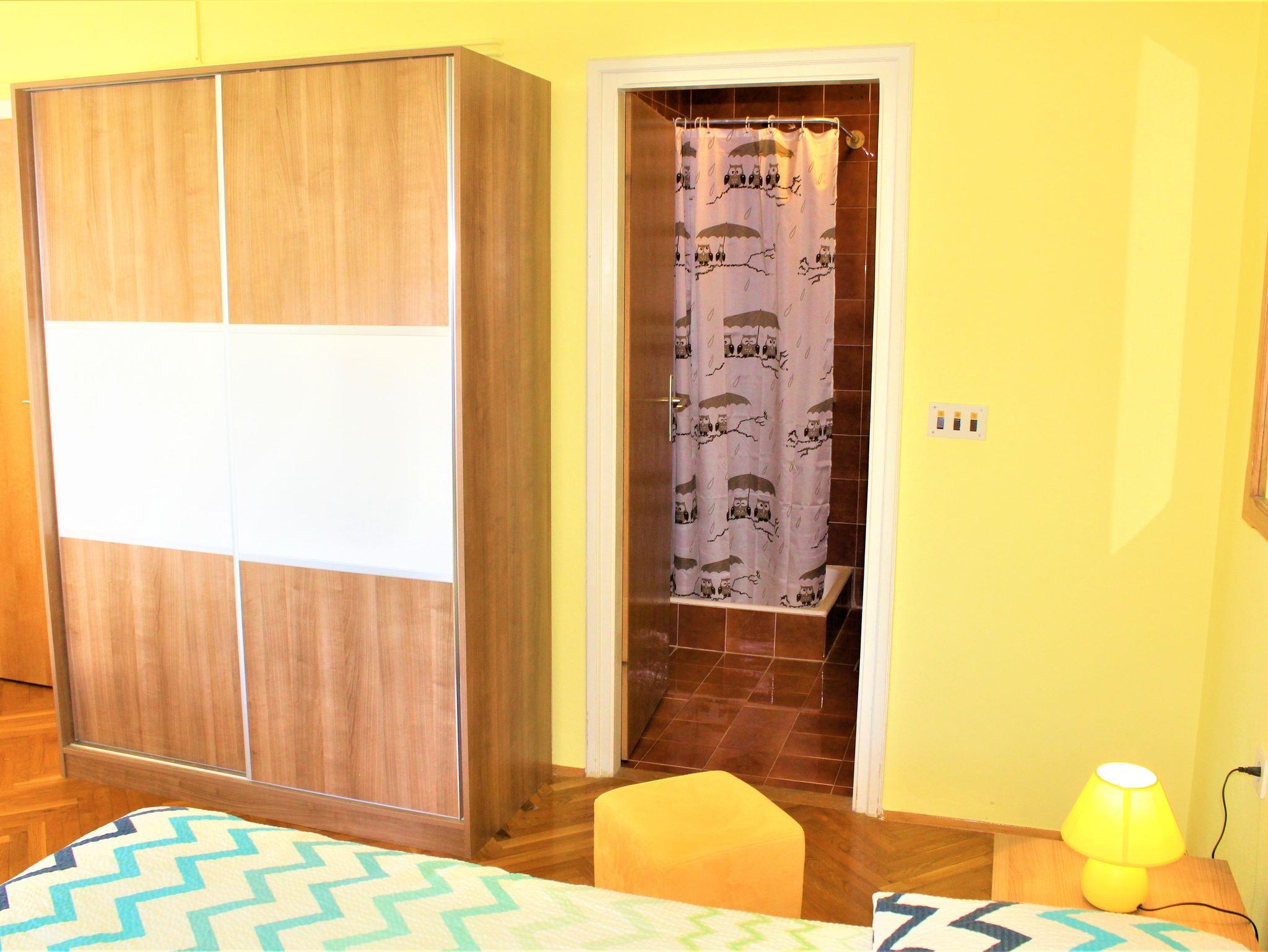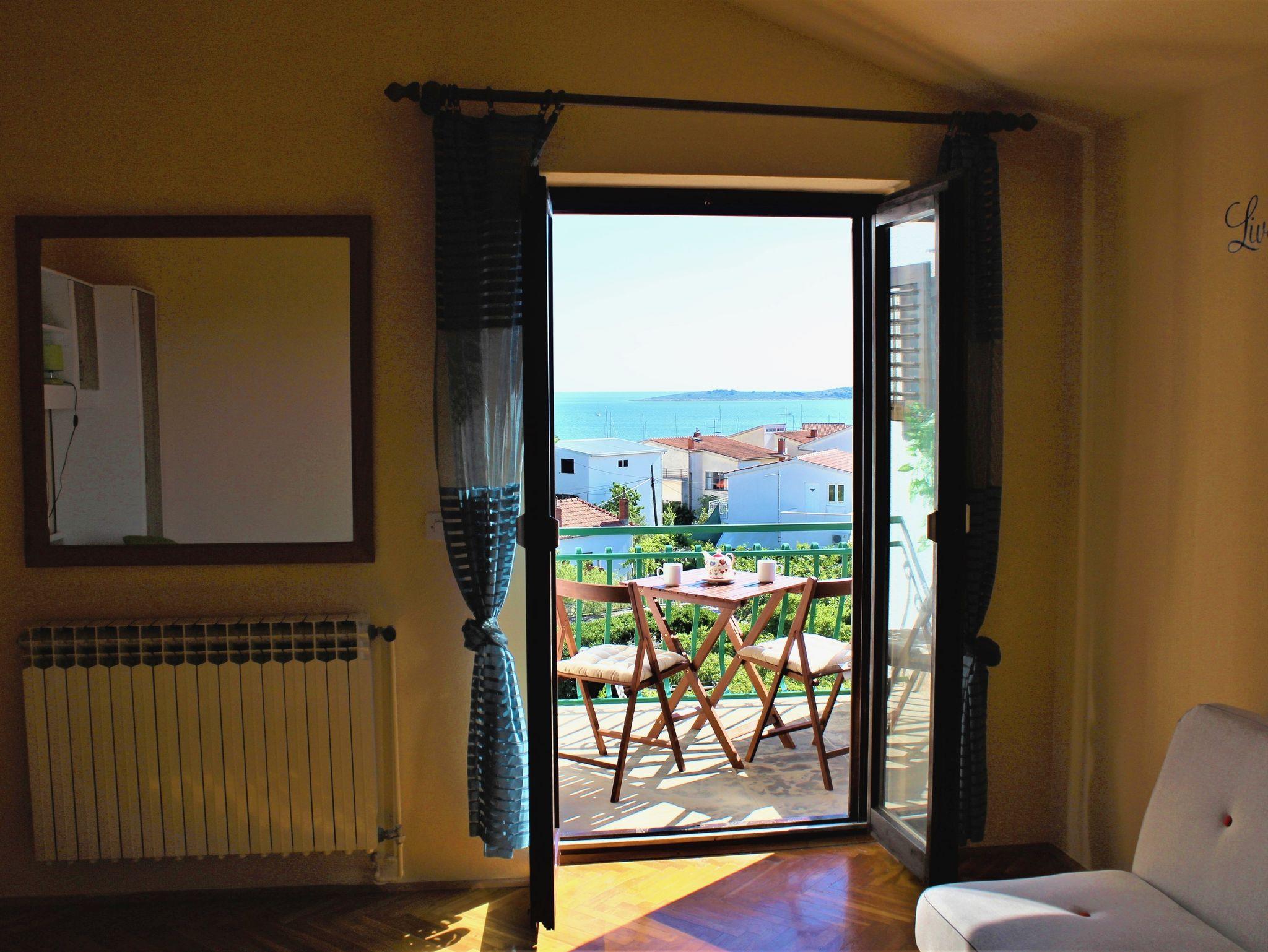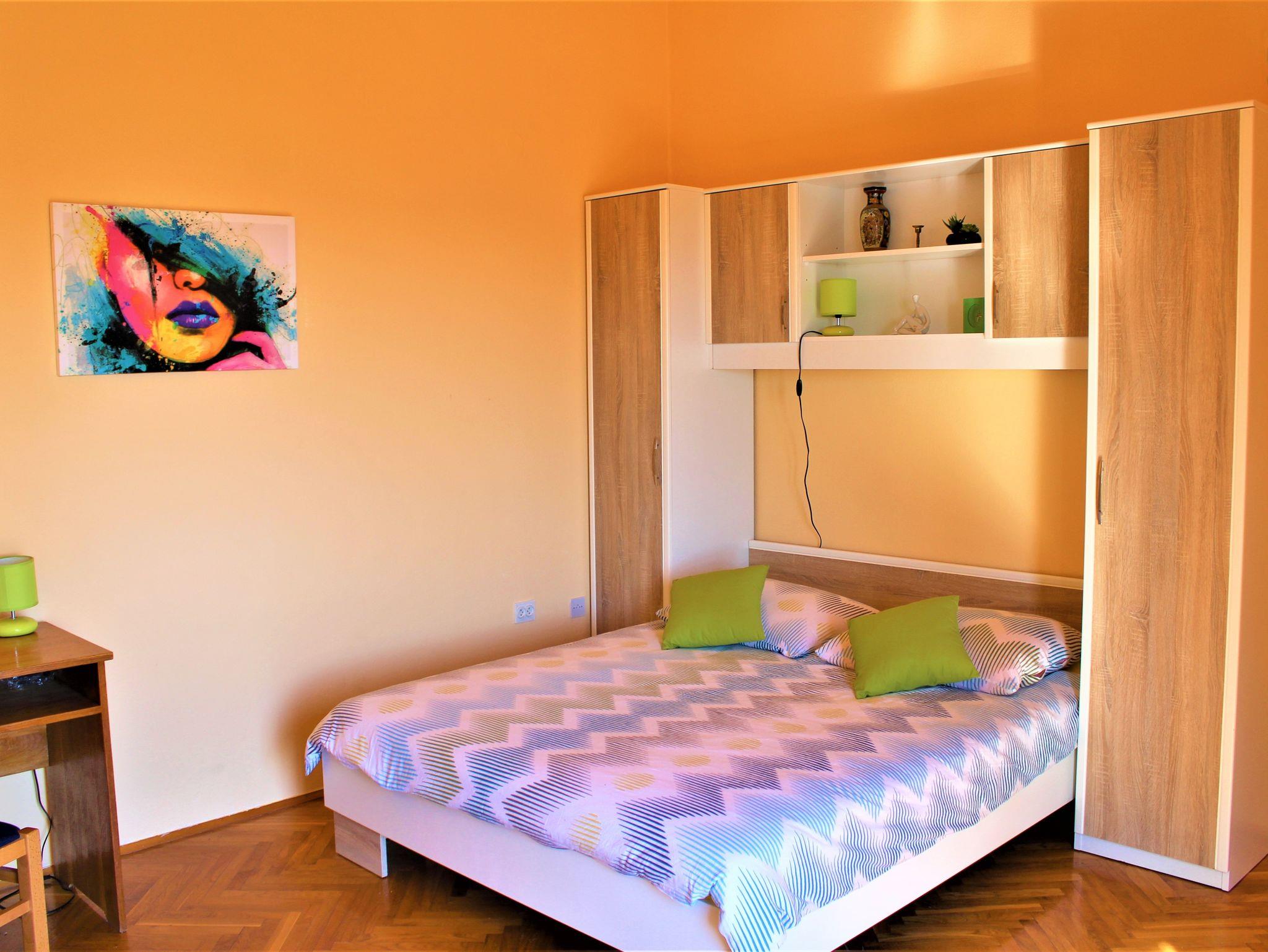 Ferienwohnung bietet Platz für 8 Gäste. Die Betten sind in Schlafzimmern, die es 2 gibt, und in Wohnzimmer, innerhalb einer Gesamtfläche von 82m2, angeordnet. Die Gäste haben eine eigene Terrasse zur Verfügung, auf der sie in warmen Sommernächten genießen können. Das Apartment bietet Meerblick. Es ist erlaubt, Speisen auf dem Gemeinschafts-Grill vorzubereiten. In der Unterkunftseinheit besteht die Möglichkeit des Mitbringens von Haustieren gegen Aufpreis. IM PREIS INBEGRIFFEN: Kurtaxe, Endreinigung, Klimatisierung, Parkplatz, Internet, Kinderbett, Bügeleisen, Bügelbrett, Föhn. VERBINDLICHE ZUSÄTZLICHE KOSTEN: Aufzahlung für Kurzaufenthalte (prozentualer Zuschlag pro Nächtigungsanzahl: 30% - 1, 20% - 2, 10% - 3). UNVERBINDLICHE ZUSÄTZLICHE KOSTEN: Haustiere (10,00 € pro Nacht). Die Verfügbarkeit zusätzlicher Dienstleistungen in Ihrem reservierten Termin und die Preise derselben (falls nicht aufgeführt) müssen im Voraus überprüft werden. Zusätzliche Dienstleistungen die in der Zahlungsaufforderung nicht aufgeführt sind werden direkt beim Vermieter bezahlt, angenommen der Gast nutzt auch diese.