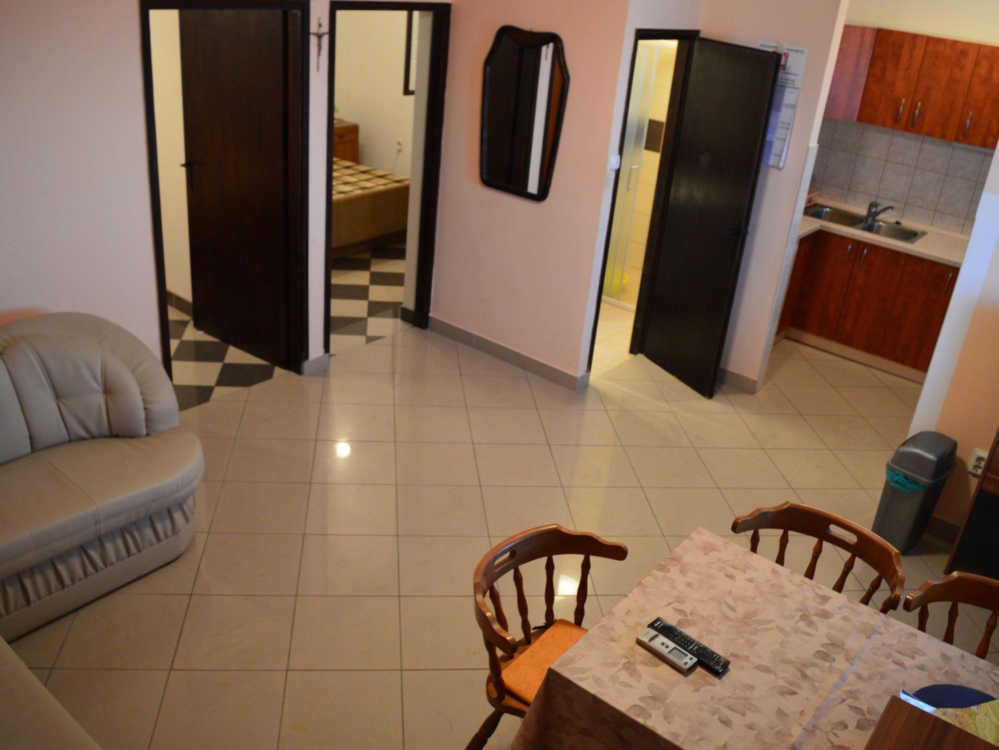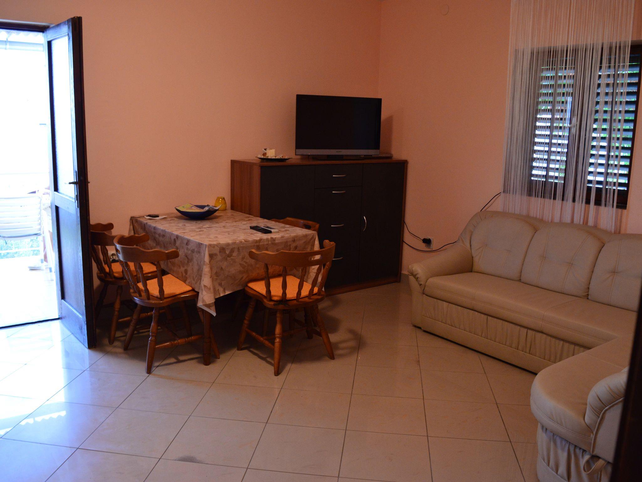 Ferienwohnung bietet Platz für 6 Gäste. Die Betten sind in Schlafzimmern, die es 2 gibt, und in Wohnzimmer, innerhalb einer Gesamtfläche von 34m2, angeordnet. Die Gäste haben eine eigene Terrasse zur Verfügung, auf der sie in warmen Sommernächten genießen können. Das Apartment bietet Meerblick. Es ist erlaubt, Speisen auf dem Gemeinschafts-Grill vorzubereiten. IM PREIS INBEGRIFFEN: Kurtaxe, Endreinigung, Klimatisierung, Parkplatz, Internet, Wäschewaschen, Bügeleisen, Bügelbrett, Föhn. VERBINDLICHE ZUSÄTZLICHE KOSTEN: Aufzahlung für Kurzaufenthalte (prozentualer Zuschlag pro Nächtigungsanzahl: 30% - 1, 20% - 2, 10% - 3). Die Verfügbarkeit zusätzlicher Dienstleistungen in Ihrem reservierten Termin und die Preise derselben (falls nicht aufgeführt) müssen im Voraus überprüft werden. Zusätzliche Dienstleistungen die in der Zahlungsaufforderung nicht aufgeführt sind werden direkt beim Vermieter bezahlt, angenommen der Gast nutzt auch diese.