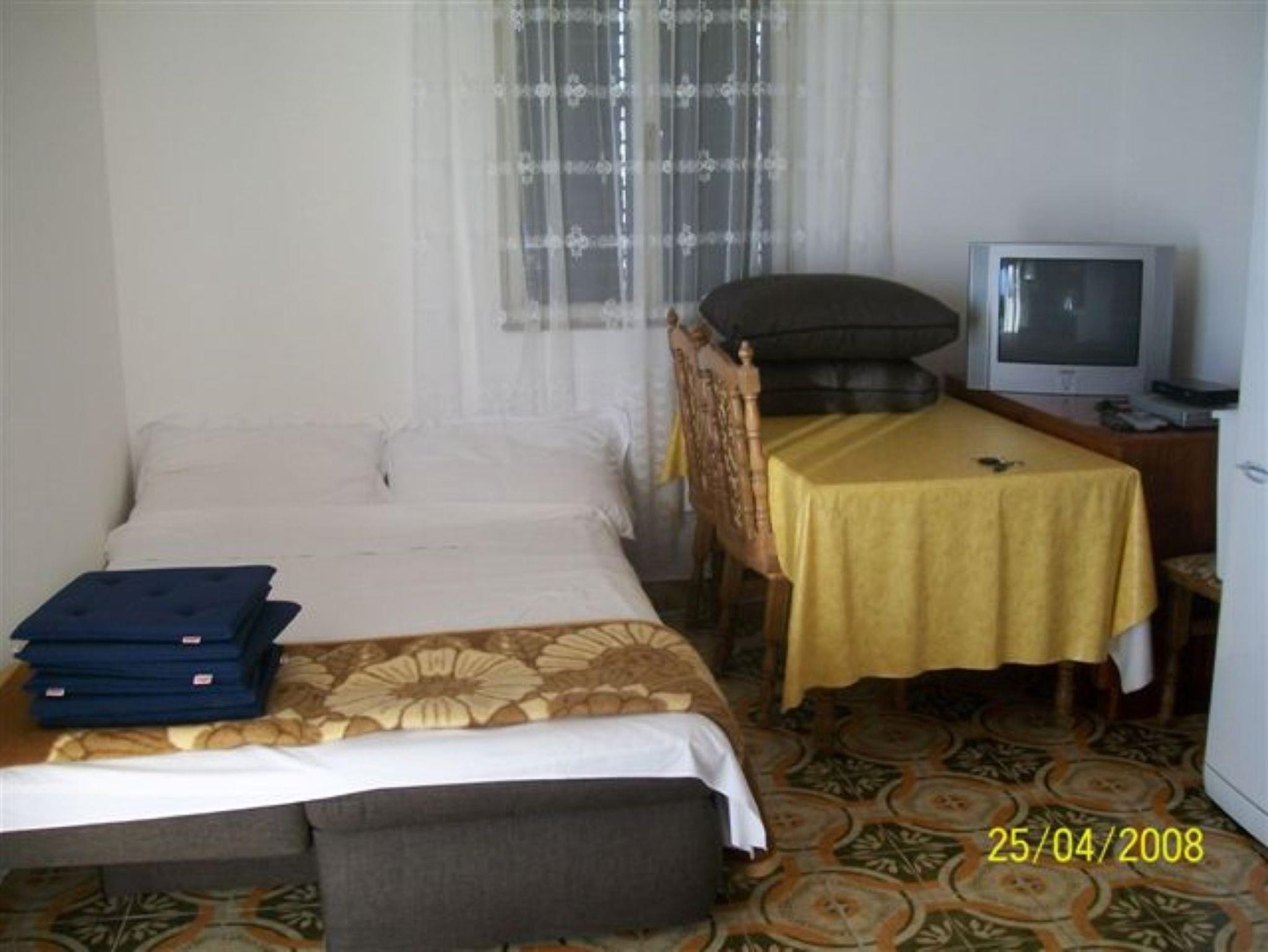 Ferienwohnung bietet Platz für 6 Gäste. Die Betten sind in Schlafzimmern, die es 2 gibt, und in Esszimmer, innerhalb einer Gesamtfläche von 34m2, angeordnet. Die Gäste haben eine eigene Terrasse zur Verfügung, auf der sie in warmen Sommernächten genießen können. Das Apartment bietet Meerblick. Es ist erlaubt, Speisen auf dem Gemeinschafts-Grill vorzubereiten. IM PREIS INBEGRIFFEN: Kurtaxe, Endreinigung, Klimatisierung, Parkplatz, Internet, Wäschewaschen, Bügeleisen, Bügelbrett, Föhn. VERBINDLICHE ZUSÄTZLICHE KOSTEN: Aufzahlung für Kurzaufenthalte (prozentualer Zuschlag pro Nächtigungsanzahl: 30% - 1, 20% - 2, 10% - 3). Die Verfügbarkeit zusätzlicher Dienstleistungen in Ihrem reservierten Termin und die Preise derselben (falls nicht aufgeführt) müssen im Voraus überprüft werden. Zusätzliche Dienstleistungen die in der Zahlungsaufforderung nicht aufgeführt sind werden direkt beim Vermieter bezahlt, angenommen der Gast nutzt auch diese.