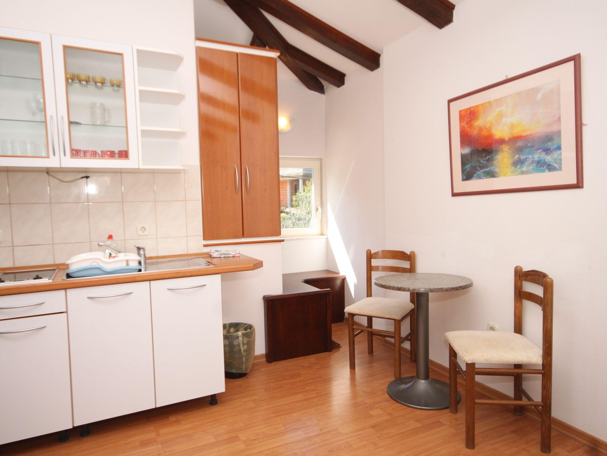 Ferienwohnung bietet Platz für 4 Gäste. Die Betten sind in Schlafzimmern, die es 1 gibt, und in Wohnzimmer, innerhalb einer Gesamtfläche von 37m2, angeordnet. Die Gäste haben einen eigenen Balkon zur Verfügung, auf der sie in warmen Sommernächten genießen können. Das Apartment bietet Meerblick. Es ist erlaubt, Speisen auf dem Gemeinschafts-Grill vorzubereiten. In der Unterkunftseinheit besteht die Möglichkeit des Mitbringens von Haustieren gegen Aufpreis. IM PREIS INBEGRIFFEN: Kurtaxe, Endreinigung, Parkplatz, Internet, Bootsanlegeplatz, Fahrrad, Bügeleisen, Bügelbrett, Föhn, Liegestühle. VERBINDLICHE ZUSÄTZLICHE KOSTEN: Aufzahlung für Kurzaufenthalte (prozentualer Zuschlag pro Nächtigungsanzahl: 30% - 1, 20% - 2, 10% - 3). UNVERBINDLICHE ZUSÄTZLICHE KOSTEN: Klimatisierung (8,00 € pro Nacht), Wäschewaschen (5,00 € Waschen), Haustiere (5,00 € pro Nacht). Die Verfügbarkeit zusätzlicher Dienstleistungen in Ihrem reservierten Termin und die Preise derselben (falls nicht aufgeführt) müssen im Voraus überprüft werden. Zusätzliche Dienstleistungen die in der Zahlungsaufforderung nicht aufgeführt sind werden direkt beim Vermieter bezahlt, angenommen der Gast nutzt auch diese.