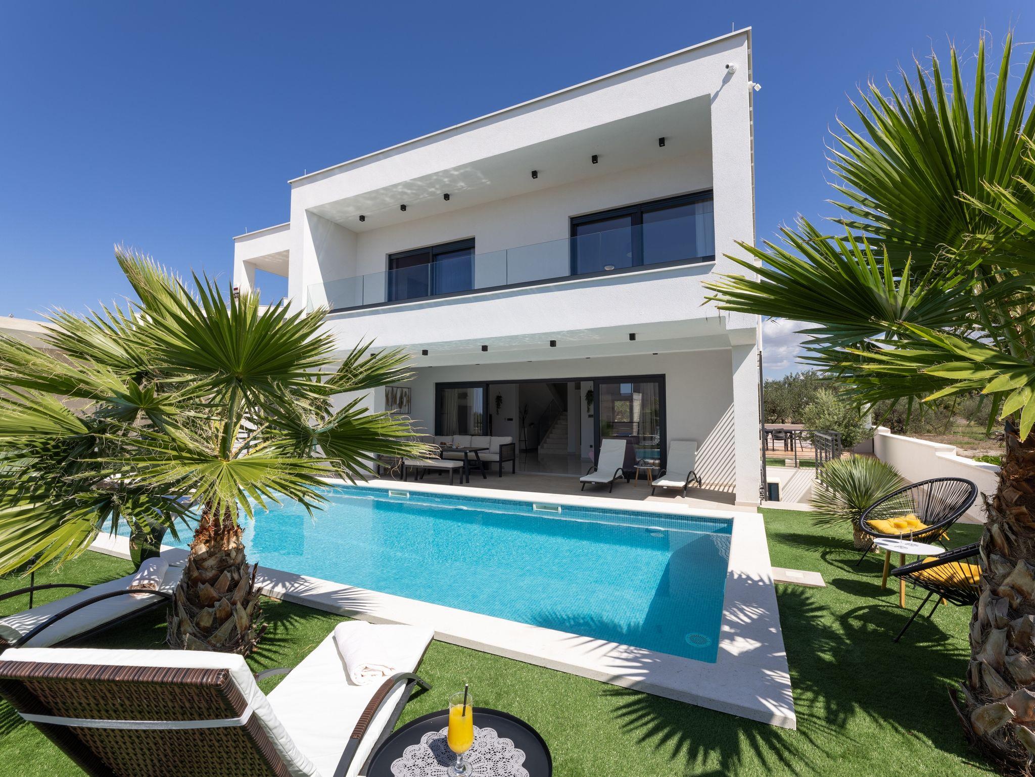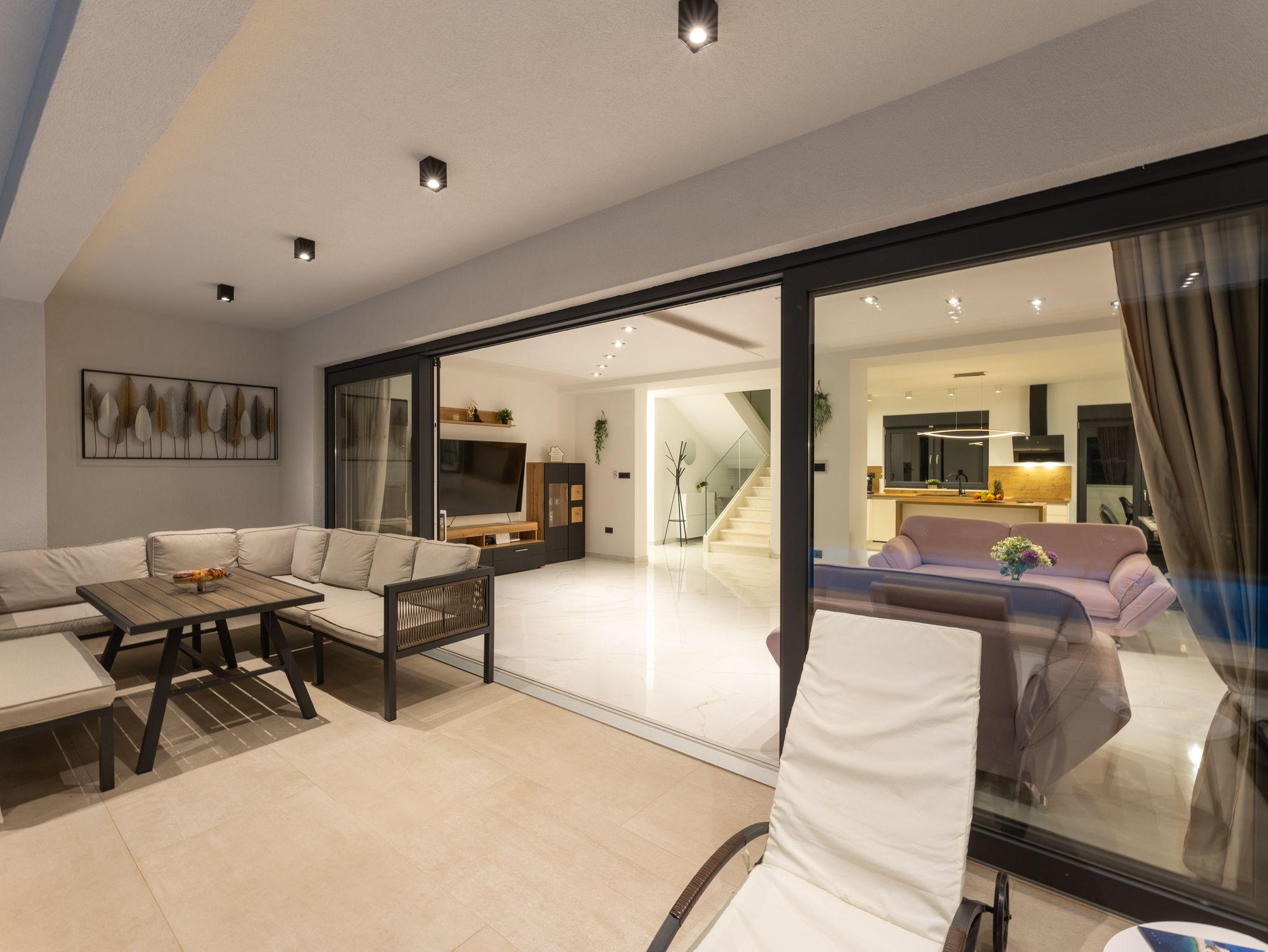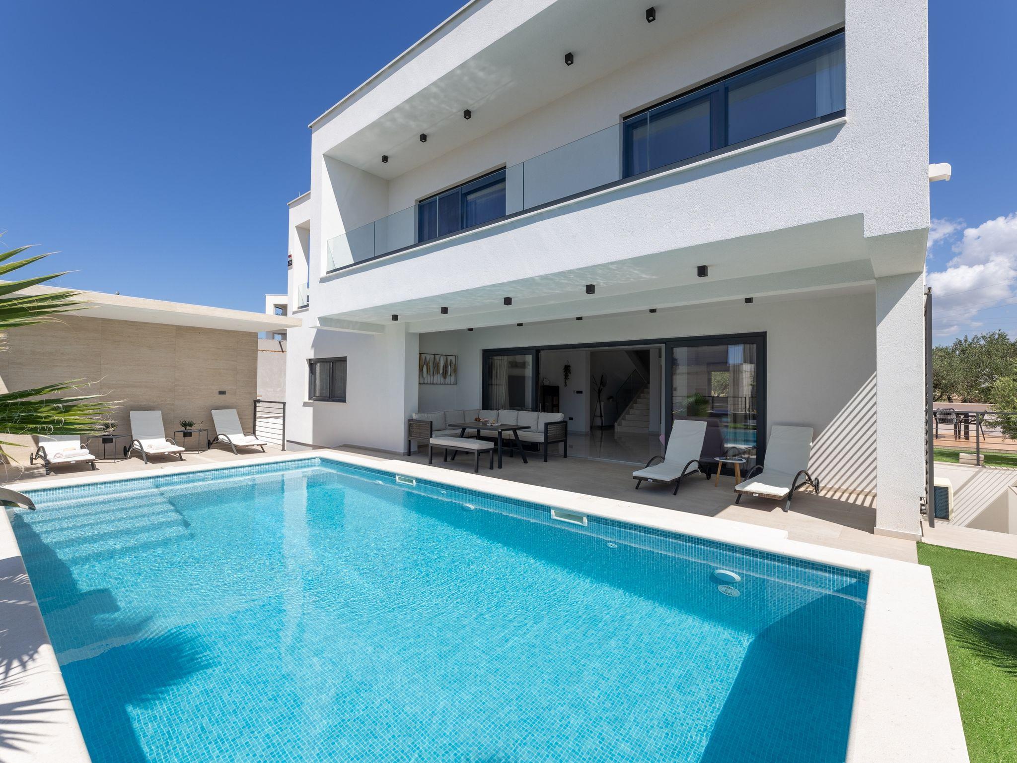 Haus bietet Platz für 10 Gäste. Die Betten sind in Schlafzimmern, die es 5 gibt, innerhalb einer Gesamtfläche von 181m2, angeordnet. Die Gäste haben eine eigene Terrasse zur Verfügung, auf der sie in warmen Sommernächten genießen können. Das Haus bietet Meerblick. Für vollen Genuss und Entspannung gibt es einen privaten Grill für Gäste dieser Unterkunft. Während ihres Aufenthalts können sich Gäste im privaten Schwimmbad entspannen. In der Unterkunftseinheit besteht die Möglichkeit des Mitbringens von Haustieren gegen Aufpreis. IM PREIS INBEGRIFFEN: Kurtaxe, Endreinigung, Klimatisierung, Pool, Parkplatz, Internet, Kinderbett, Zusatzbett, Bügeleisen, Bügelbrett, Föhn, Liegestühle. UNVERBINDLICHE ZUSÄTZLICHE KOSTEN: Haustiere (15,00 € pro Nacht). Die Verfügbarkeit zusätzlicher Dienstleistungen in Ihrem reservierten Termin und die Preise derselben (falls nicht aufgeführt) müssen im Voraus überprüft werden. Zusätzliche Dienstleistungen die in der Zahlungsaufforderung nicht aufgeführt sind werden direkt beim Vermieter bezahlt, angenommen der Gast nutzt auch diese. Ermäßigung auf den Grundpreis: Gratistag 28=25 (bei einem Aufenthalt von 28 oder mehr Tagen erhalten Sie 3 kostenlose Tage für den Aufenthalt bis 31.12.26).
