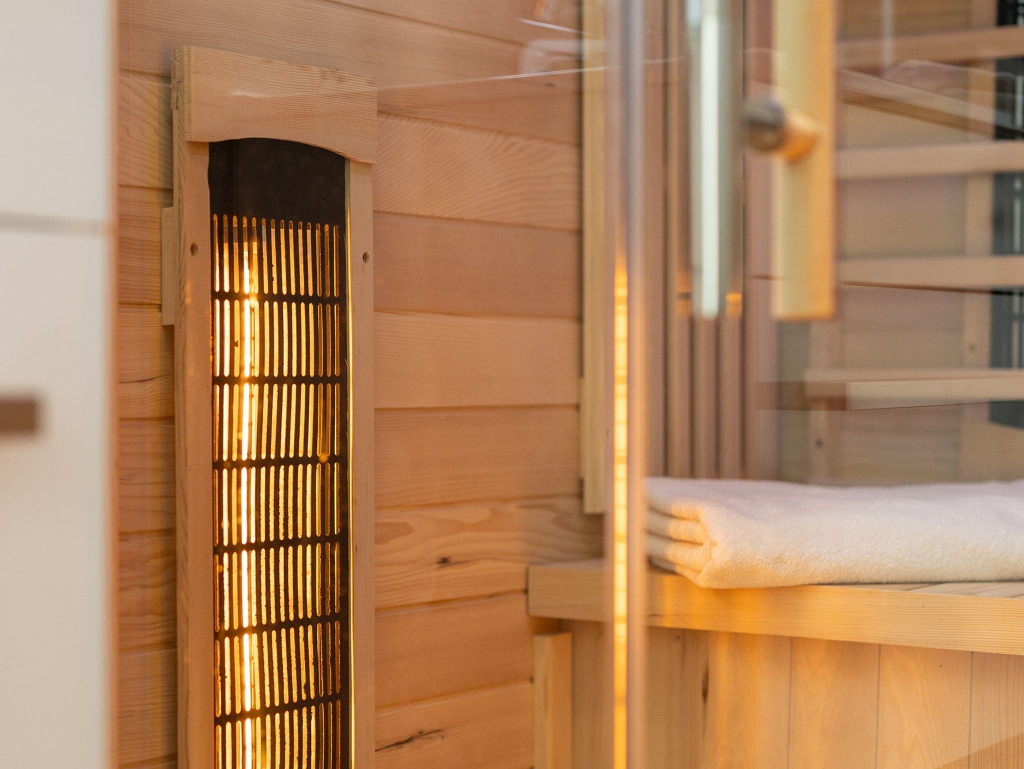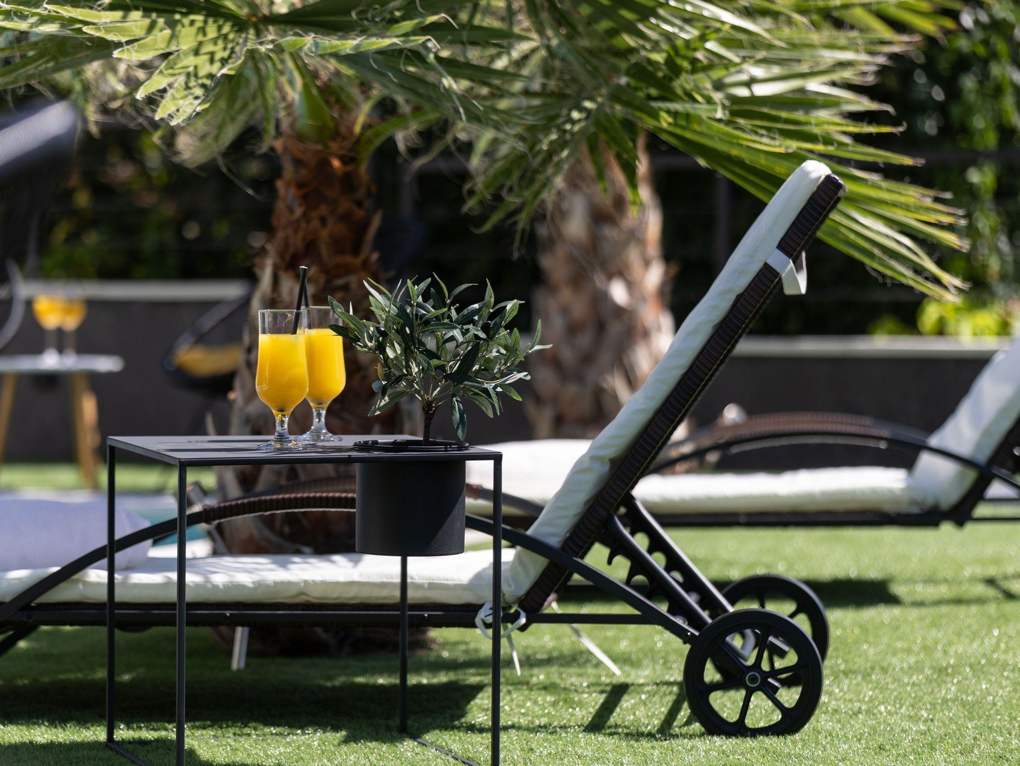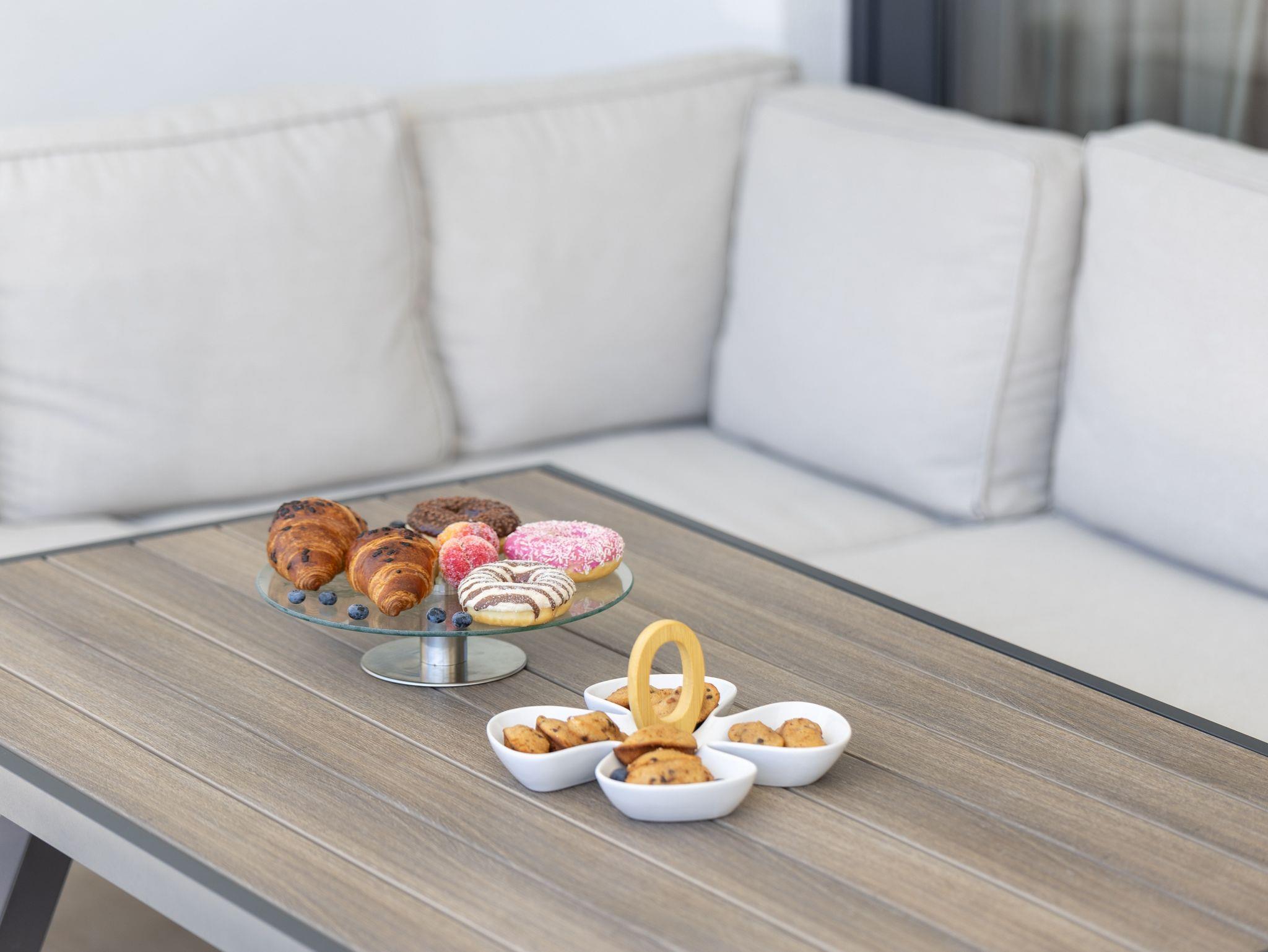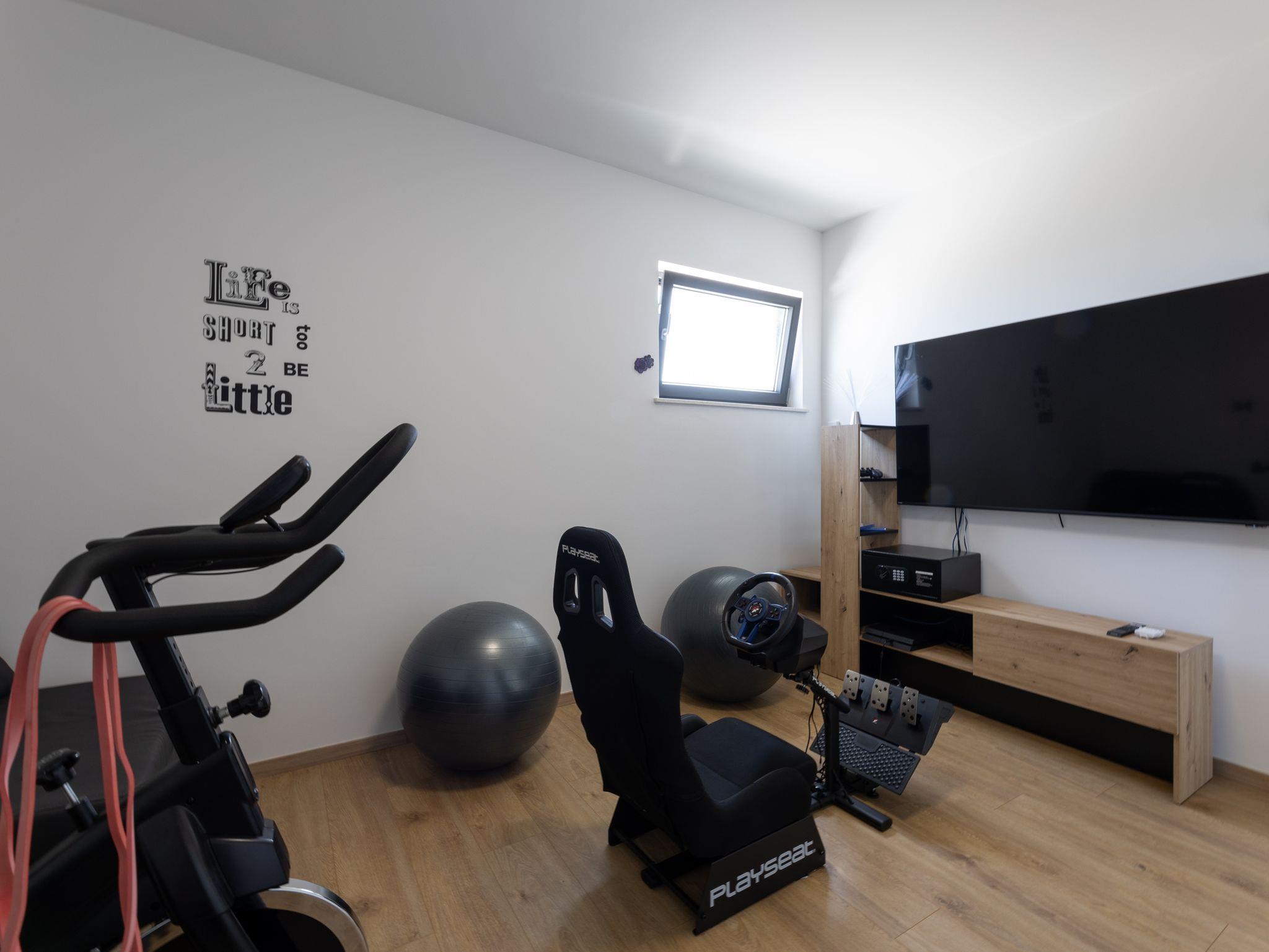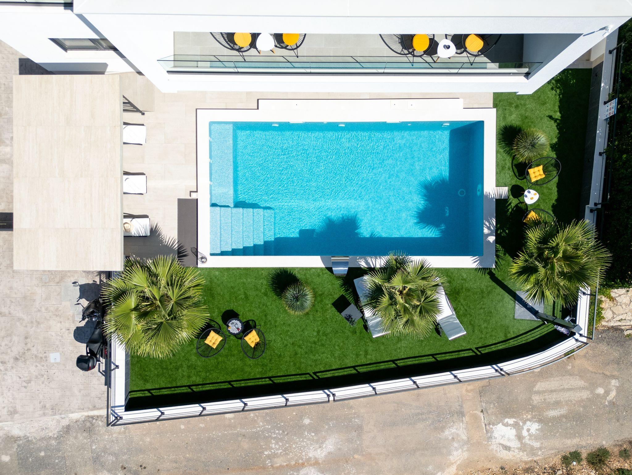 Hof (500m2, Kinderbereich, Sitzbereich), Parkplatz (Anzahl der Parkplätze: 4, Entfernung vom Objekt: im Hof), Pool: privat, Dimensionen: 8m x 4m x 1.5m, Wassertyp: Salzwasser, Heizung: Ja, WiFi Internet, Föhn, Bügeleisen, Bügelbrett, Liegestühle, Kinderbett