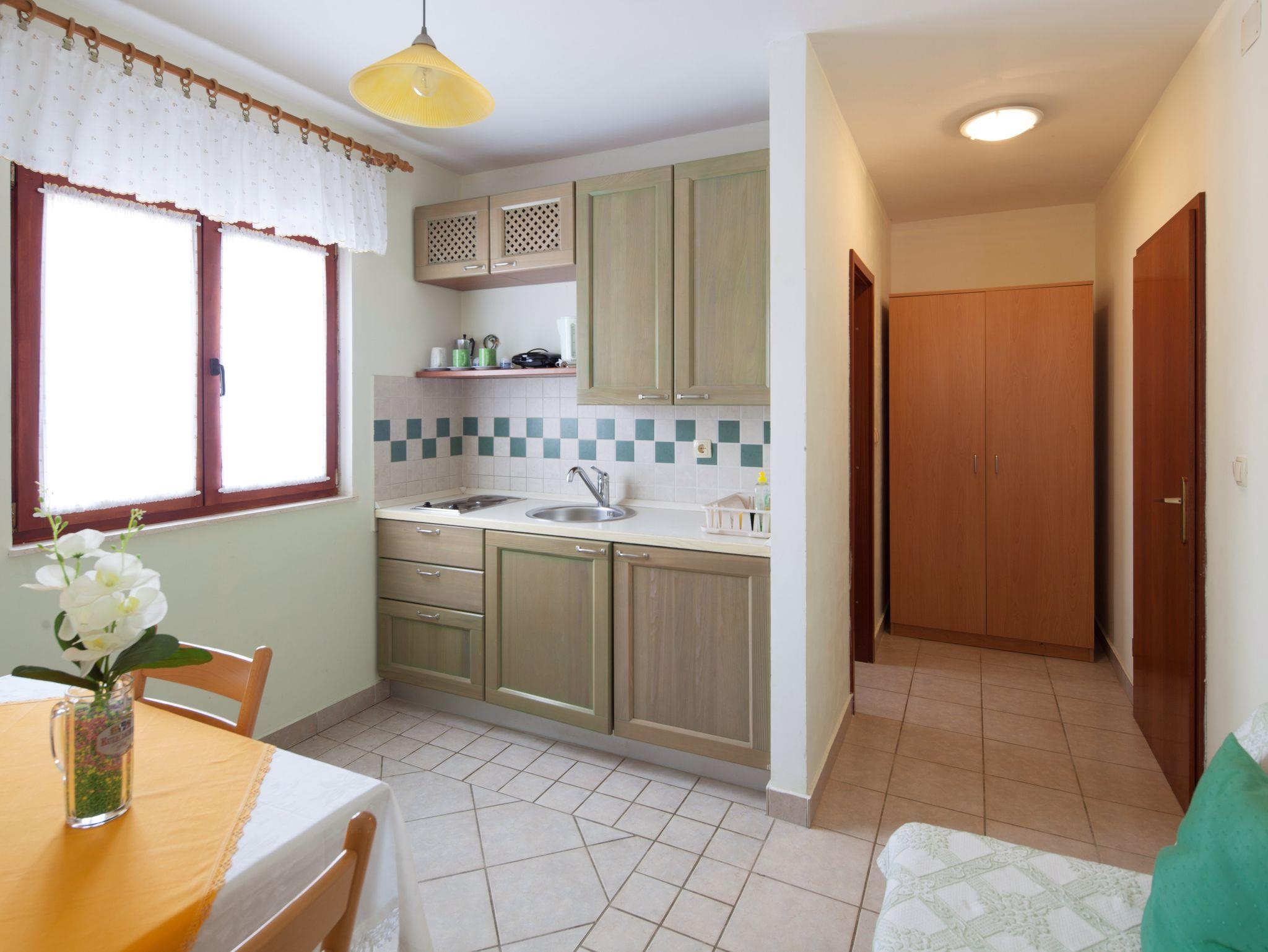 Ferienwohnung bietet Platz für 3 Gäste. Die Betten sind in Schlafzimmern, die es 1 gibt, und in Esszimmer, innerhalb einer Gesamtfläche von 26m2, angeordnet. Die Gäste haben eine eigene Terrasse zur Verfügung, auf der sie in warmen Sommernächten genießen können. Das Apartment bietet Meerblick. Es ist erlaubt, Speisen auf dem Gemeinschafts-Grill vorzubereiten. In der Unterkunftseinheit besteht die Möglichkeit des Mitbringens von Haustieren gegen Aufpreis. IM PREIS INBEGRIFFEN: Kurtaxe, Endreinigung, Parkplatz, Garage, Internet, Kinderbett, Bügeleisen, Bügelbrett, Föhn, Liegestühle. VERBINDLICHE ZUSÄTZLICHE KOSTEN: Aufzahlung für Kurzaufenthalte (prozentualer Zuschlag pro Nächtigungsanzahl: 30% - 1, 20% - 2, 10% - 3). UNVERBINDLICHE ZUSÄTZLICHE KOSTEN: Frühstück (10,00 €, 50% Nachlass für Kinder zwischen 4 und 12 Jahren, Kinder bis 4 Jahre sind frei.), Klimatisierung (7,00 € pro Nacht), Wäschewaschen (5,00 € Waschen), Haustiere (7,00 € pro Nacht). Die Verfügbarkeit zusätzlicher Dienstleistungen in Ihrem reservierten Termin und die Preise derselben (falls nicht aufgeführt) müssen im Voraus überprüft werden. Zusätzliche Dienstleistungen die in der Zahlungsaufforderung nicht aufgeführt sind werden direkt beim Vermieter bezahlt, angenommen der Gast nutzt auch diese.