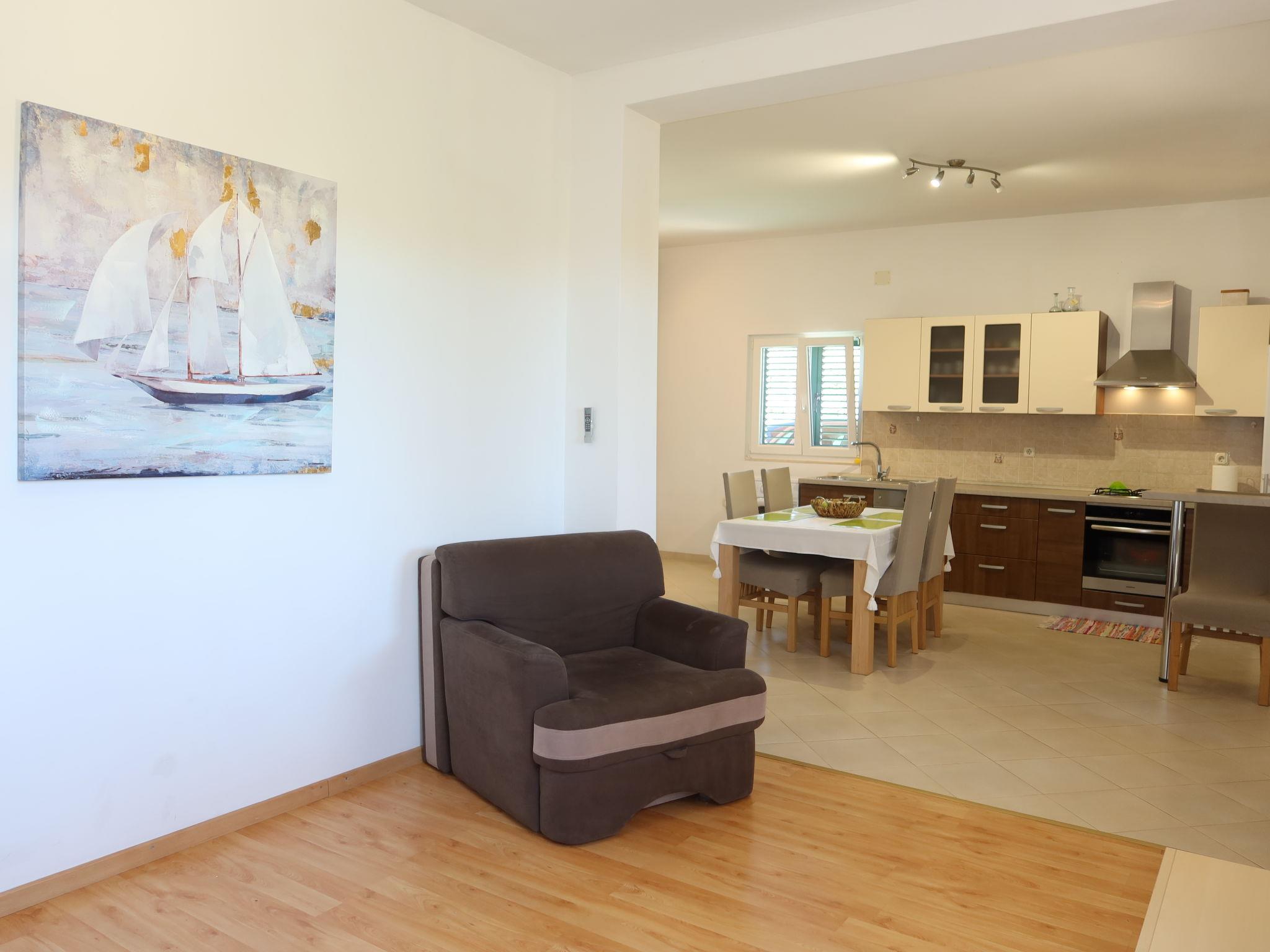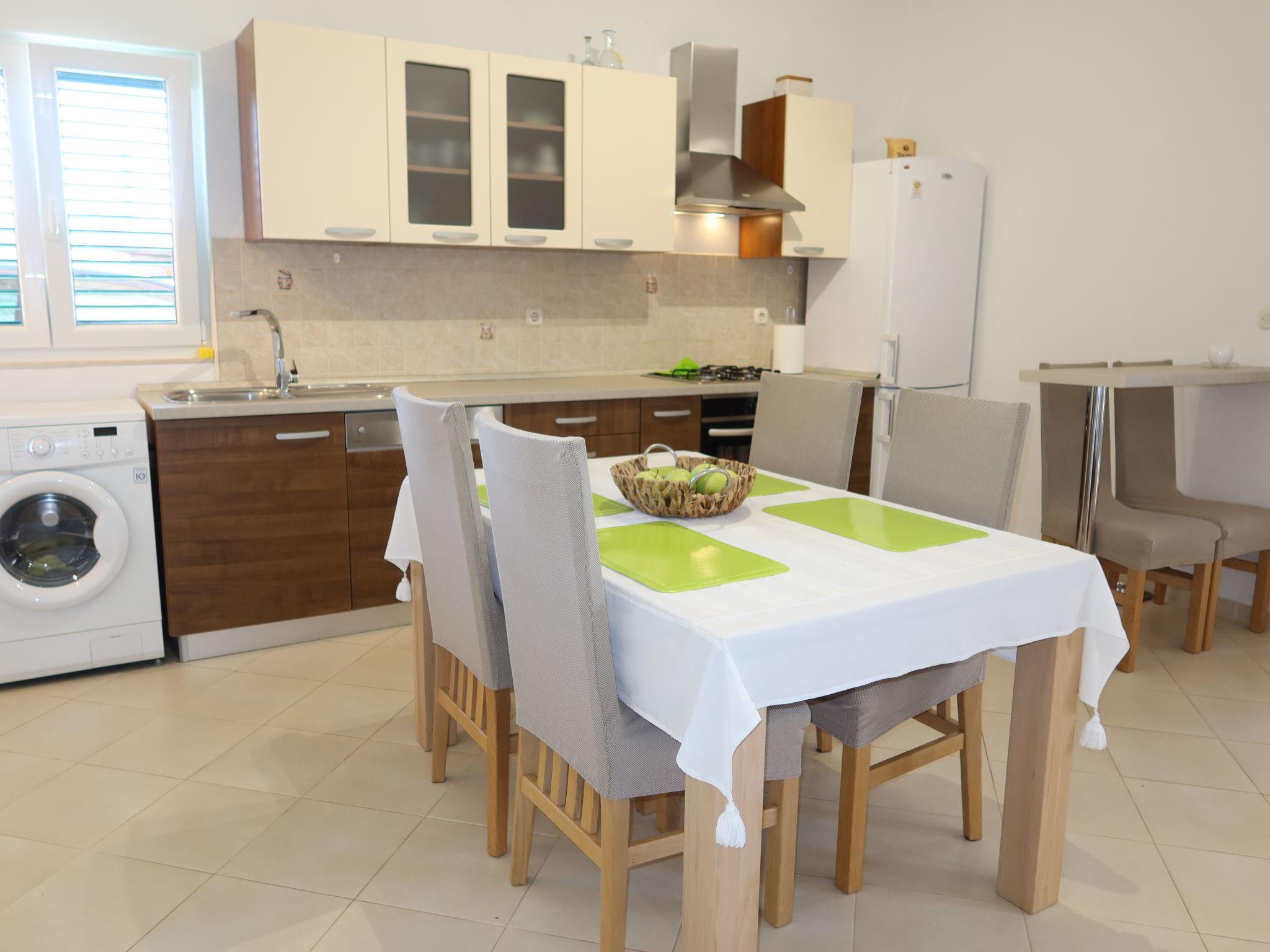 Single-family house "Lorenzo". 200 m from the centre of Privlaka, in a sunny position, 150 m from the sea, 150 m from the beach. Private: property 800 m2 (fenced), garden with lawn. Outdoor shower, garden furniture. In the house: internet access, washing machine. Parking (for 2 cars) at the house on the premises. Shop, restaurant 100 m, bus stop 4.7 km, sandy beach, pebble beach, rocky beach 150 m.