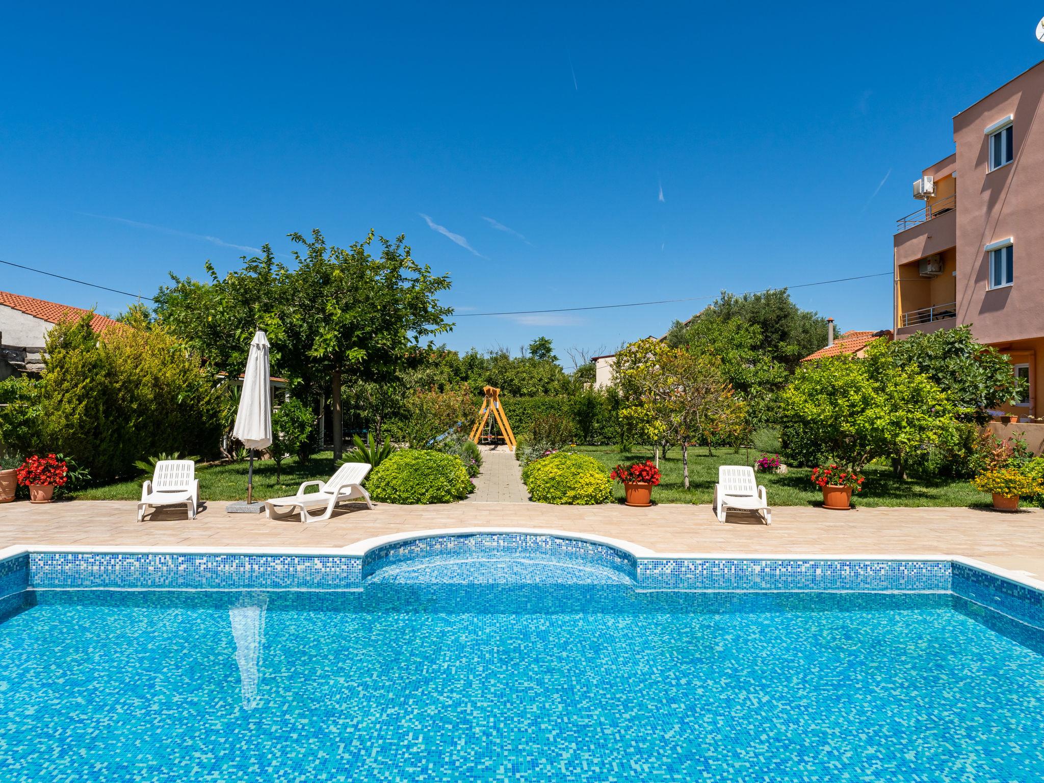 Apartment block "Bonex". In the resort, in a sunny position, 85 m from the sea, 85 m from the beach. For shared use: property 1'000 m2 (fenced) with lawn and plants, swimming pool (10 x 5 m, depth 150 cm, seasonal availability: 01.Apr. - 28.Oct.) with internal staircase. Outdoor shower, arbour, garden furniture, barbecue (slide, swing). In the house: reception, internet access, trampoline. Parking at the house on the premises. Shop 50 m, restaurant 600 m, bus stop 4.2 km, sandy beach, pebble beach 85 m. Tennis 10 km. Please note: Additional accommodations can be booked.