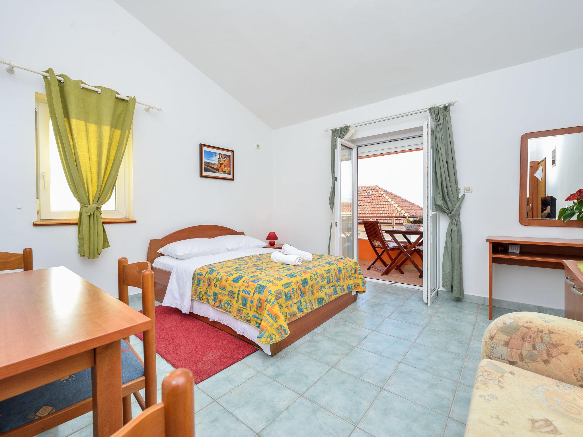 1-room apartment 24 m2 on 1st floor, north-west facing position. Studio with 1 sofabed (90 cm, length 200 cm), 1 french bed (140 cm, length 200 cm), satellite TV. Exit to the balcony. Open kitchen (2 hot plates, kettle, microwave). Shower/WC. No heating option. Balcony 5 m2. Balcony furniture. Facilities: Internet (WiFi, free).