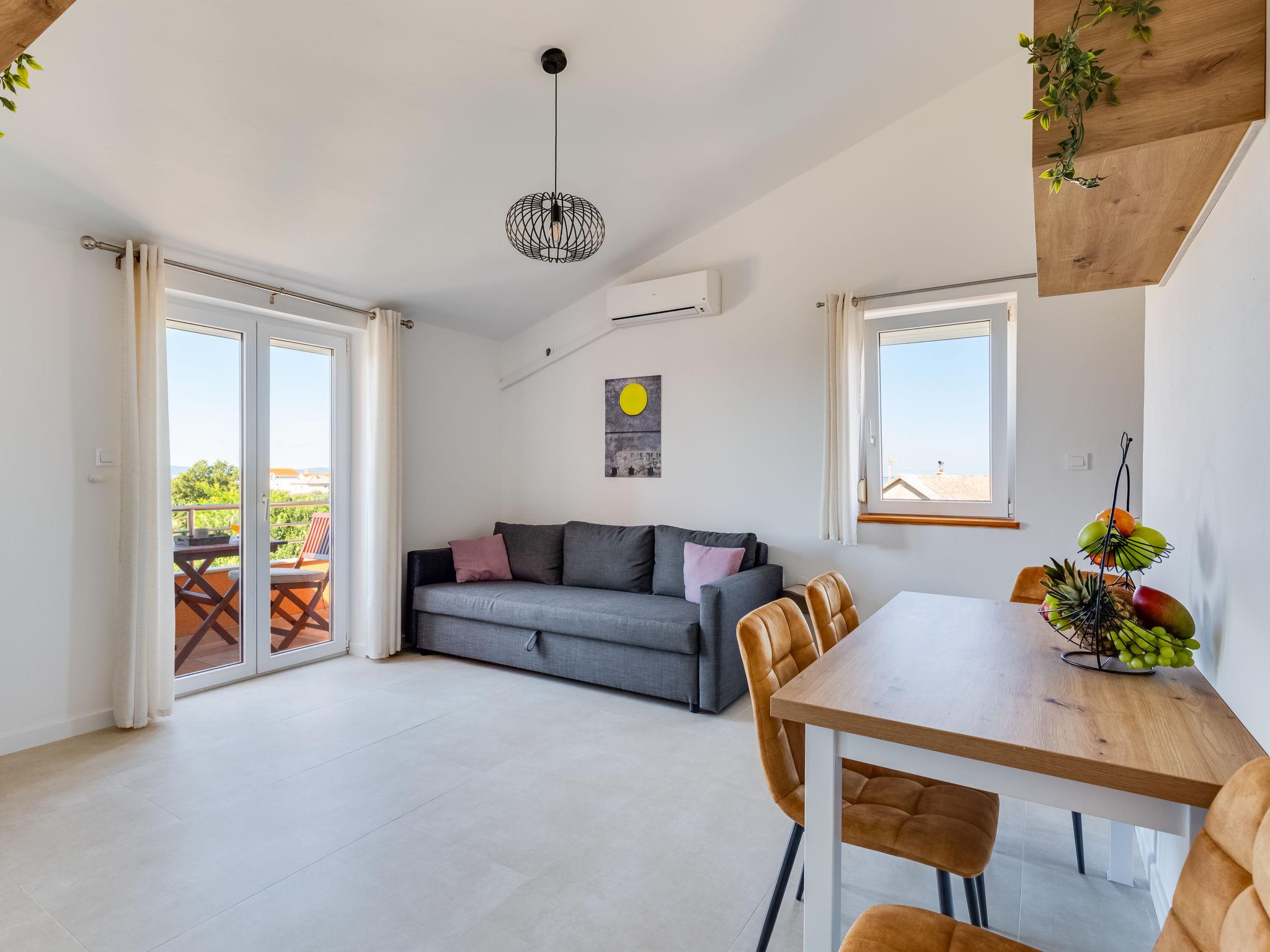 2-room apartment 35 m2 on 1st floor, south-west facing position. Living/dining room with 1 double sofabed (160 cm, length 200 cm), satellite TV and air conditioning. Exit to the balcony. 1 room with 1 double bed (2 x 80 cm, length 200 cm). Open kitchen (2 hot plates, kettle, microwave). Shower/WC. No heating option. Balcony 3 m2. Balcony furniture. View of the swimming pool. Facilities: Internet (WiFi, free).