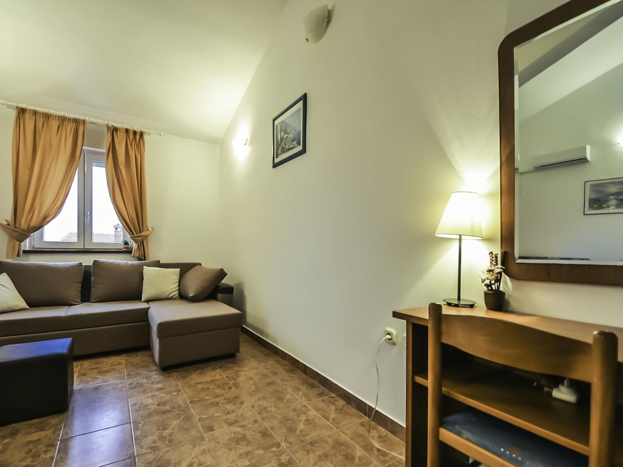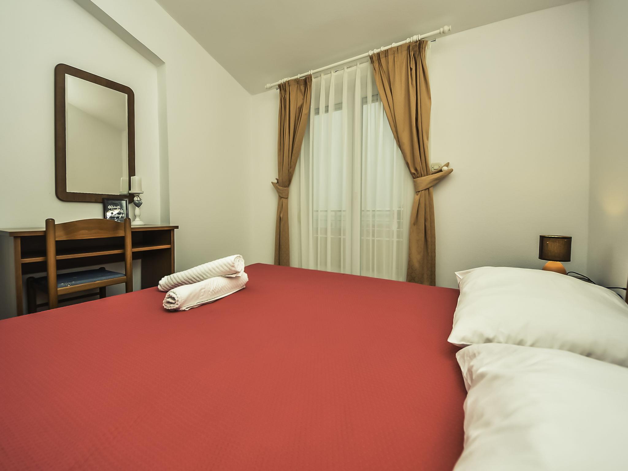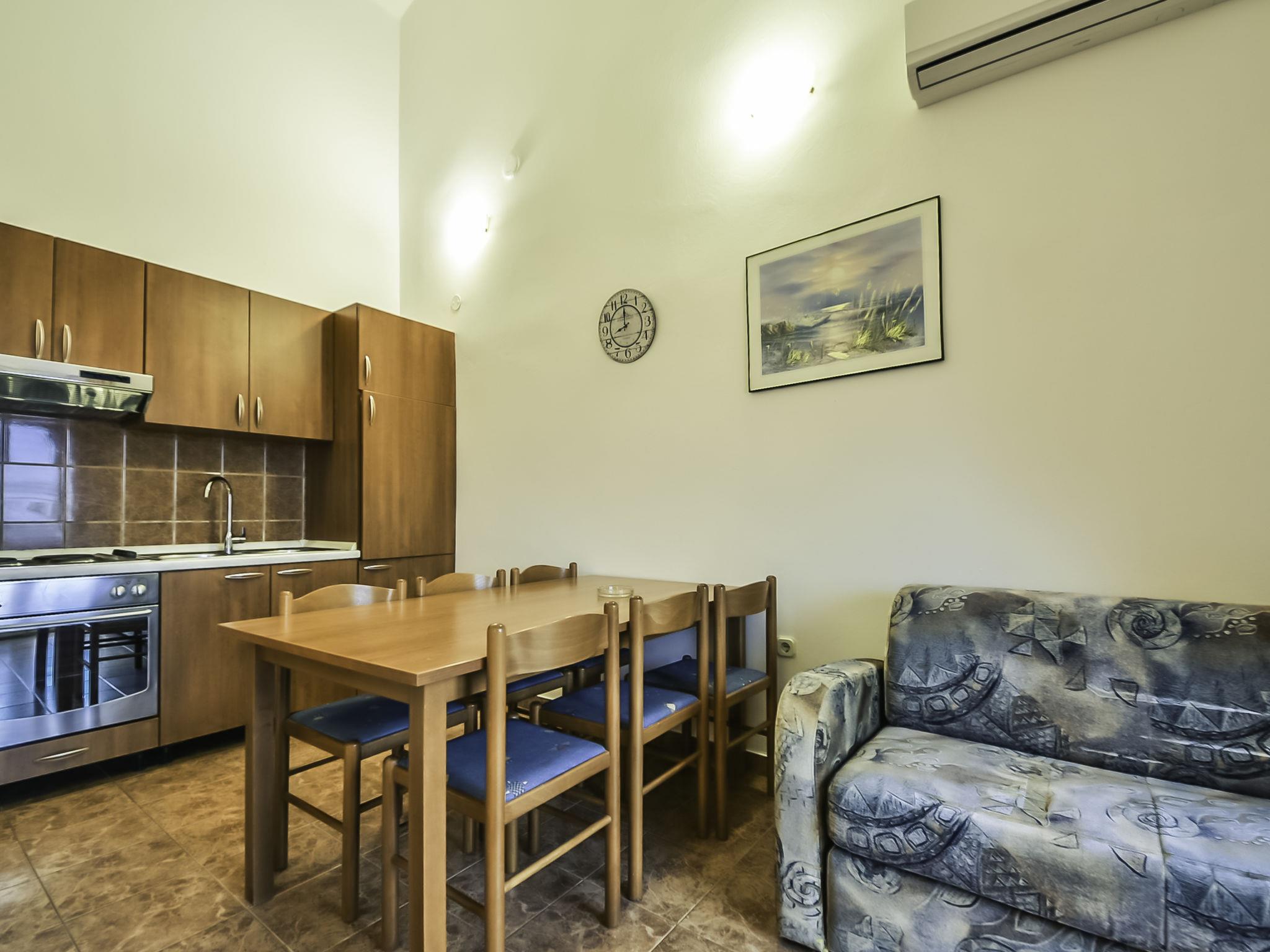 2-room apartment 41 m2 on 2nd floor, south-west facing position. Living/dining room with 1 double sofabed (140 cm, length 200 cm), satellite TV and air conditioning. Exit to the balcony. 1 room with 1 double bed (2 x 80 cm, length 200 cm). Exit to the balcony. Open kitchen (4 hot plates, oven, kettle, microwave). Shower/WC. No heating option. 2 balconies 4 m2. Balcony furniture. Facilities: Internet (WiFi, free).
