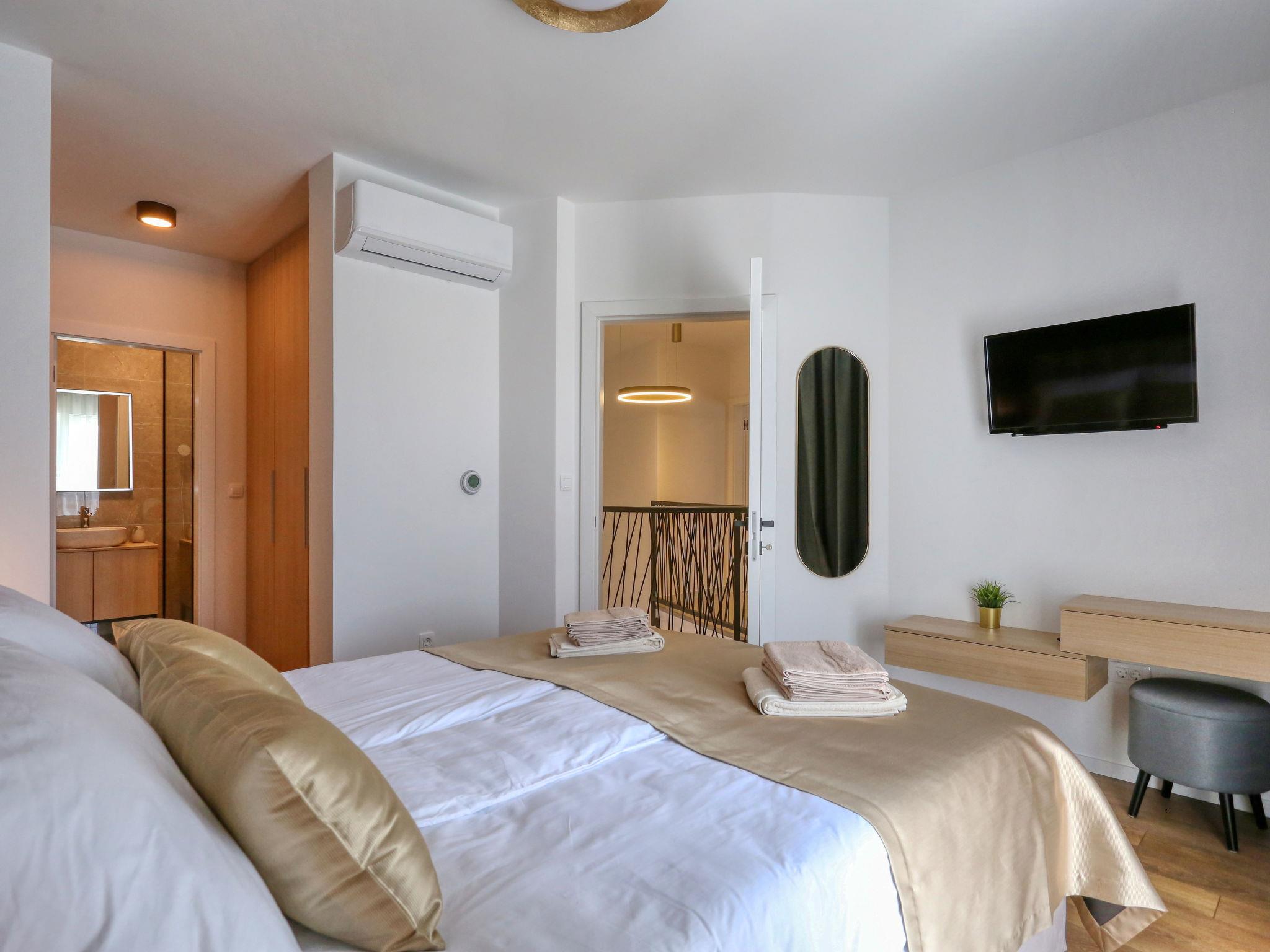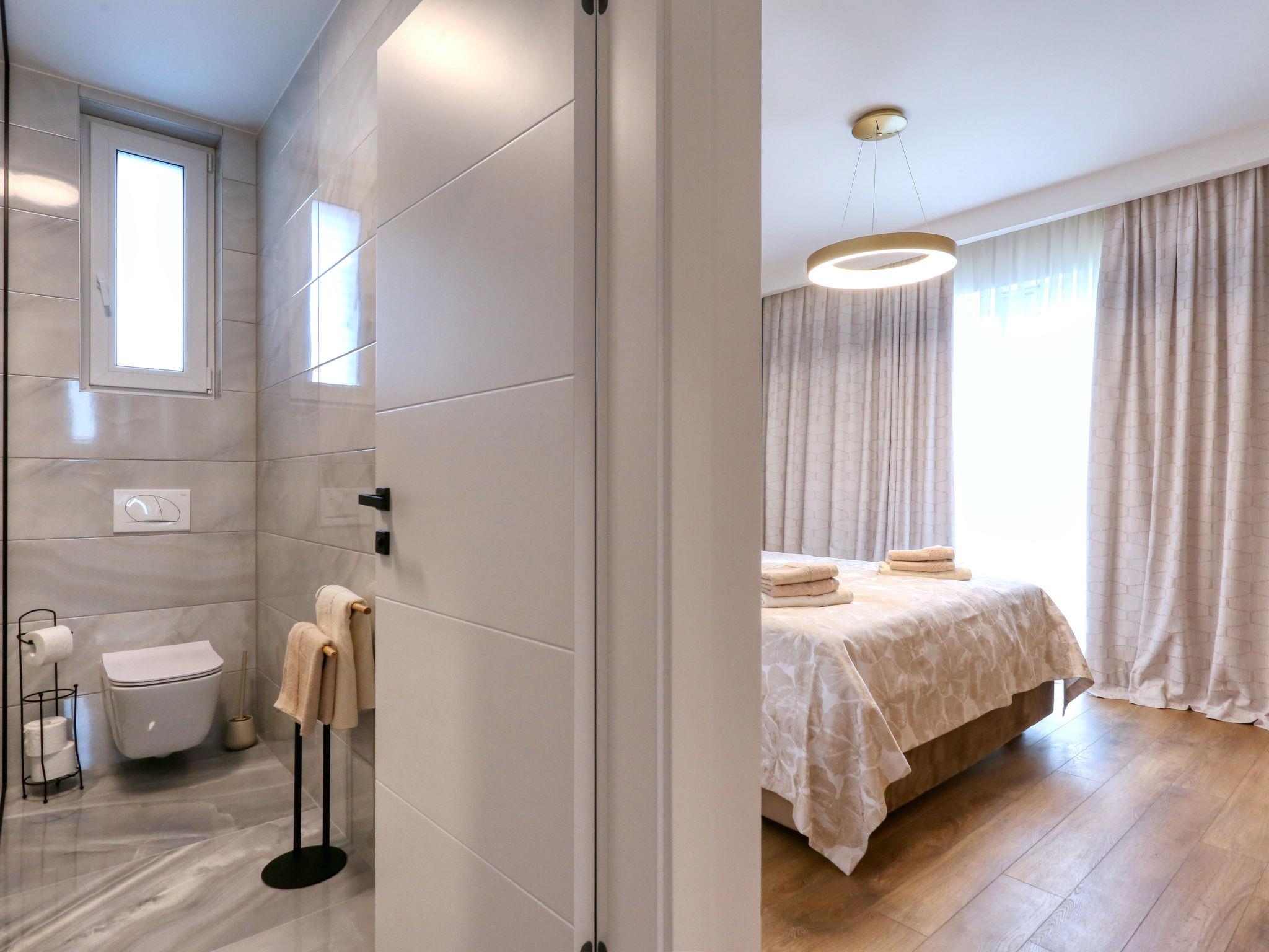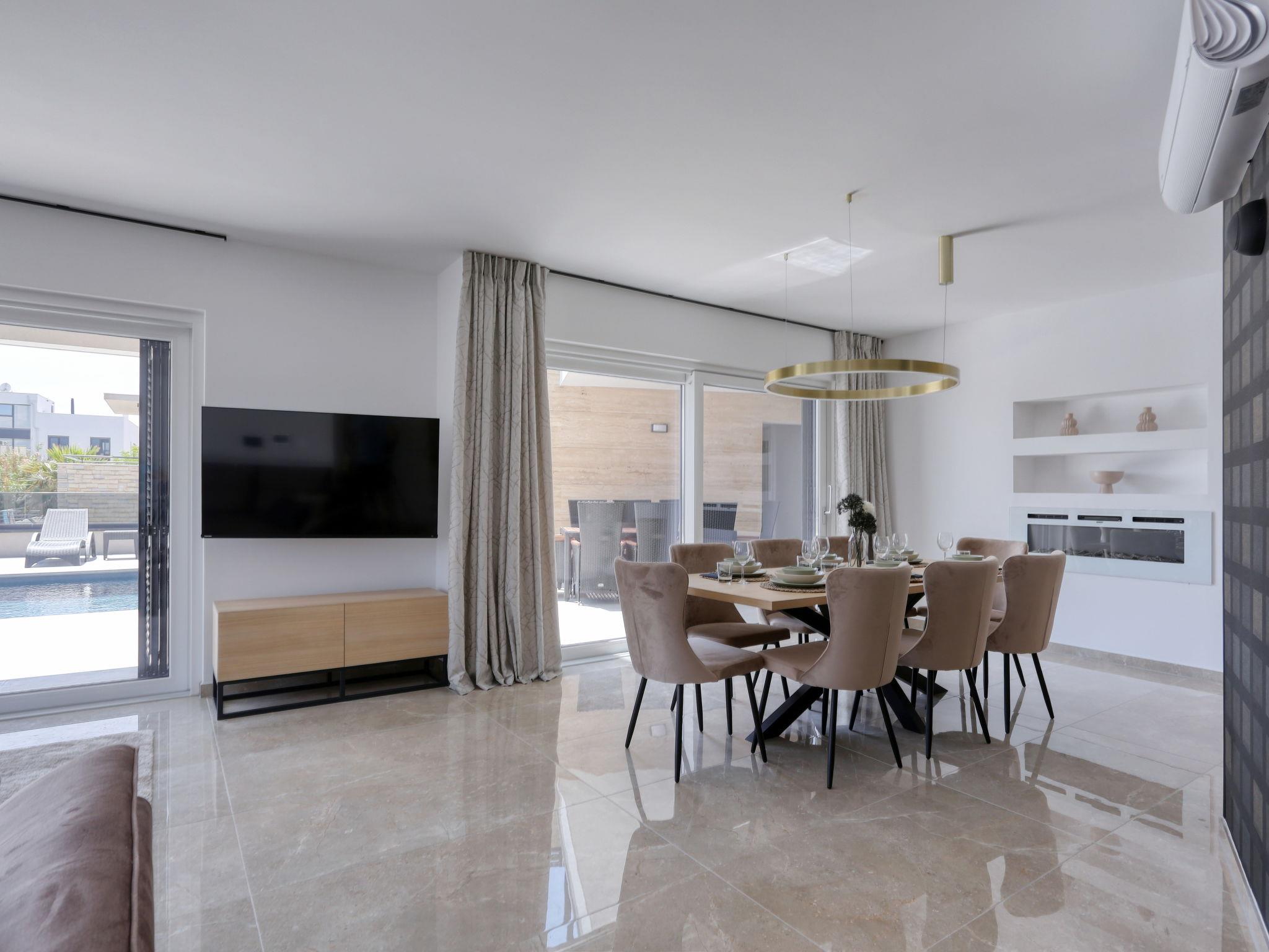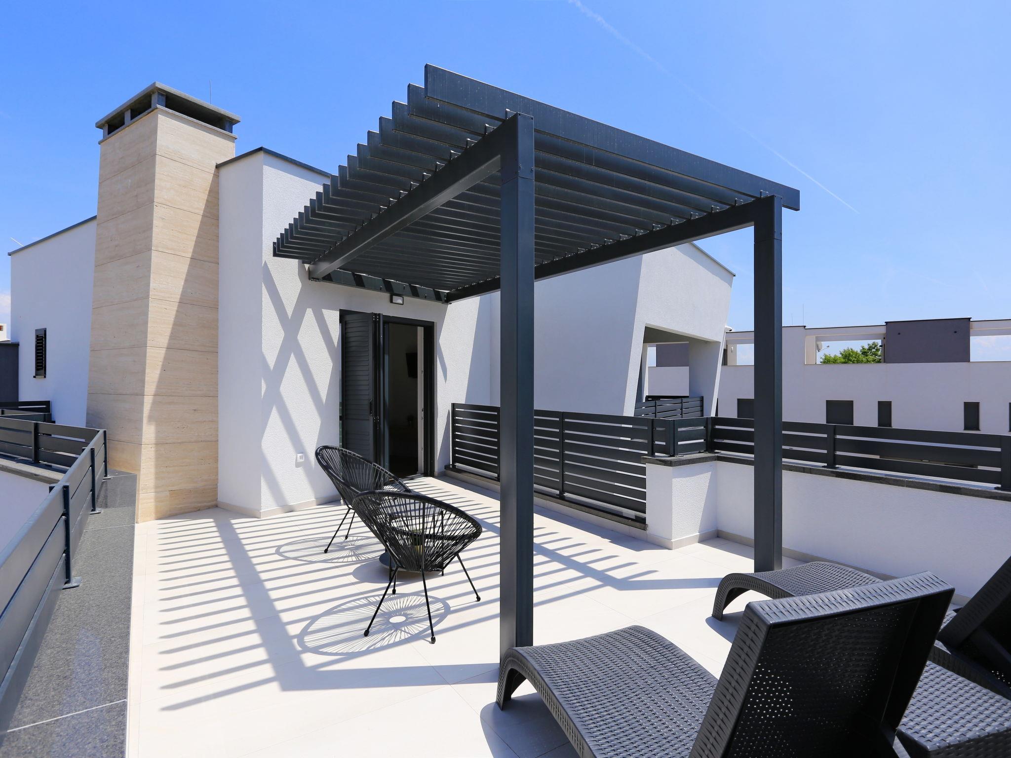Modern single-family house "Villa Petra", 4 storeys, built in 2023. In the district of Mletak 3 km from the centre of Privlaka, in a sunny position, 170 m from the sea, 200 m from the beach. Private: property 680 m2 (fenced) with trees, swimming pool angular, heated (30 m2, depth 150 cm, seasonal availability: 01.May. - 01.Oct.) with internal staircase. Outdoor shower, barbecue, pool maintenance by the owner/gardener. In the house: internet access, sauna, billiard table. Parking (for 2 cars) at the house on the premises. Shop 300 m, supermarket 2 km, restaurant 2 km, bus stop 3.3 km, pebble beach 200 m. The owner does not accept any groups. The owner does not accept any youth groups. Please note: airfield 33 km from the property. In the basement: wine cellar (extra, on request), billiard room.