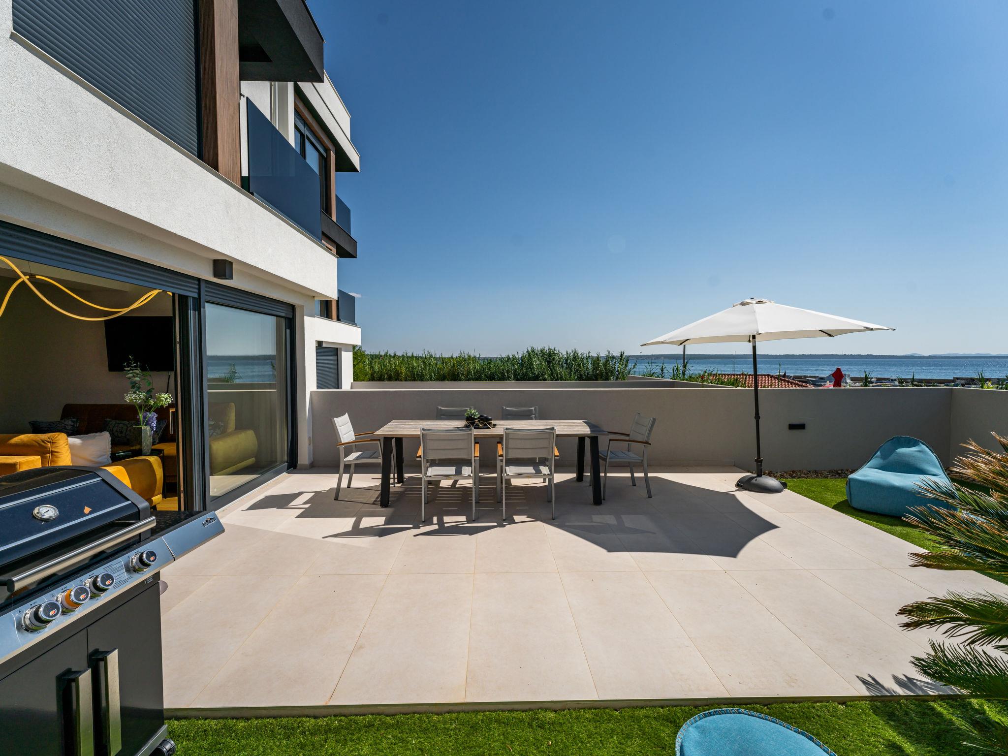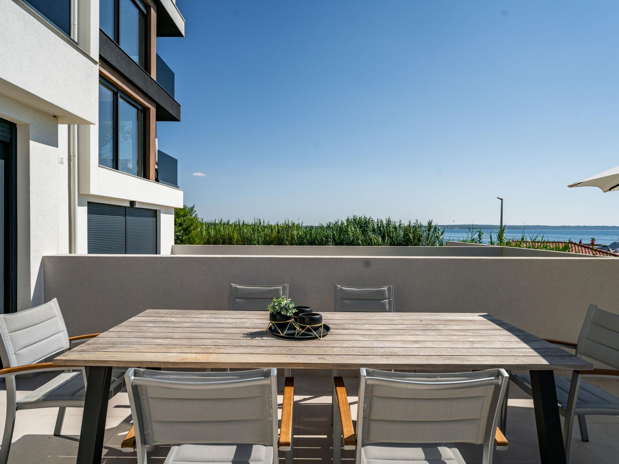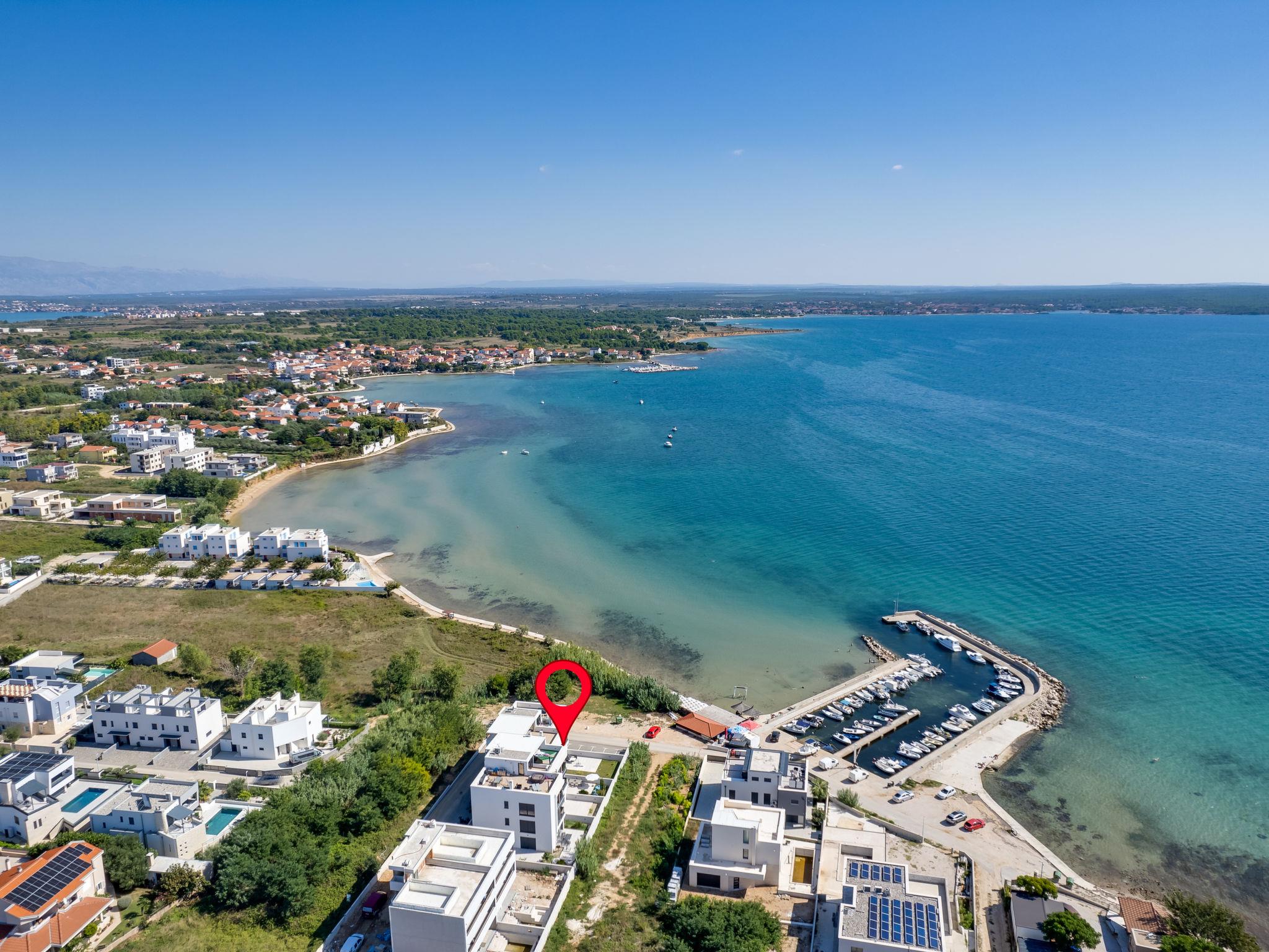 Modern, beautiful apartment block, built in 2022. In the district of Mletak 3 km from the centre of Privlaka, in a sunny position, 40 m from the sea, 50 m from the beach. In the house: internet access. Parking at the house. Shop 330 m, supermarket 2 km, restaurant 2 km, bar 40 m, bus stop 3.4 km, pebble beach 50 m. Please note: airfield 33 km from the property.
