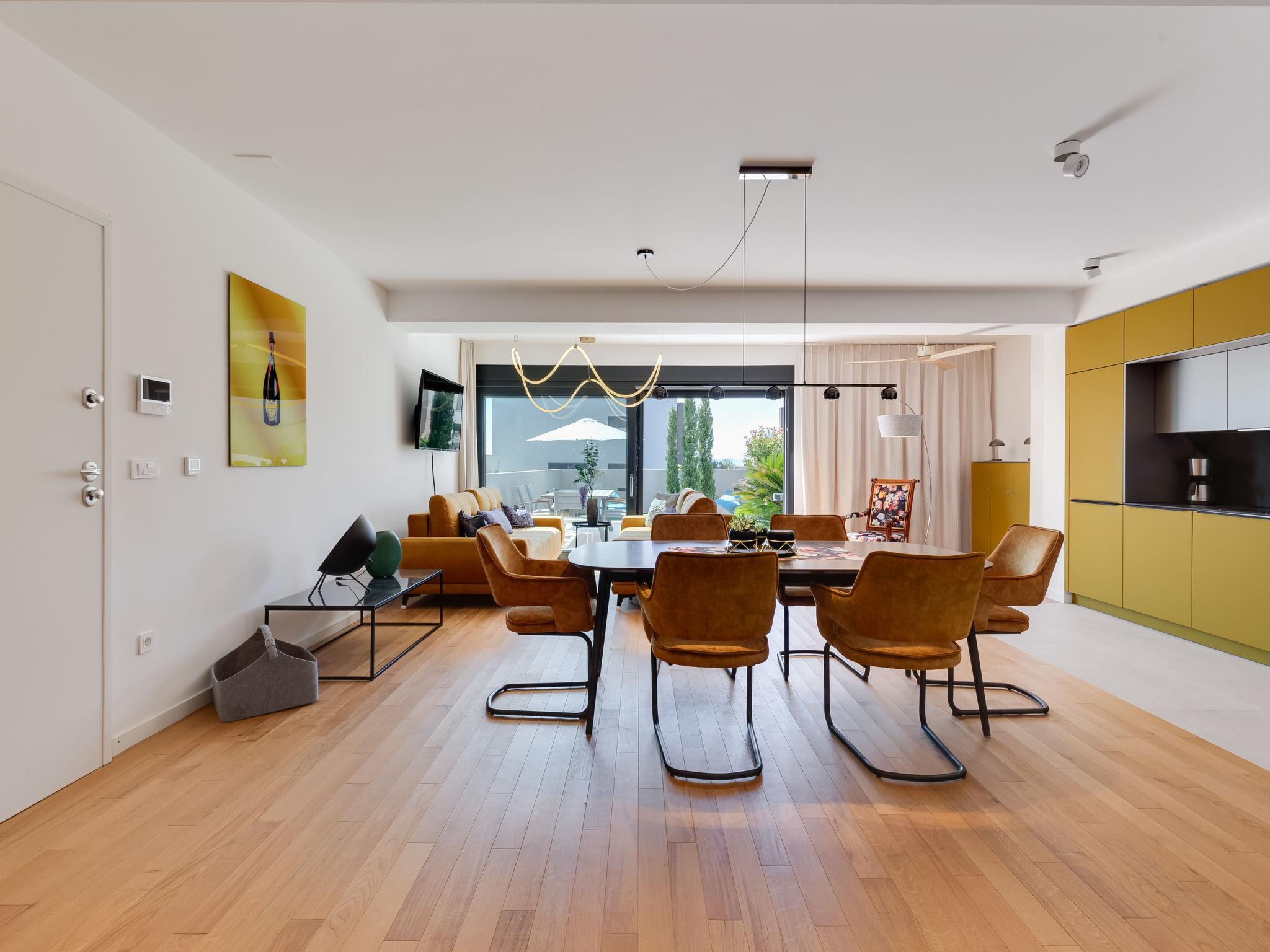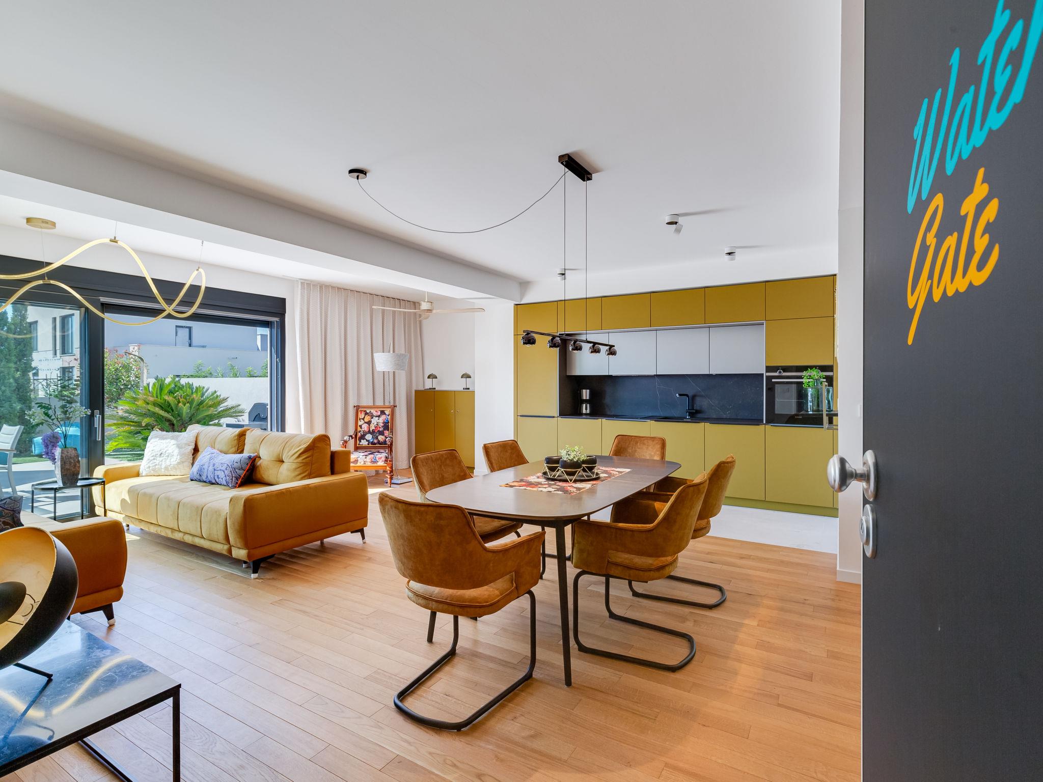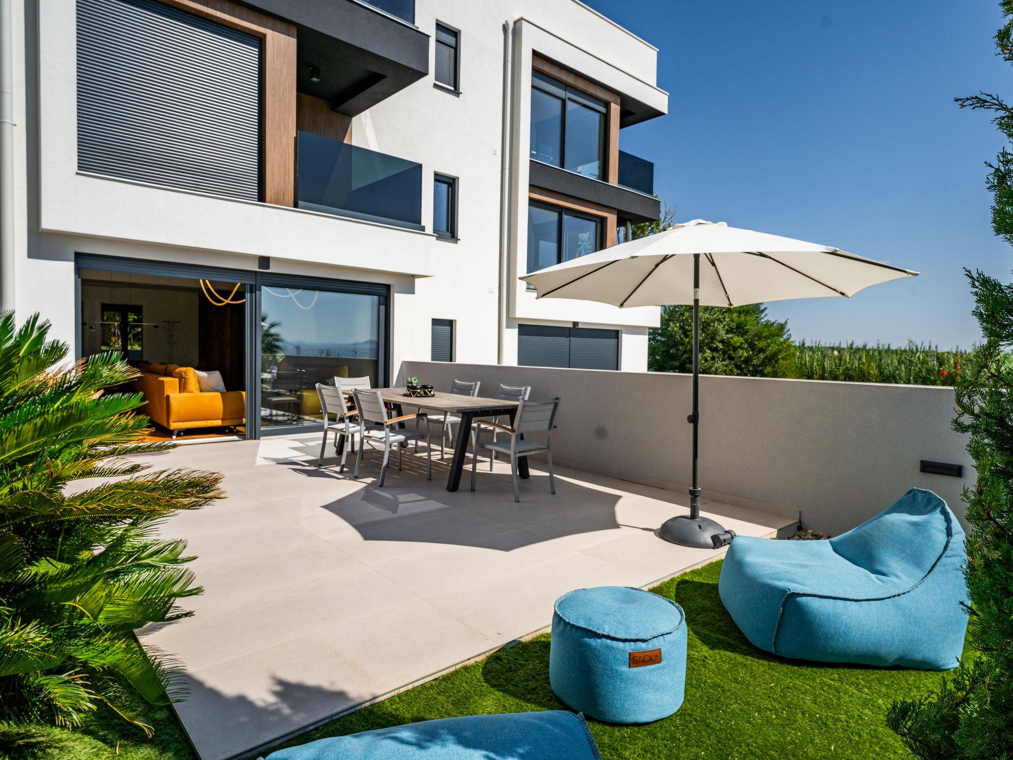 Modern, beautiful apartment block, built in 2022. In the district of Mletak 3 km from the centre of Privlaka, in a sunny position, 40 m from the sea, 50 m from the beach. In the house: internet access. Parking at the house. Shop 330 m, supermarket 2 km, restaurant 2 km, bar 40 m, bus stop 3.4 km, pebble beach 50 m. Please note: airfield 33 km from the property.