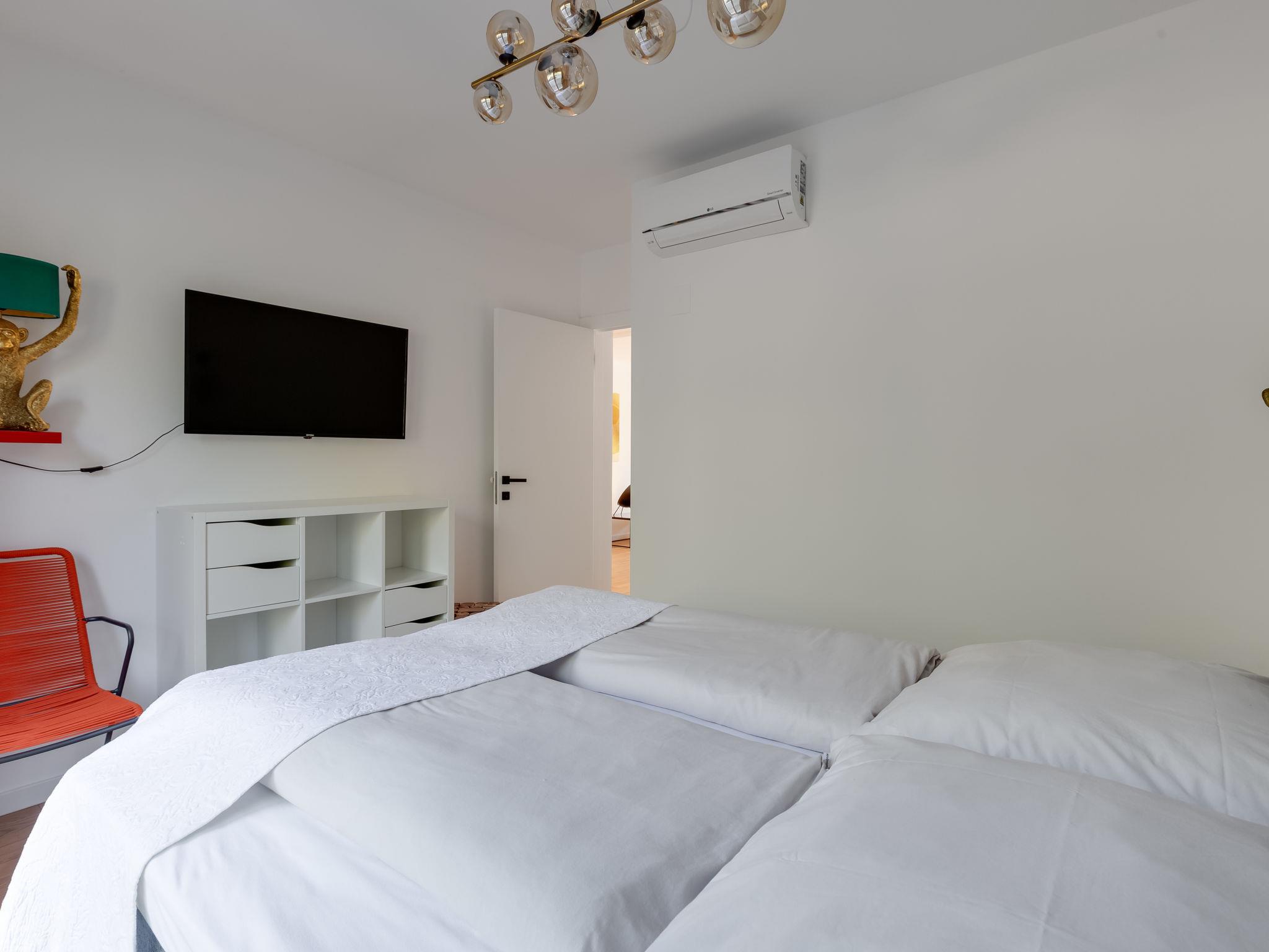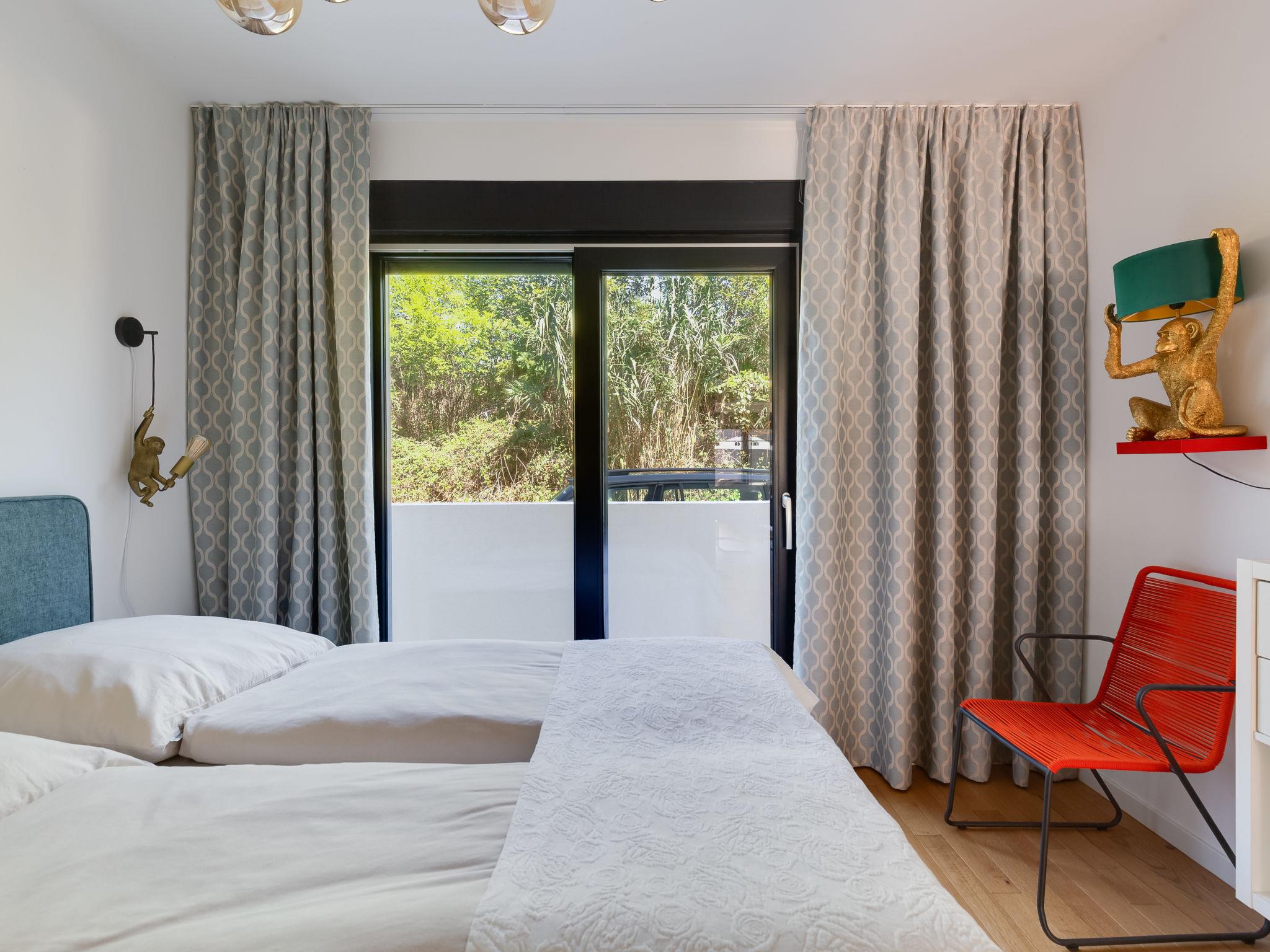 "Watergate", 3-room apartment 73 m2, on the ground floor. Very tasteful and stylish furnishings: living/dining room with 2 sofabeds (80 cm, length 190 cm), cable TV (flat screen), air conditioning, fan and electric shutters. Exit to the garden, to the terrace. 1 room with 1 french bed (160 cm, length 200 cm), cable TV (flat screen), air conditioning and electric shutters. 1 room with 1 french bed (180 cm, length 200 cm), cable TV (flat screen), air conditioning and electric shutters. Open kitchen (oven, dishwasher, 2 induction hot plates, toaster, kettle, freezer, electric coffee machine). Shower/WC. Forced-air heating. Terrace 26 m2, garden 40 m2. Terrace furniture, electric barbecue. View of the sea. Facilities: washing machine. Internet (WiFi, free). Parking space n 2. Please note: non-smokers only.