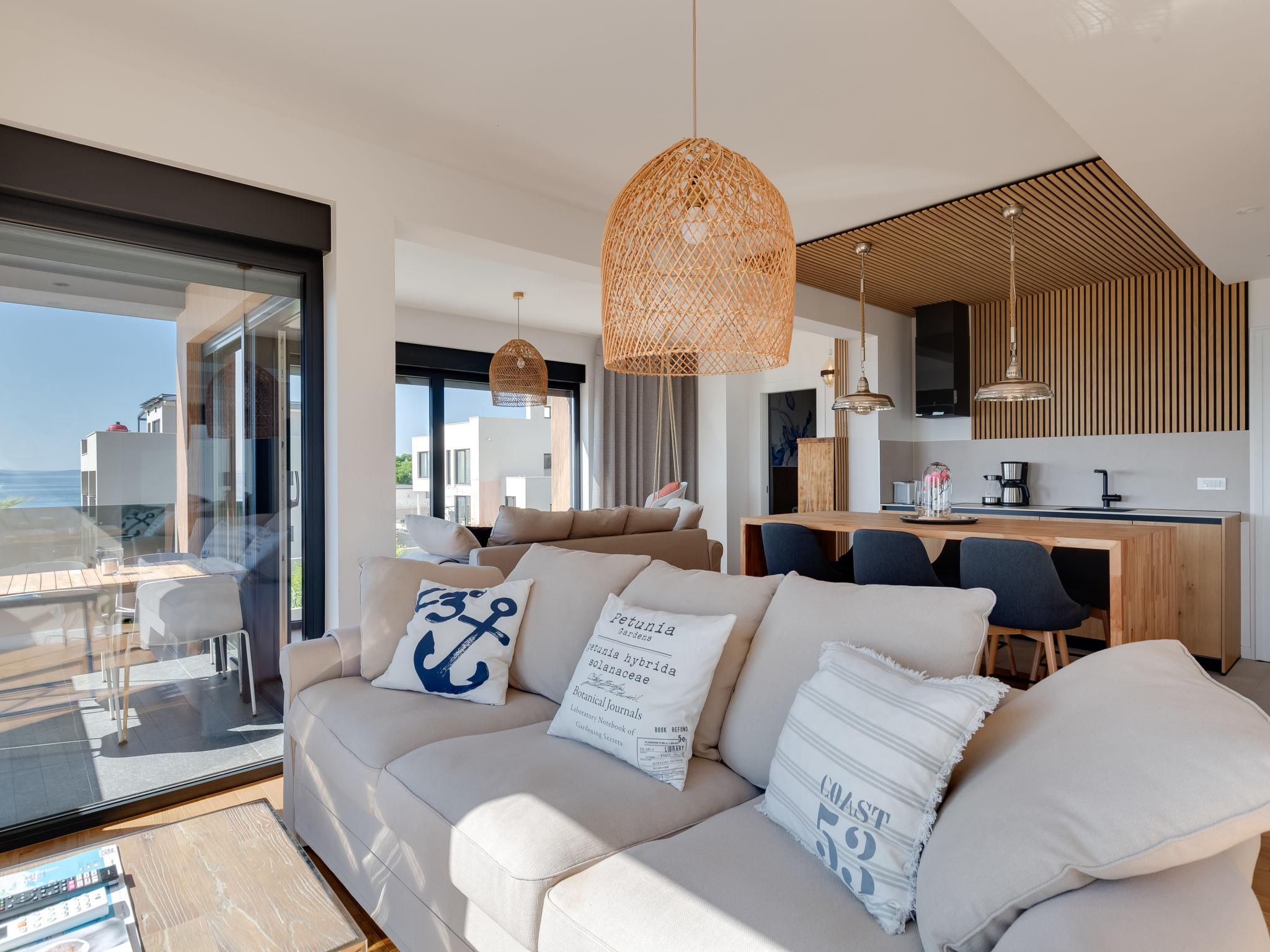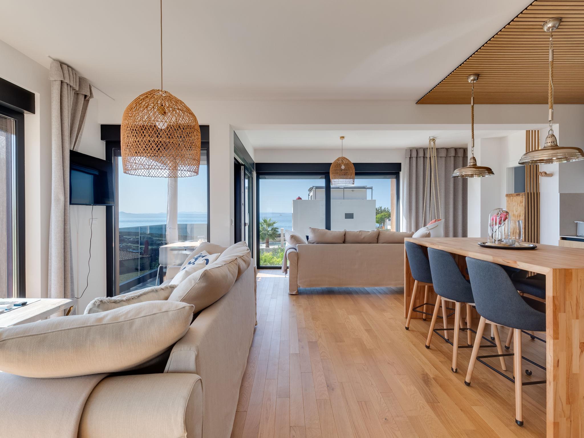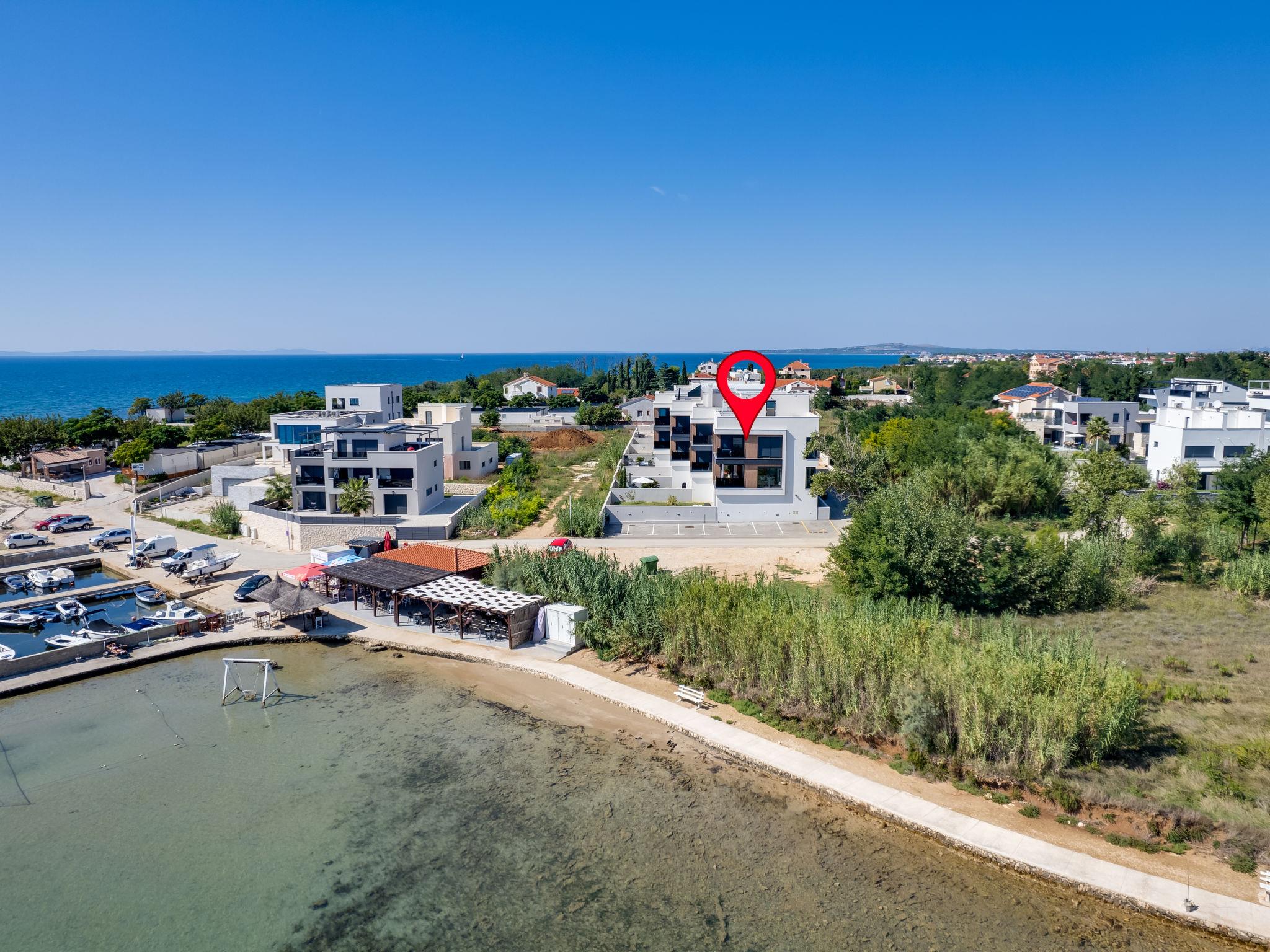 Modern apartment block, built in 2022. In the district of Mletak 3 km from the centre of Privlaka, in a sunny position, 40 m from the sea, 50 m from the beach. In the house: internet access. Parking at the house. Shop 330 m, supermarket 2 km, restaurant 2 km, bar 40 m, bus stop 3.4 km, pebble beach 50 m. Please note: airfield 33 km from the property.