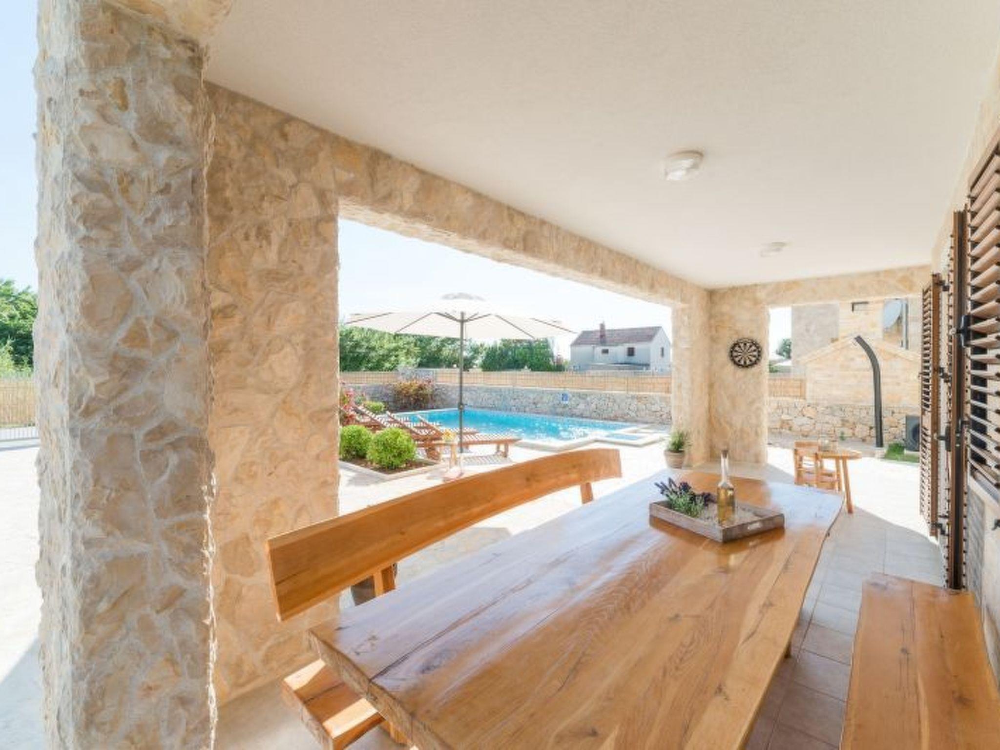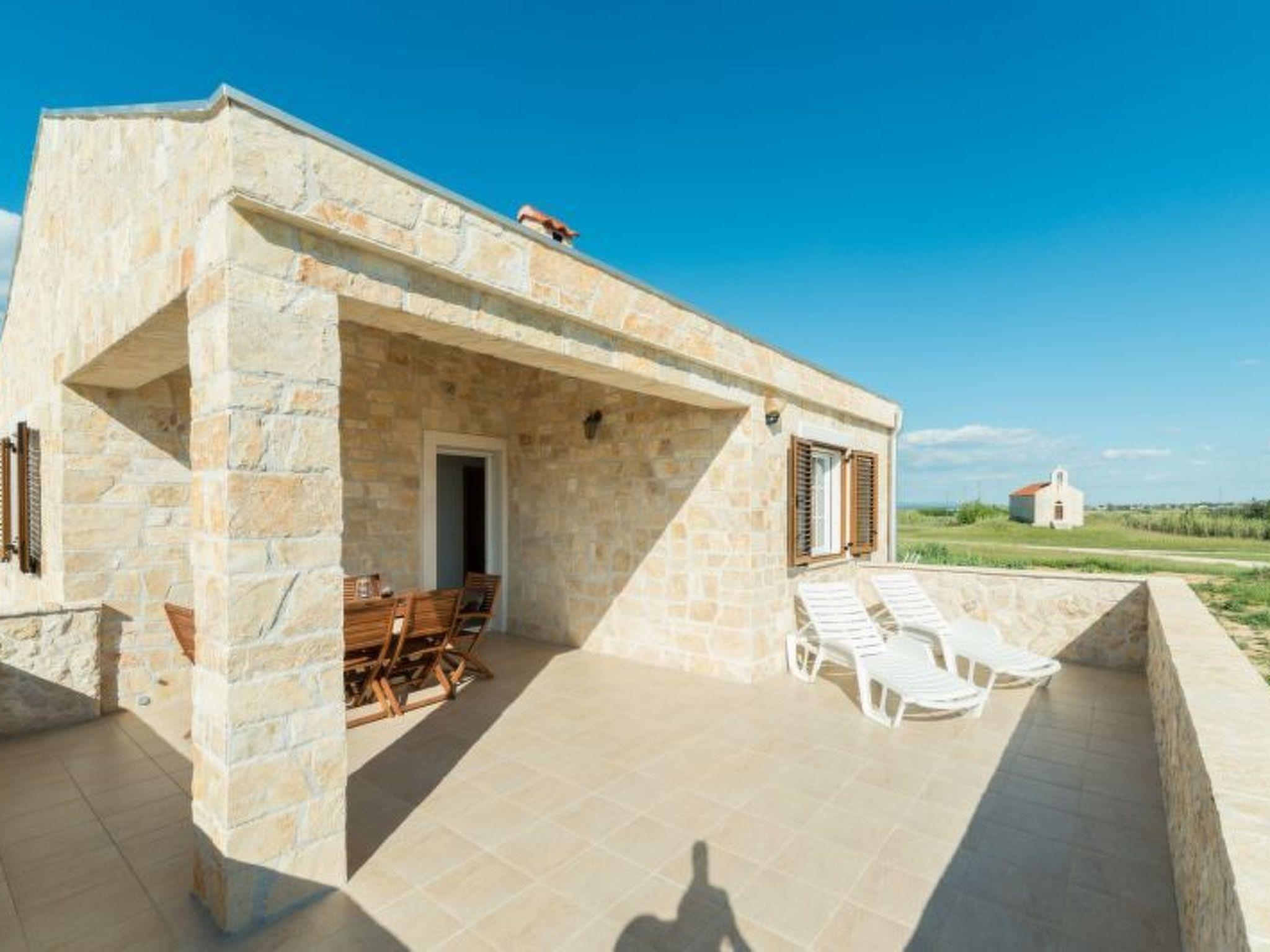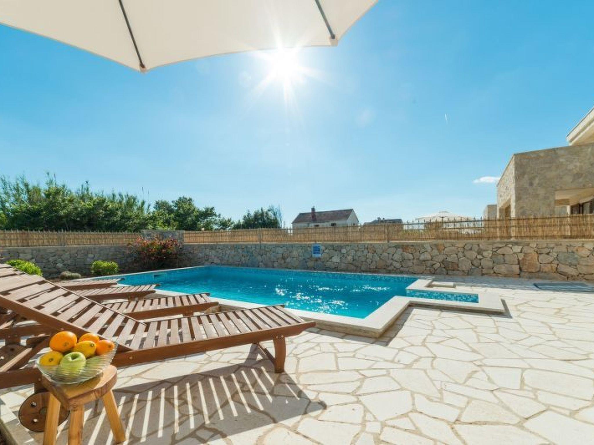 Distance from the town center is 1 km, from the historical town of Nin 4 km, from the holiday village Zaton 5 km and 20 km away from Zadar. The villa has a private swimming pool in the garden with deck chairs.