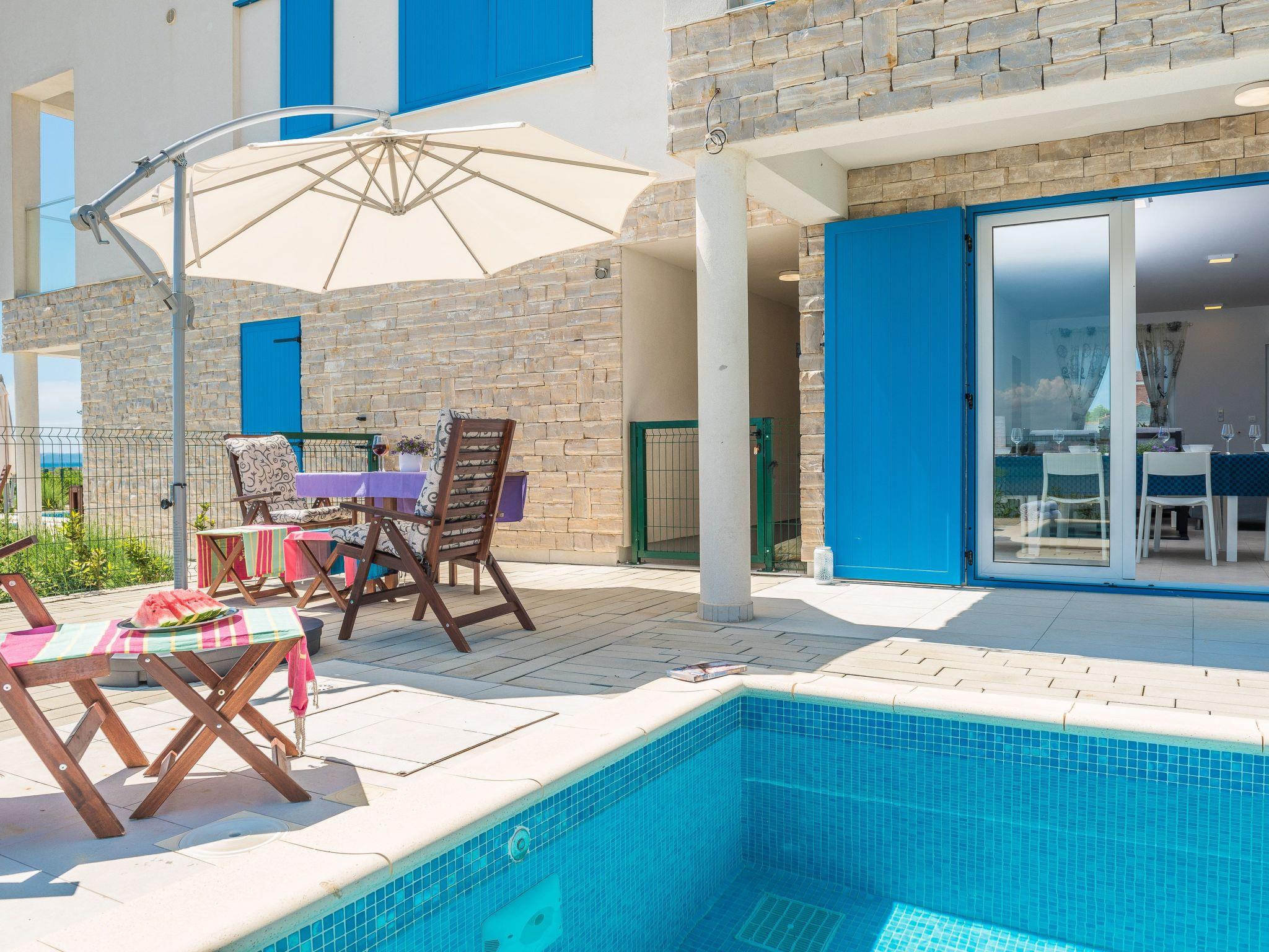 This top modern holiday villa enjoys a lovely location in the seaside town of Privlaka: it sits just a few metres from one of the best sandy beaches on the coast and overlooks the sea and features panoramic views of the islands.