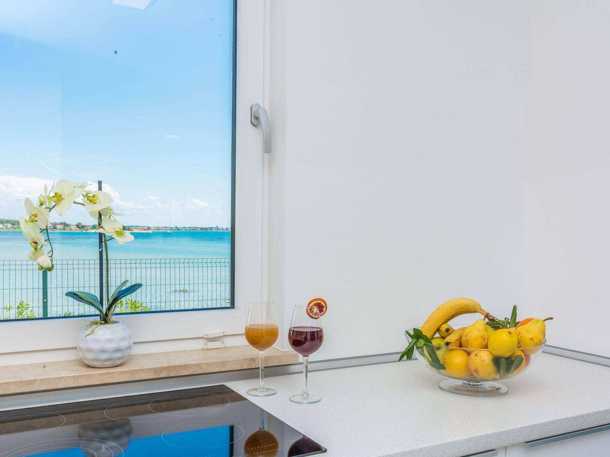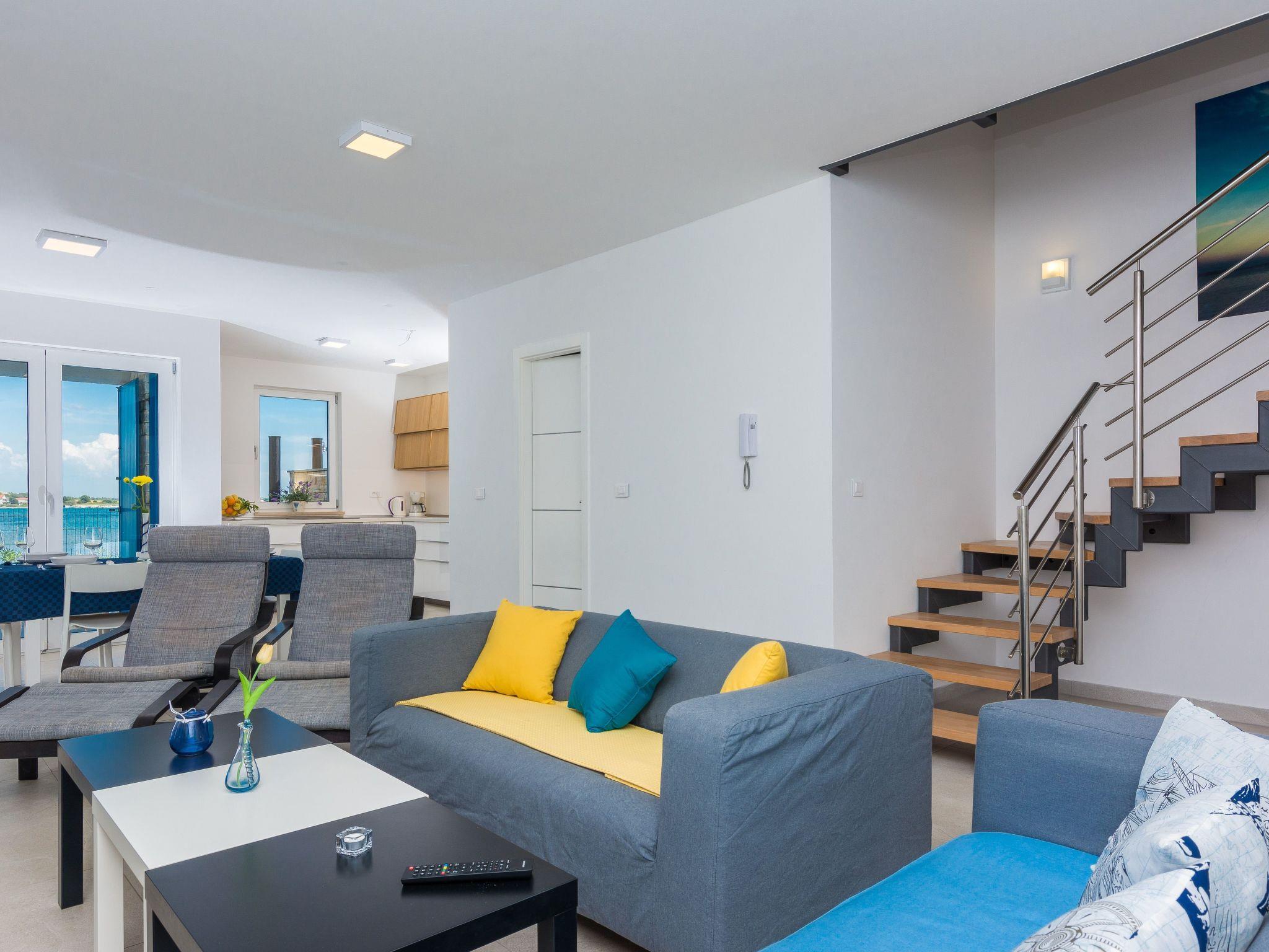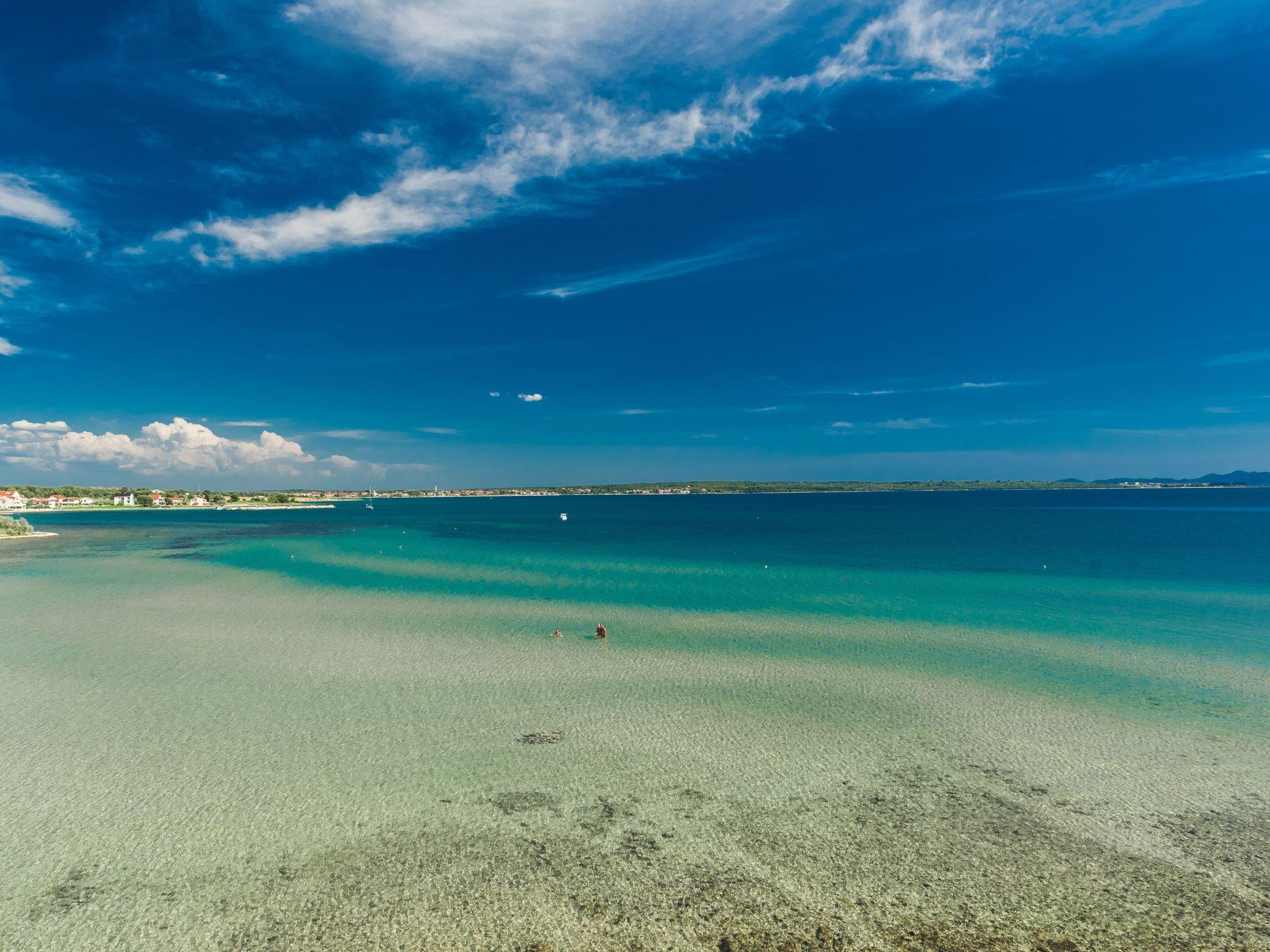 This top modern holiday villa enjoys a lovely location in the seaside town of Privlaka: it sits just a few metres from one of the best sandy beaches on the coast and overlooks the sea and features panoramic views of the islands.