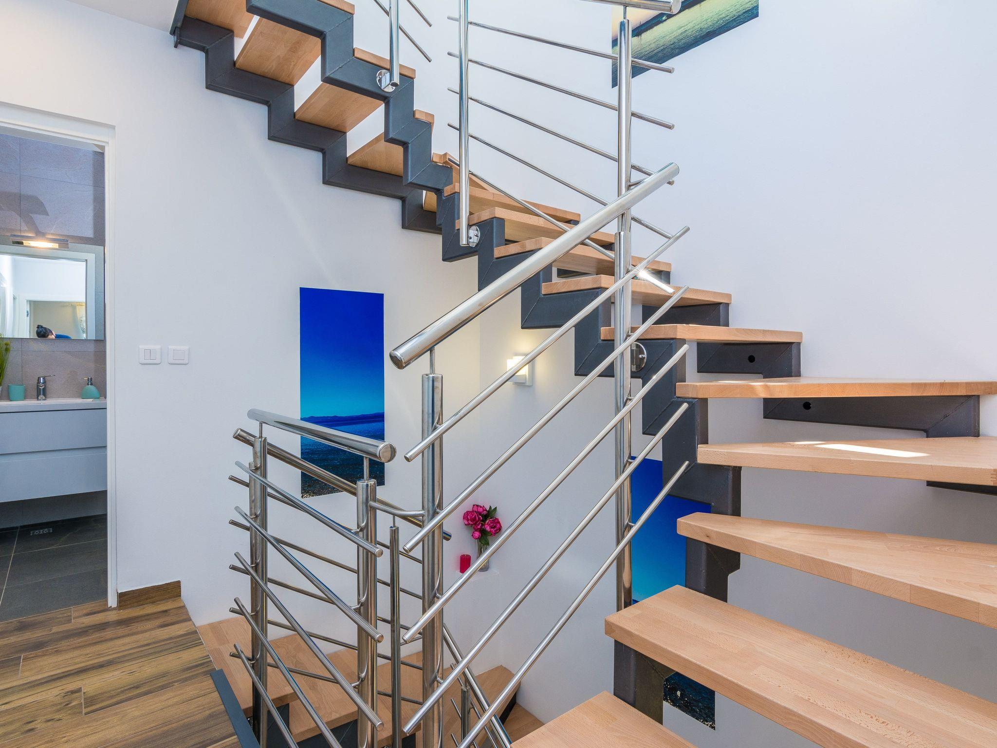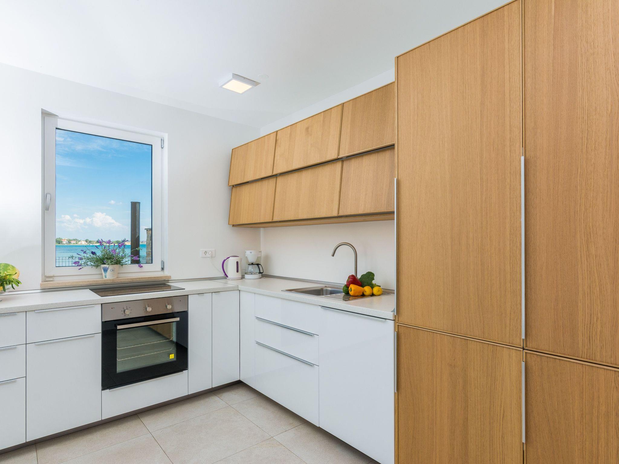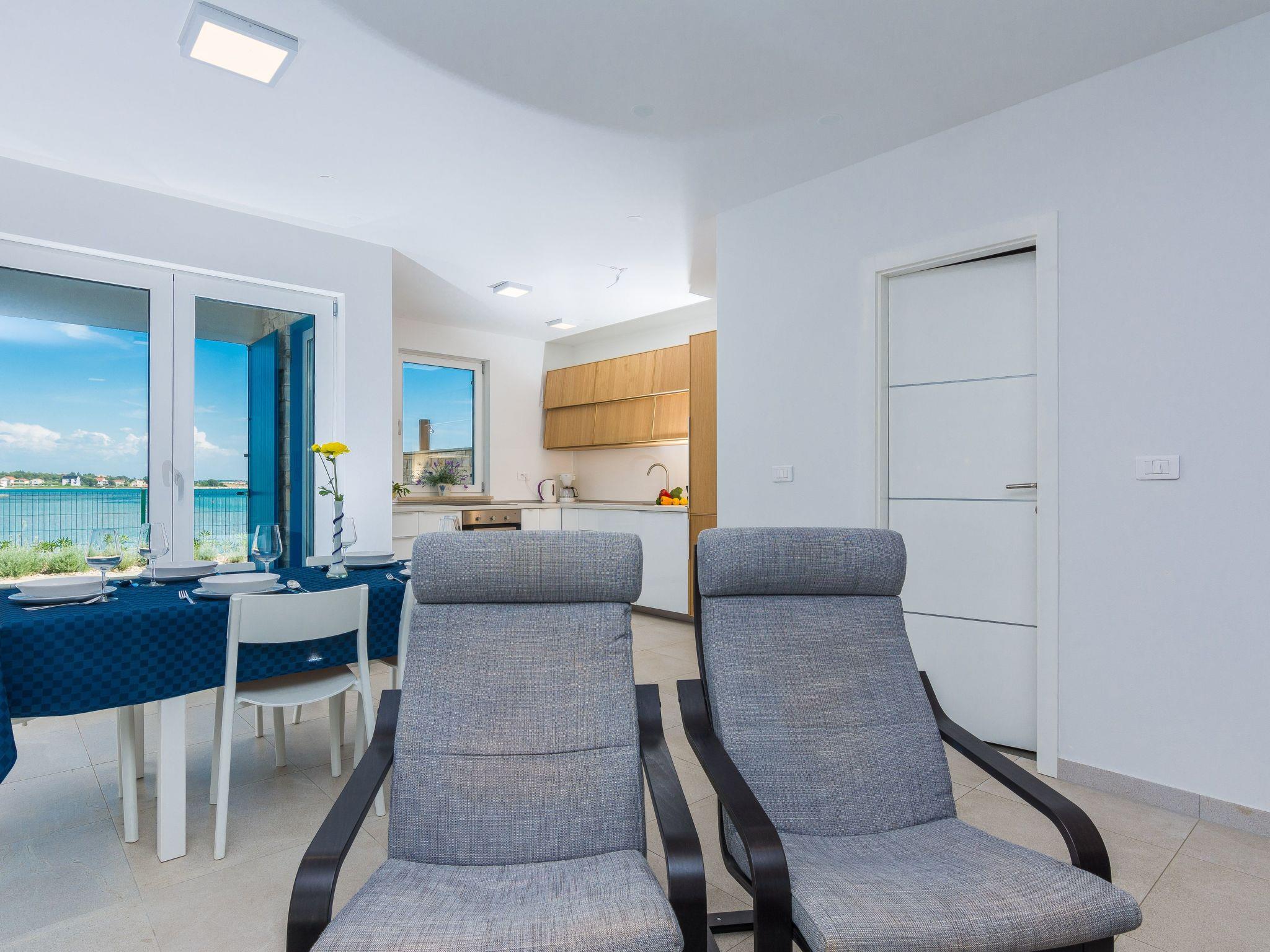 This top modern holiday villa enjoys a lovely location in the seaside town of Privlaka: it sits just a few metres from one of the best sandy beaches on the coast and overlooks the sea and features panoramic views of the islands.