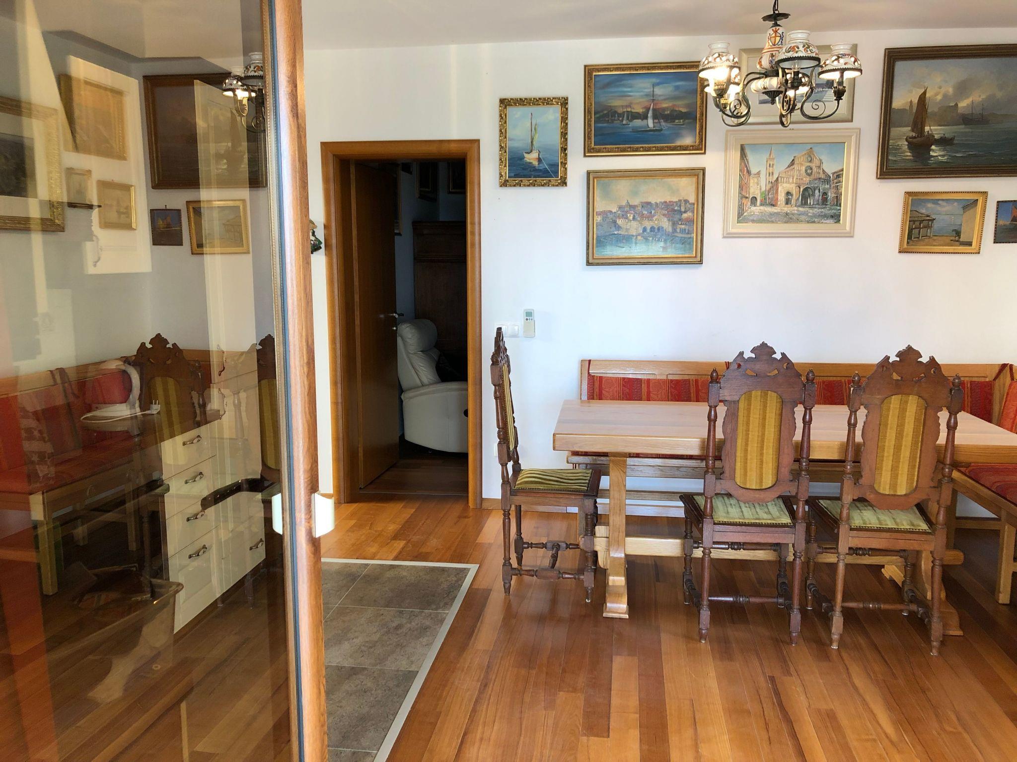 The villa is equipped with very stylish and comfortable furniture. Up to 9 extra beds are possible. One bedroom with a double bed without a footboard is located on the ground floor. From this room, you can walk past the kitchen directly out onto the terrace and marvel at the sea in the fresh breeze. Two bedrooms are on the first floor and here you can admire the Adriatic panorama from two balconies. There are three bathrooms, one on the ground floor and two on the first floor, all with a shower cubicle, a washbasin and a toilet. On the ground floor you will find a living room and a spacious eat-in kitchen, on the first floor a reading and relaxation room. We have installed two televisions (SAT-TV) in the living room and in the bedroom on the first floor.