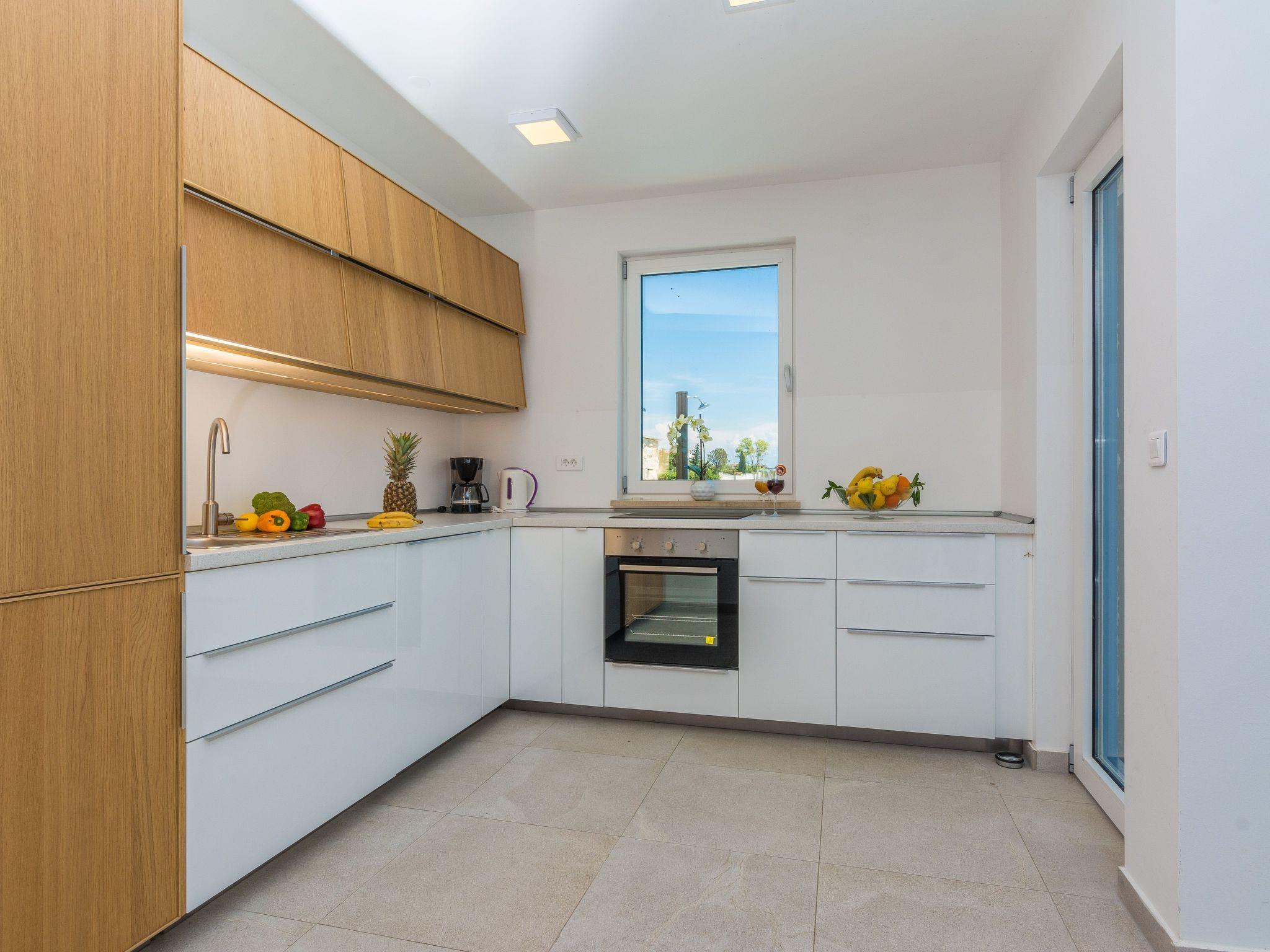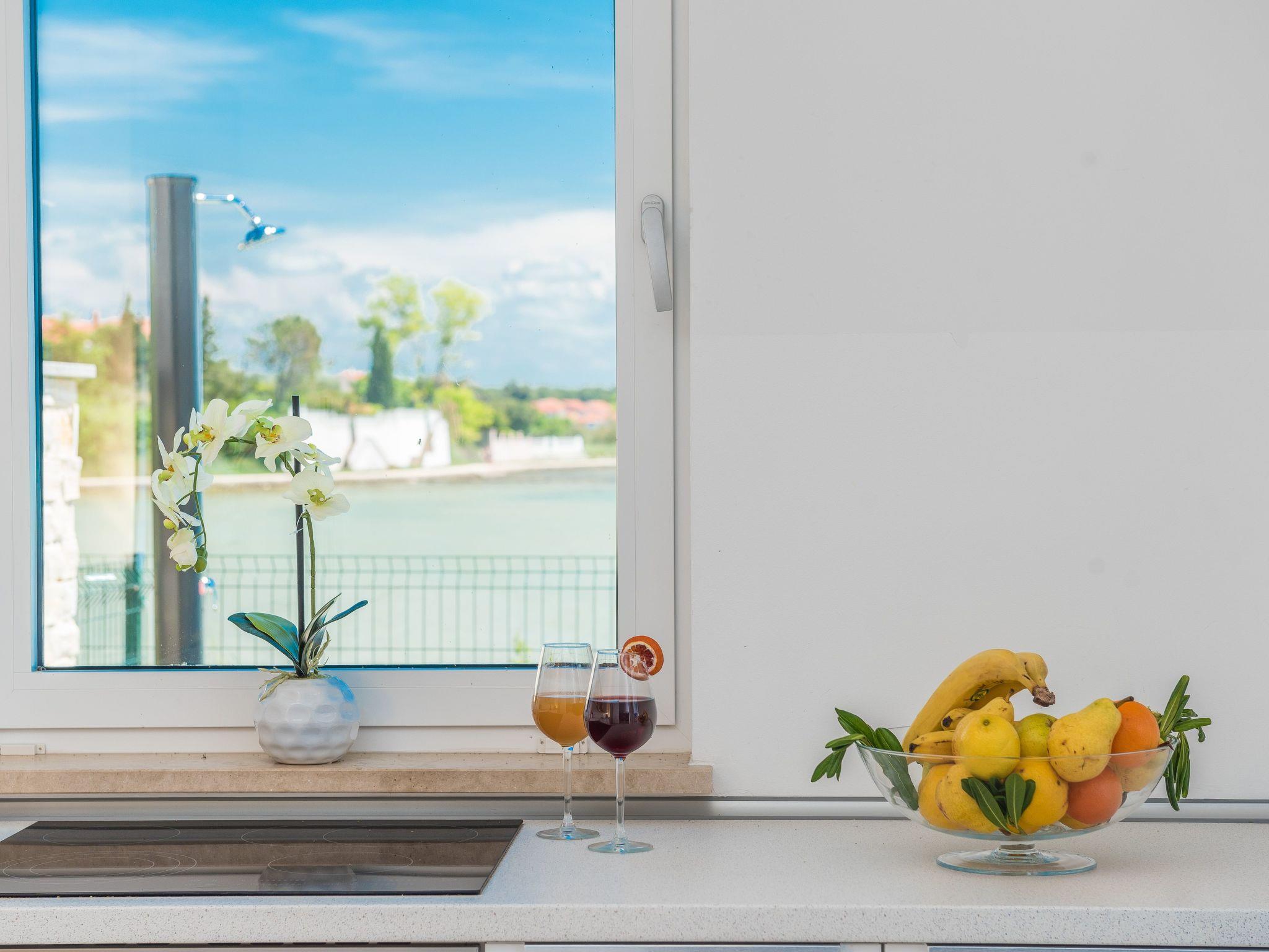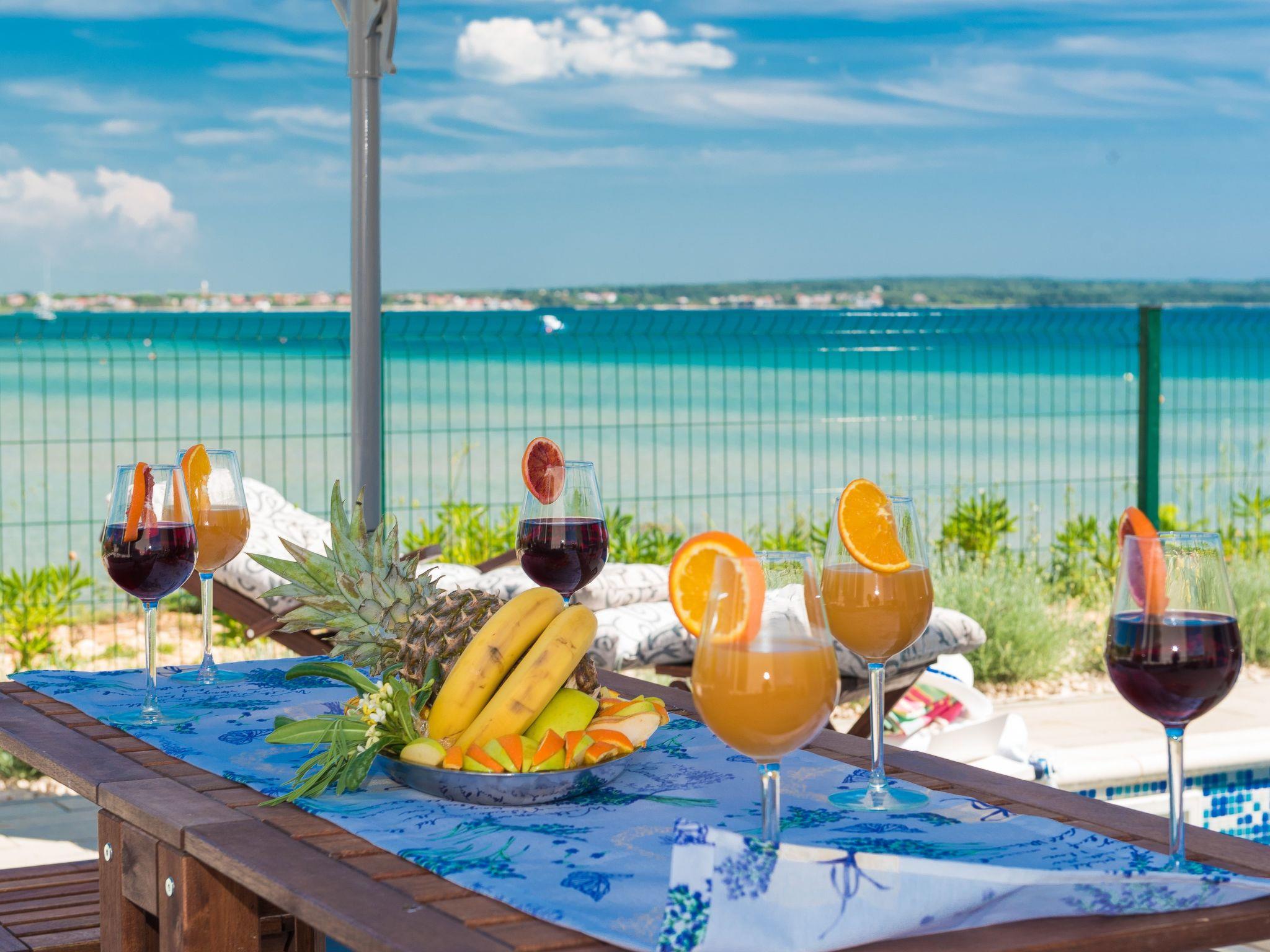 This top modern holiday villa enjoys a lovely location in the seaside town of Privlaka: it sits just a few meters from one of the best sandy beaches on the coast and overlooks the sea and features panoramic views of the islands.