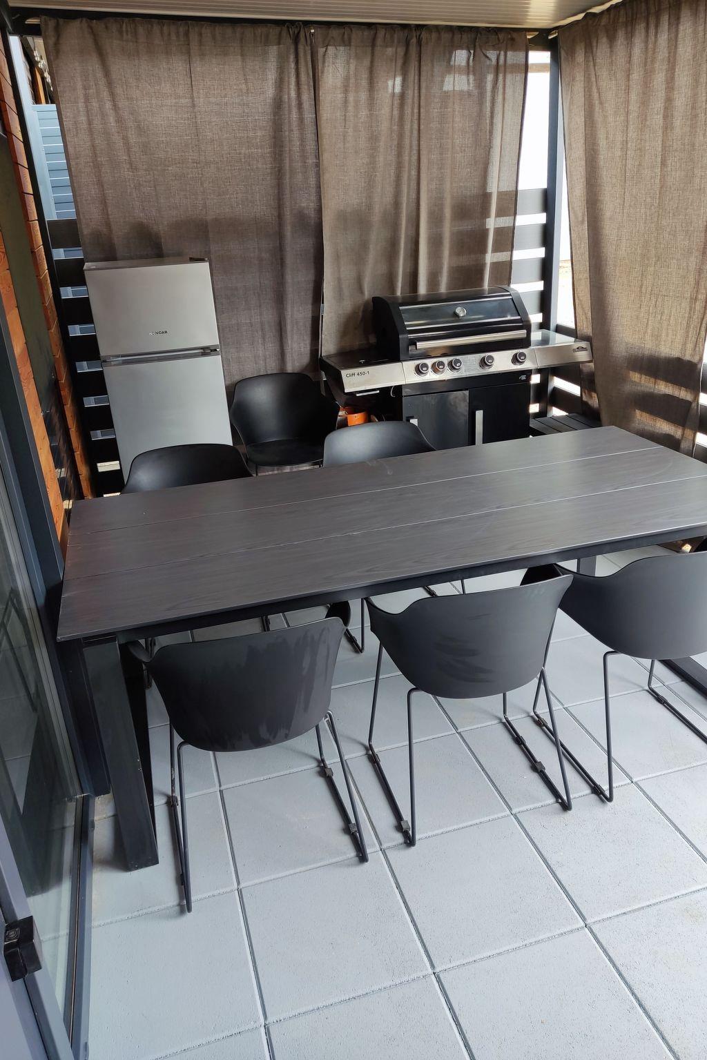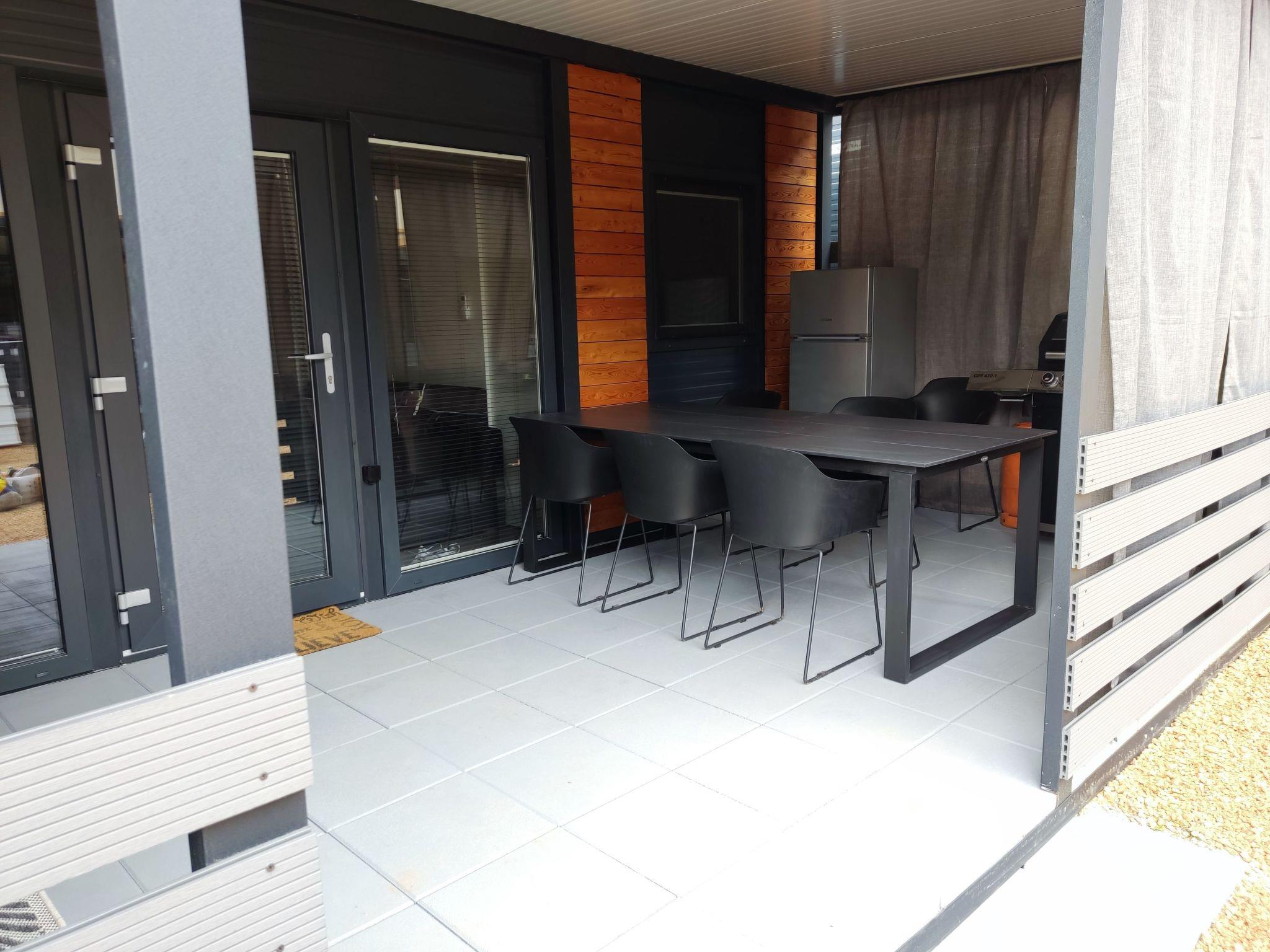 Step outside onto the expansive 24m2 terrace, an inviting outdoor area where leisure meets nature. The mobile home is a detached unit, assuring privacy and exclusive use of the garden and roof terrace, perfect for sunbathing or enjoying alfresco meals. With no pets allowed, the outdoor areas remain pristine and tranquil—ideal for those seeking peace and quiet. A barbecue is available for those who enjoy grilled meals under the starlit sky, enriching your culinary experience.
