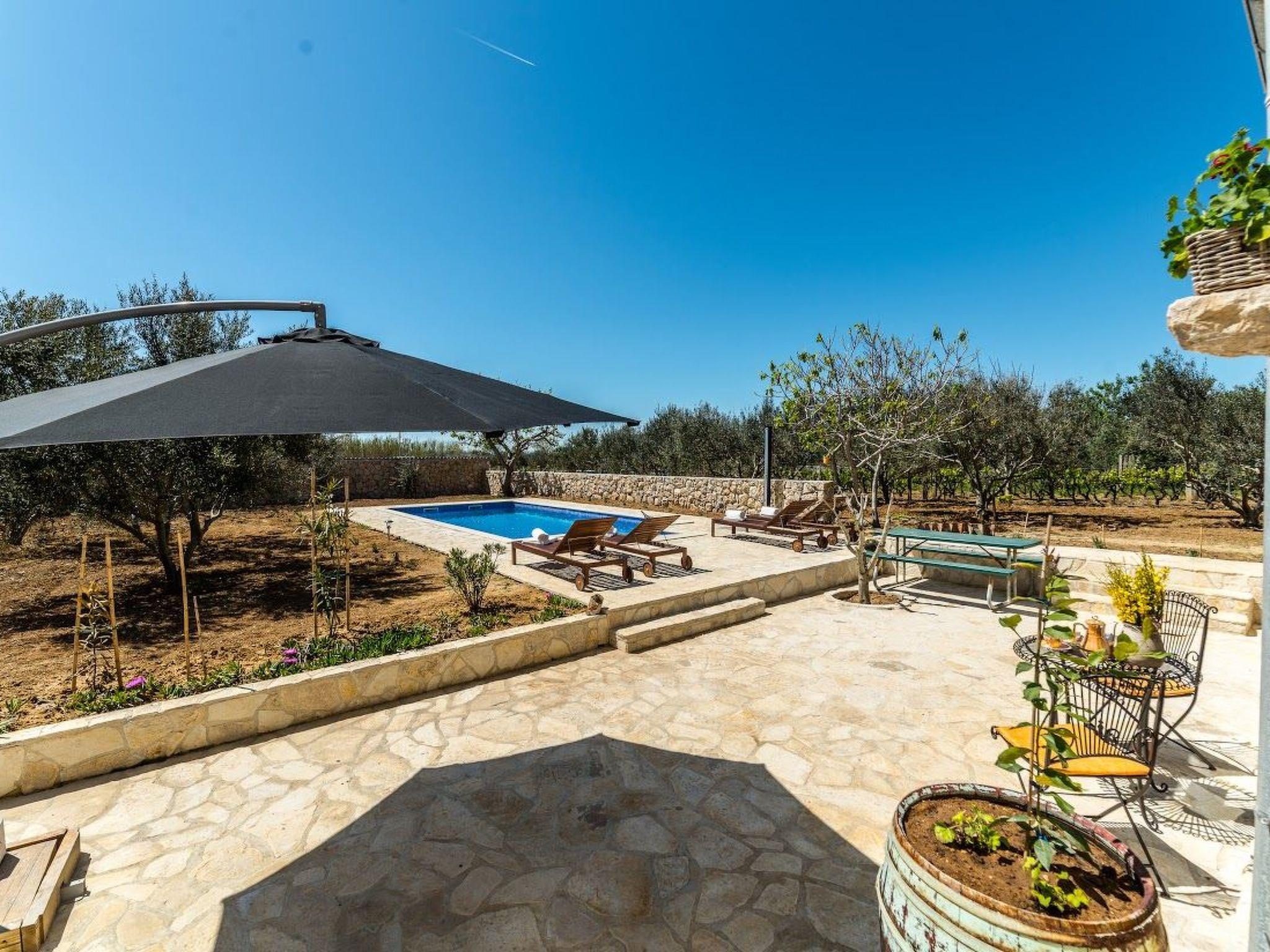 The house is located in Privlaka, on a plot of 1600 m2, surrounded by vineyards, olive and fig trees, only 700 meters from the beautiful sandy beach.
