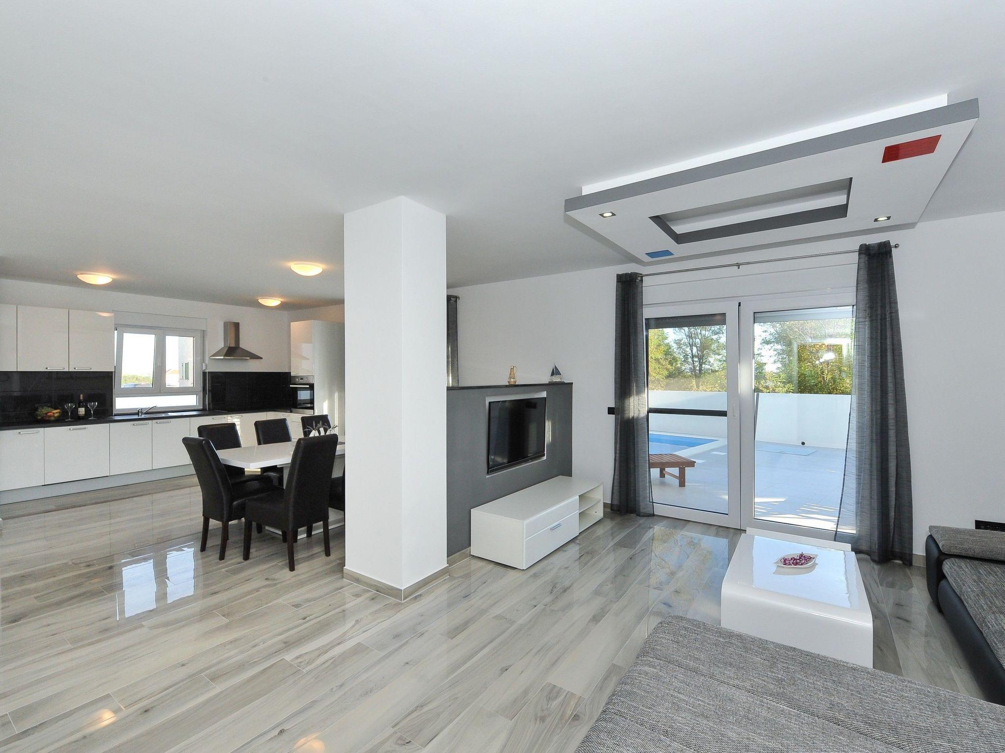 This modern villa with a swimming pool is located in a quite part of the Privlaka municipality. The villa of 150 m² is spread over two floors and can accommodate a total of 8 people.