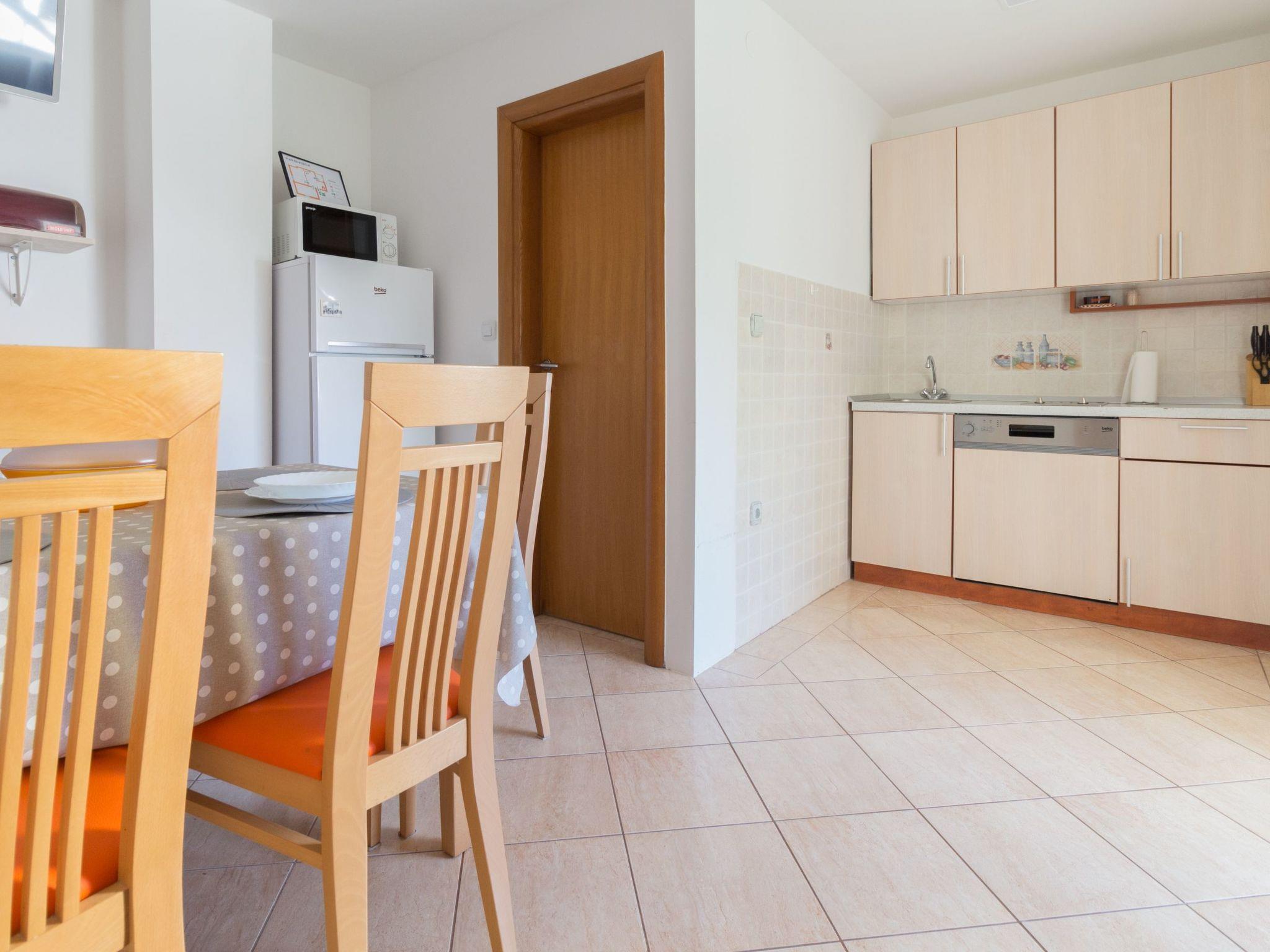 The apartment is situated in a stunning white house, surrounded by tall cypress trees that stand in front of the entrance. It's an ideal choice for those who want to spend a relaxing vacation in a quiet location, which is not too far from bigger tourist towns. Sabunike is a small and peaceful place that's well-known for its numerous shallow bays and sandy beaches, offering a beautiful entrance to the crystal-clear sea. Zadar and Nin are located nearby, where guests can find everything they need in the center of the picturesque town, including cafes, restaurants, shops, fruit shops, bakery, and markets. Additionally, bicycle, jet-ski, and rubber boat rentals are available, and guests can also take part in one of the organized trips to Kornati or the impressive Plitvice Lakes.