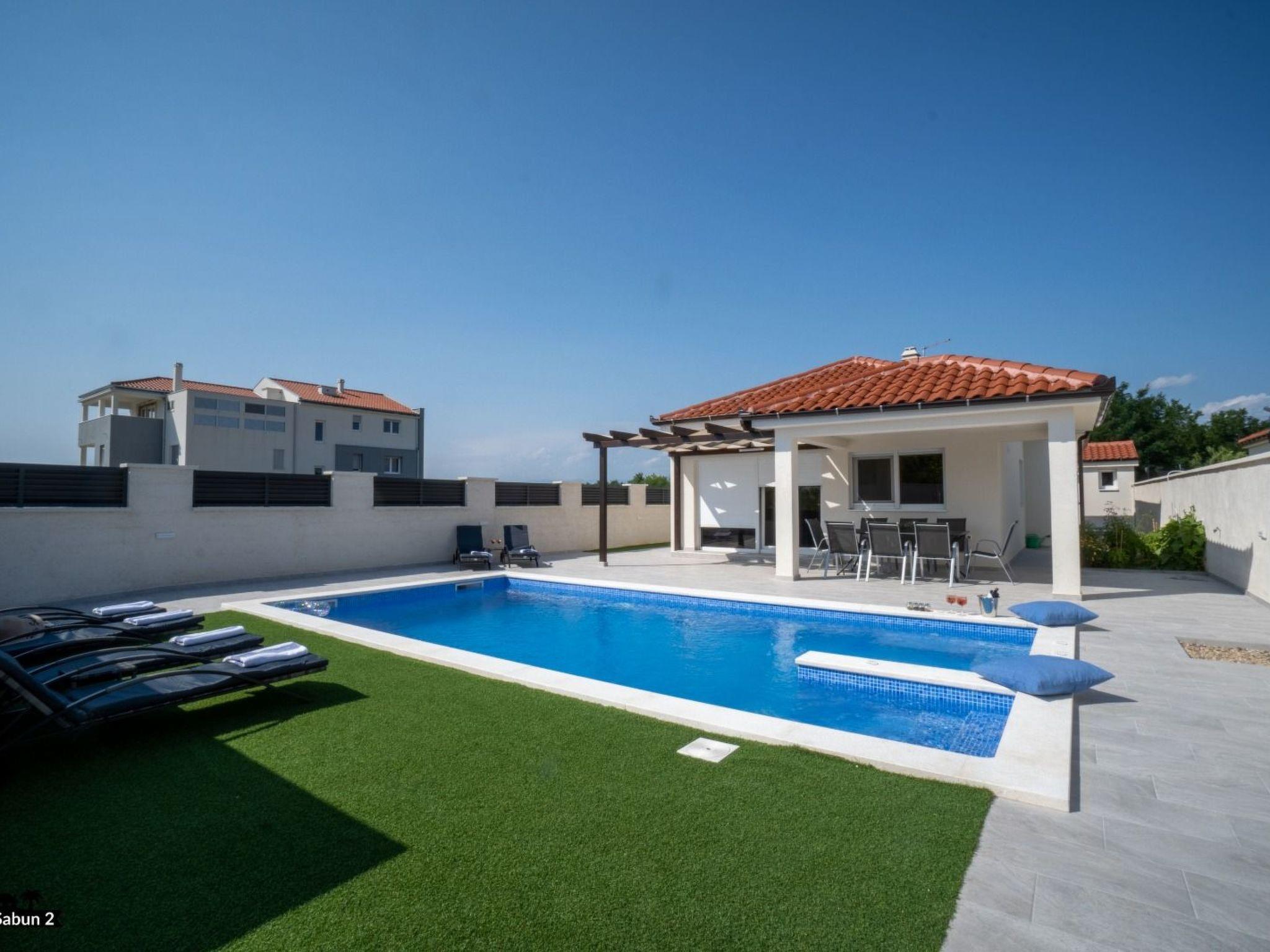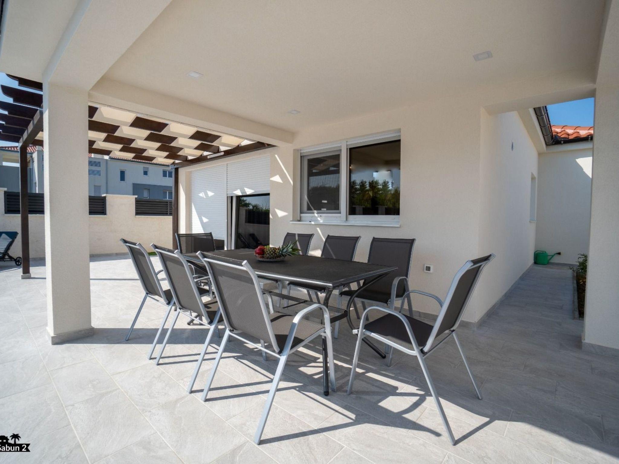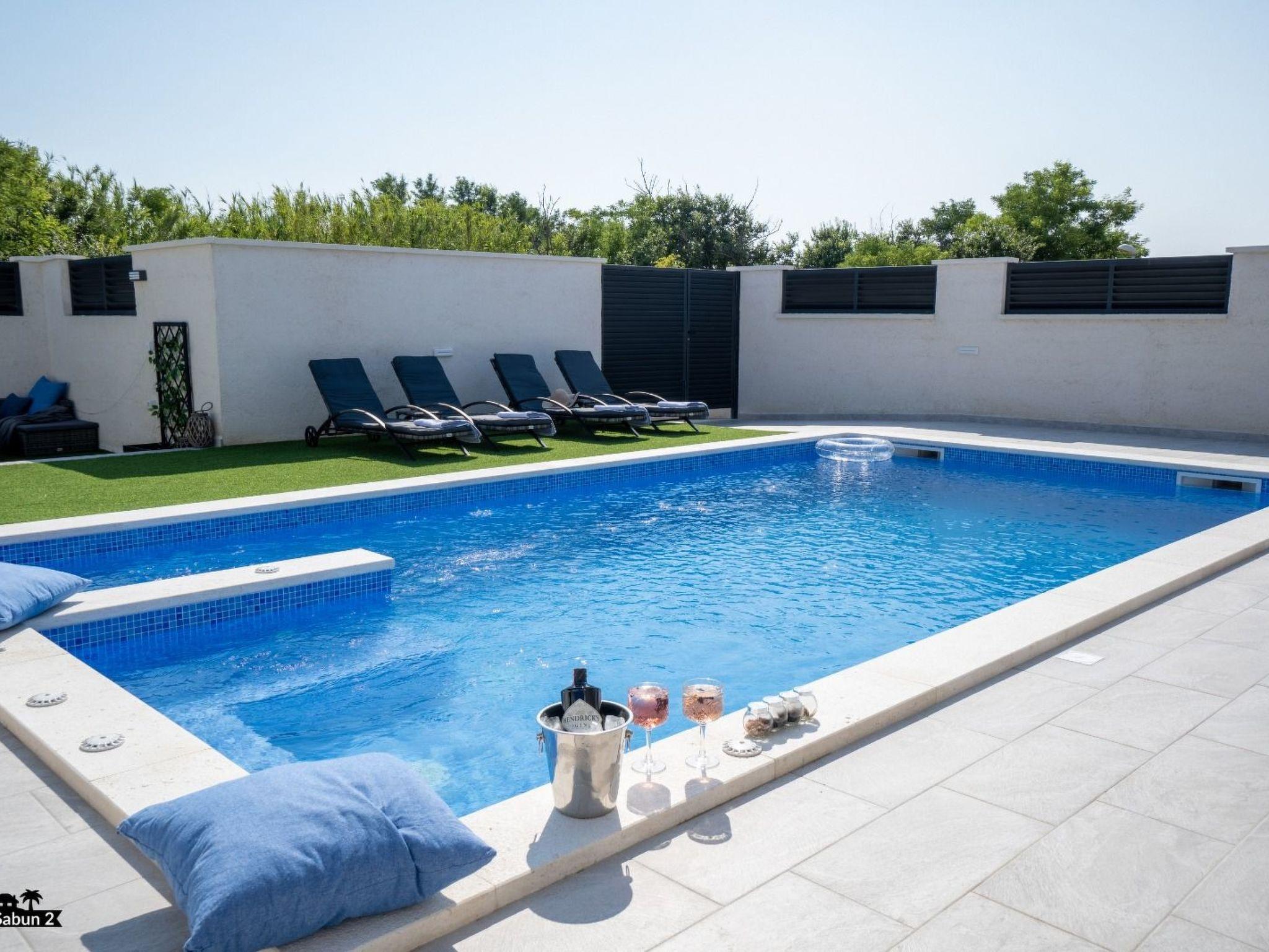 Villa Sabun is a modernly equipped house that provides an extraordinary experience for families and friends. With an area of ??120 m2, three bedrooms, and a sofa bed for two people, it can host up to eight people. The villa consists of a living room, two bathrooms, and a fully equipped kitchen. Guests will enjoy their morning coffee undisturbed on the covered terrace, and if they want to cool off, it is enough to take only five steps to jump into the private outdoor pool with salt water. The pool is illuminated at night and provides pleasant lighting. For a perfect end to the day, guests can hang out around the grill, which they can use for "ribe na gradele", a famous Dalmatian dish a specialty while the children hang out on the trampoline in the garden. The villa is air-conditioned, has satellite TV and free Wi-Fi access, and there is a private parking lot for three cars in front of the entrance to the villa. Villa Sabun offers its guests a quiet, private vacation with attention to detail.