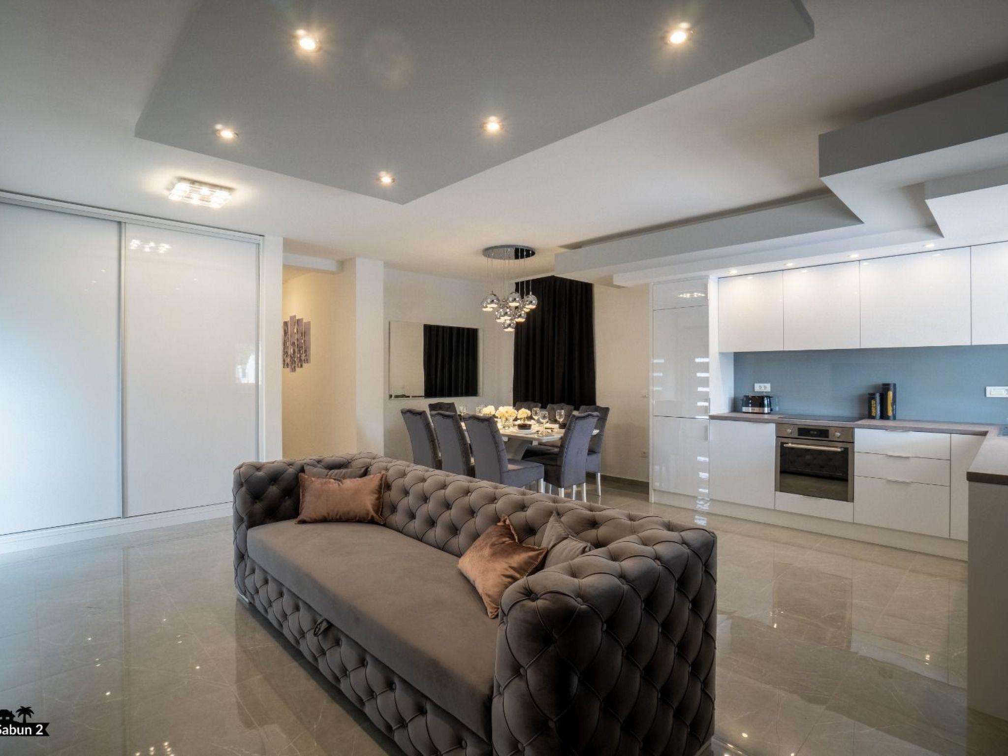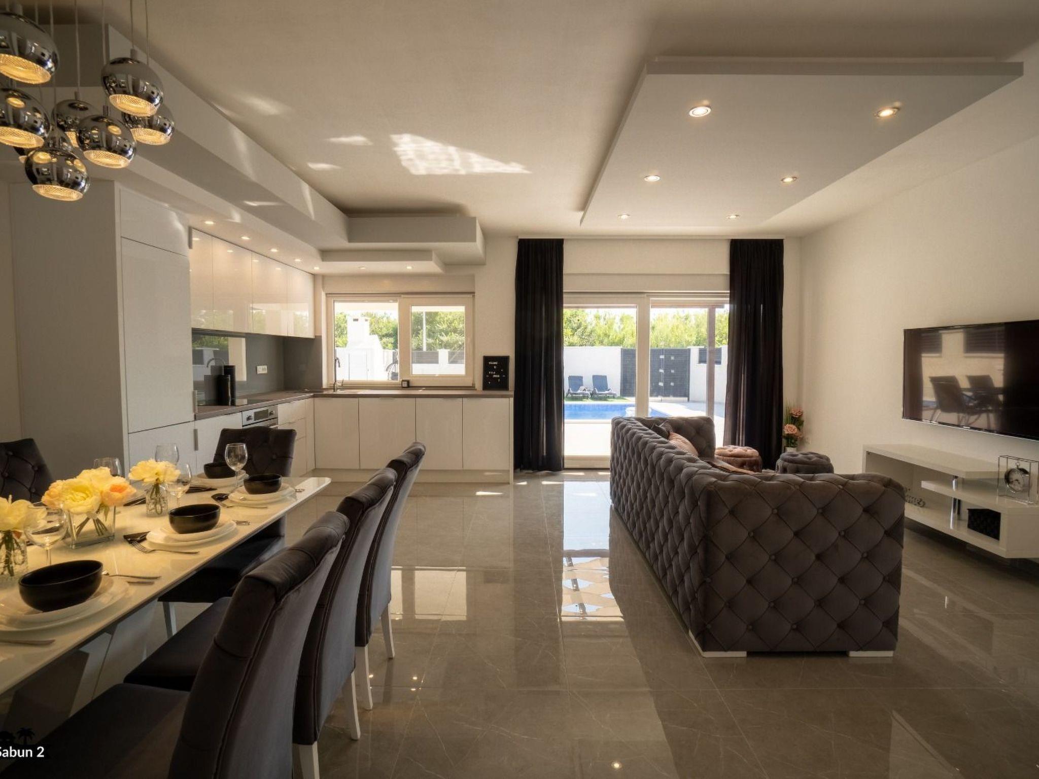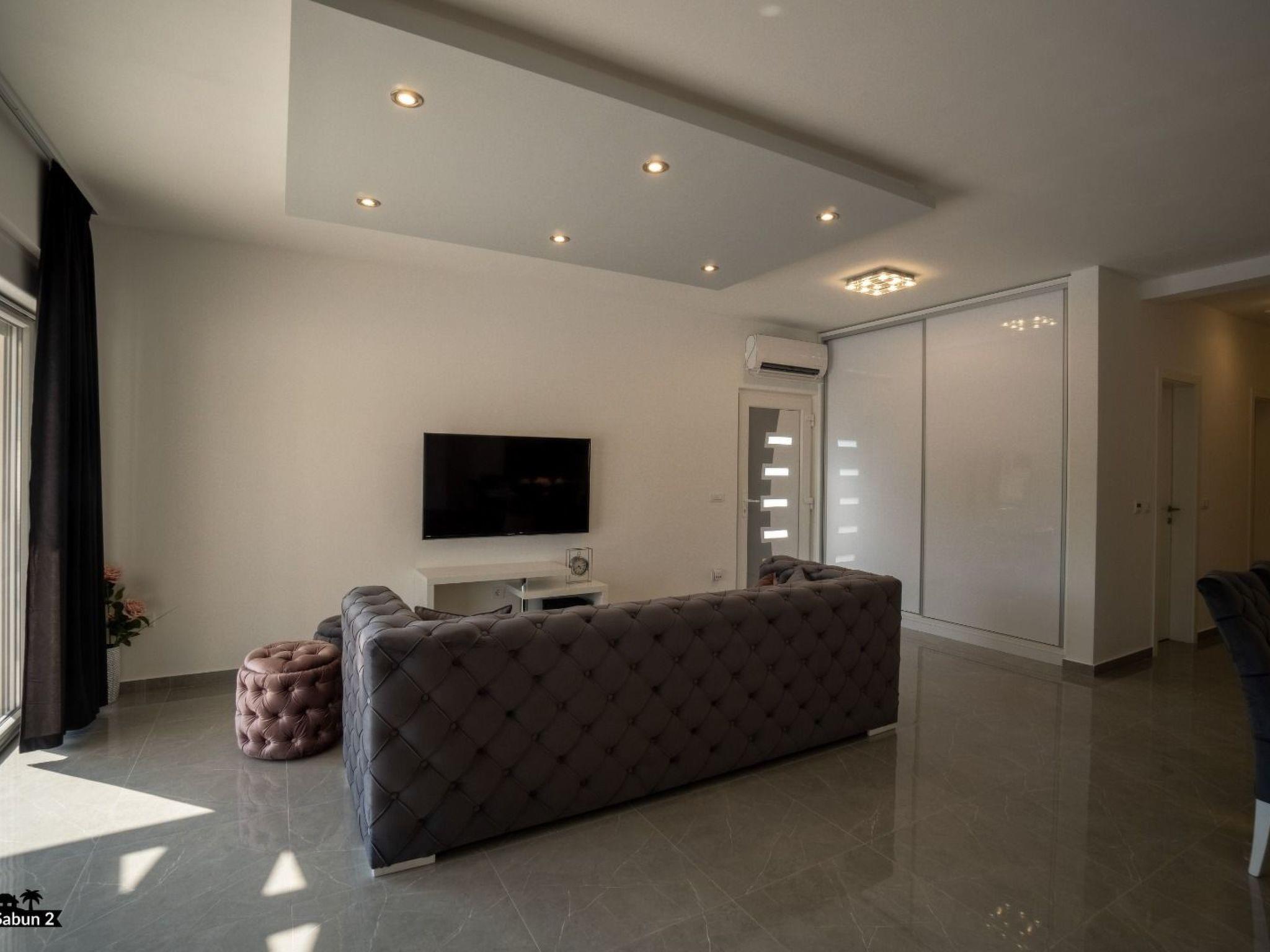 Villa Sabun is a modernly equipped house that provides an extraordinary experience for families and friends. With an area of ??120 m2, three bedrooms, and a sofa bed for two people, it can host up to eight people. The villa consists of a living room, two bathrooms, and a fully equipped kitchen. Guests will enjoy their morning coffee undisturbed on the covered terrace, and if they want to cool off, it is enough to take only five steps to jump into the private outdoor pool with salt water. The pool is illuminated at night and provides pleasant lighting. For a perfect end to the day, guests can hang out around the grill, which they can use for "ribe na gradele", a famous Dalmatian dish a specialty while the children hang out on the trampoline in the garden. The villa is air-conditioned, has satellite TV and free Wi-Fi access, and there is a private parking lot for three cars in front of the entrance to the villa. Villa Sabun offers its guests a quiet, private vacation with attention to detail.