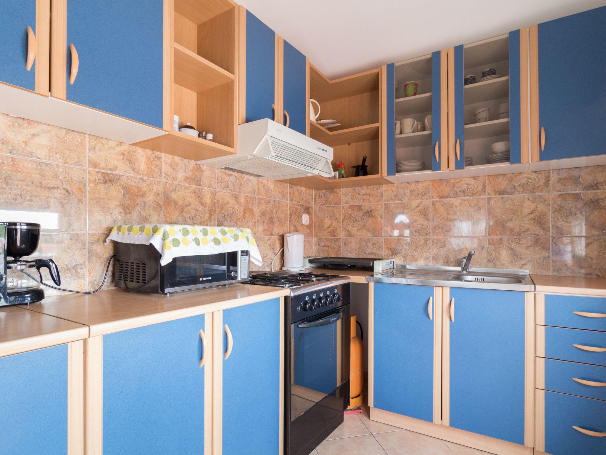 Inside, Apartment Nikol caters to all your needs with its well-appointed amenities. It accommodates up to five guests across two cozy bedrooms furnished with double beds, ensuring a restful night's sleep for everyone. The inclusion of a sofa bed in the living room provides additional sleeping arrangements. For cooling off during the warmer months, the apartment is partly air-conditioned, offering a comfortable escape from the heat. Convenience is further amplified with an on-site coffee machine and electric kettle, perfect for starting your mornings with a warm beverage.