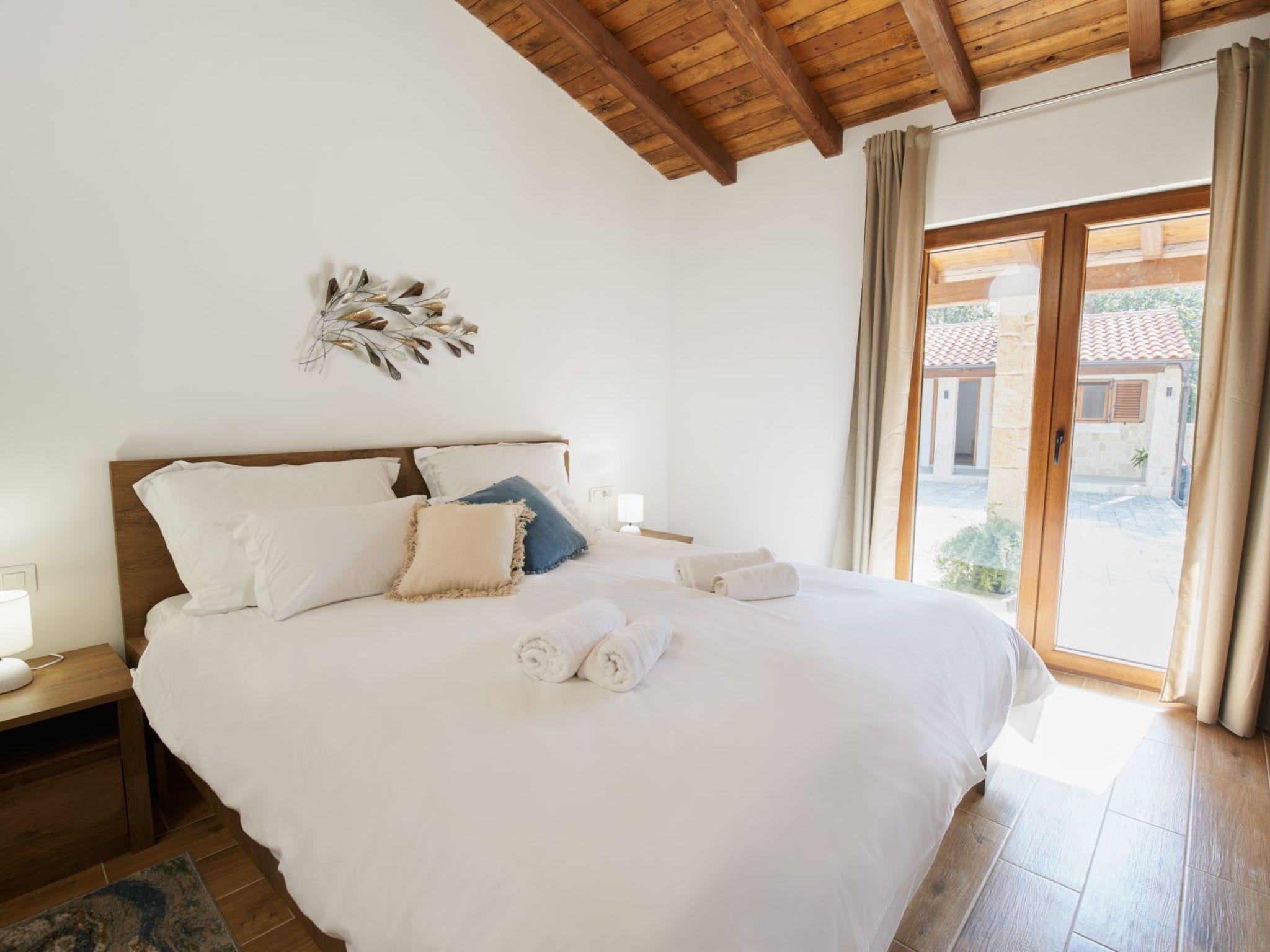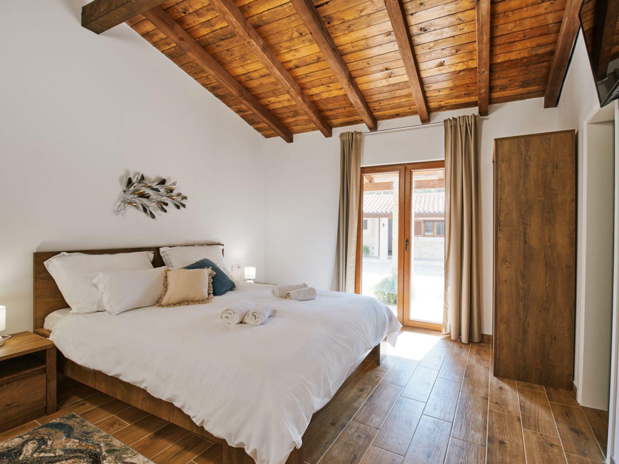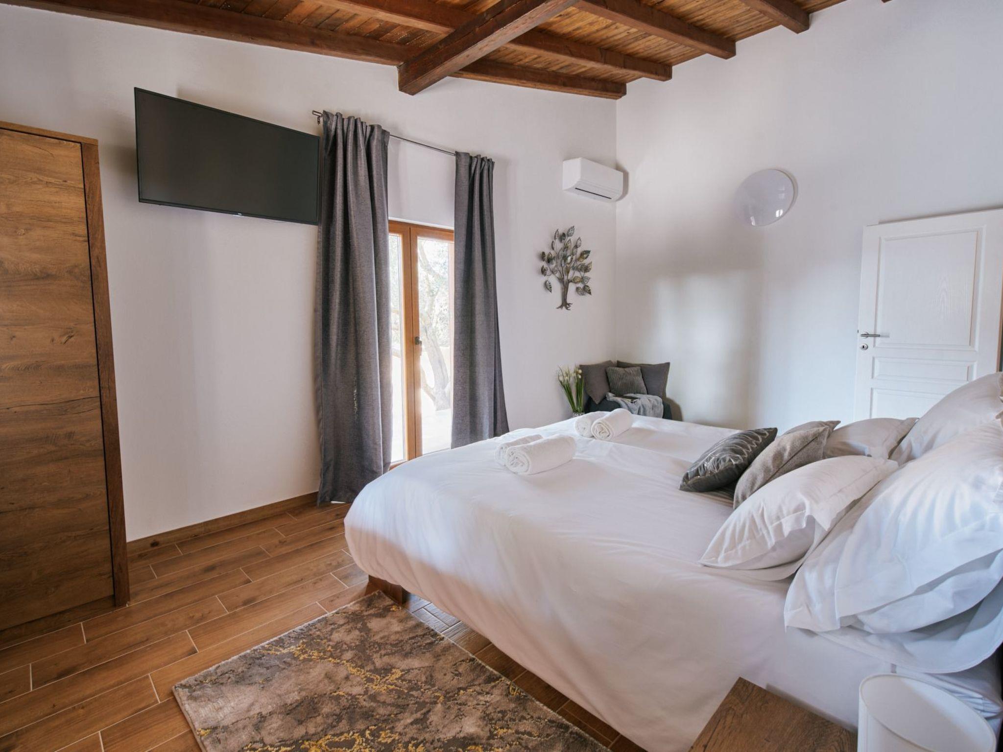 New Villa is located in the middle of a spacious stone courtyard. This rustically decorated villa with 300m2 of living space offers complete privacy and comfort in an extremely peaceful and natural environment. The house has four bedrooms and can accommodate 8+2 people. Each bedroom has satellite TV, air conditioning, Wi-Fi. The living room and the kitchen are very light due to the large windows that open onto the terrace with outdoor furniture. The terrace offers a view of the fully fenced garden of 1700 m2, which contains a heated outdoor pool with salt water, a jacuzzi, an outdoor bar, a gazebo with a seating area and a grill. The entire unit is located on the ground floor.